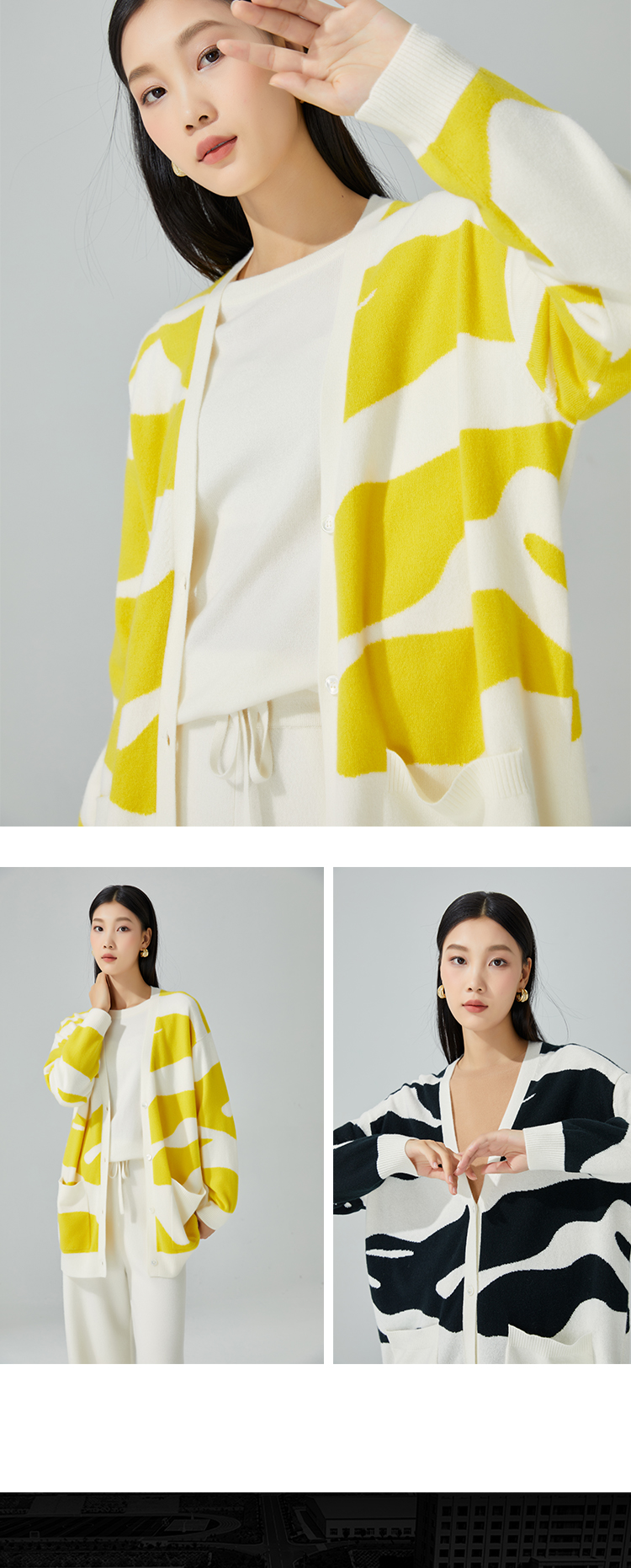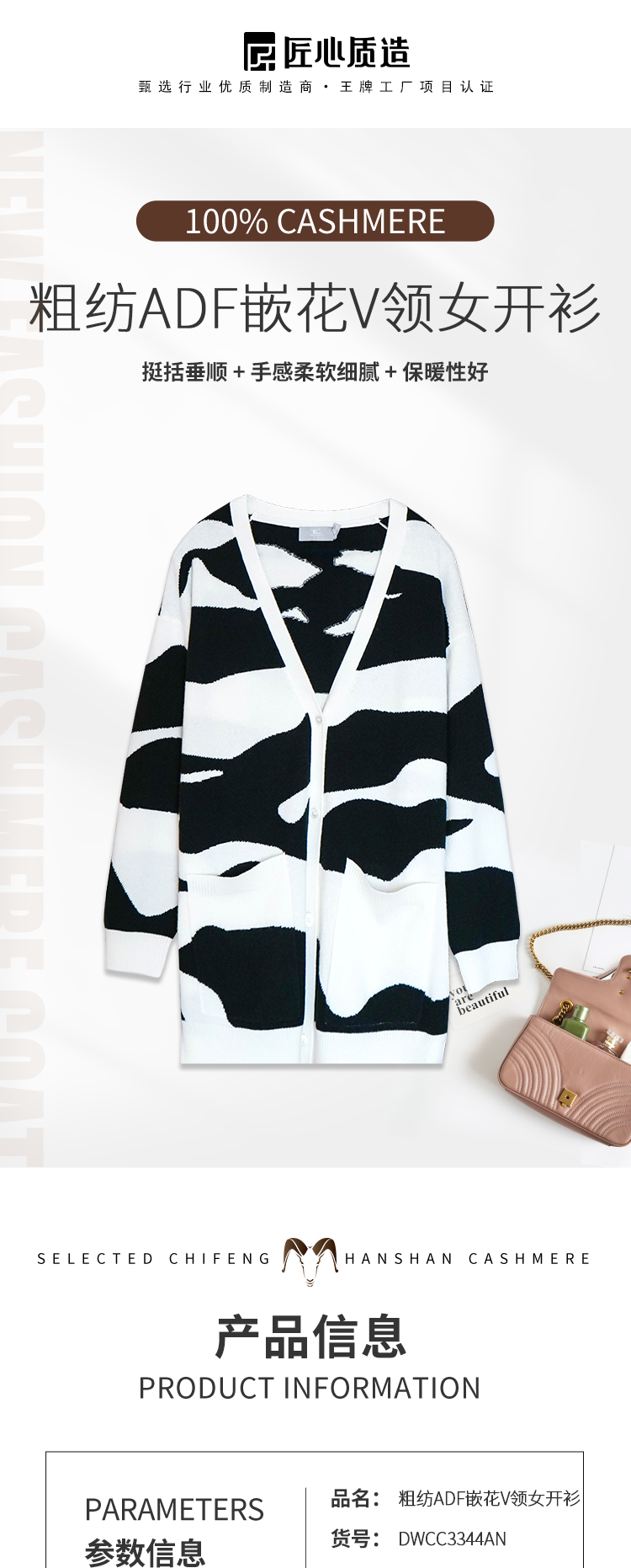 东黎 • 山羊绒女士秋冬ADF嵌花V领撞色开衫 3344