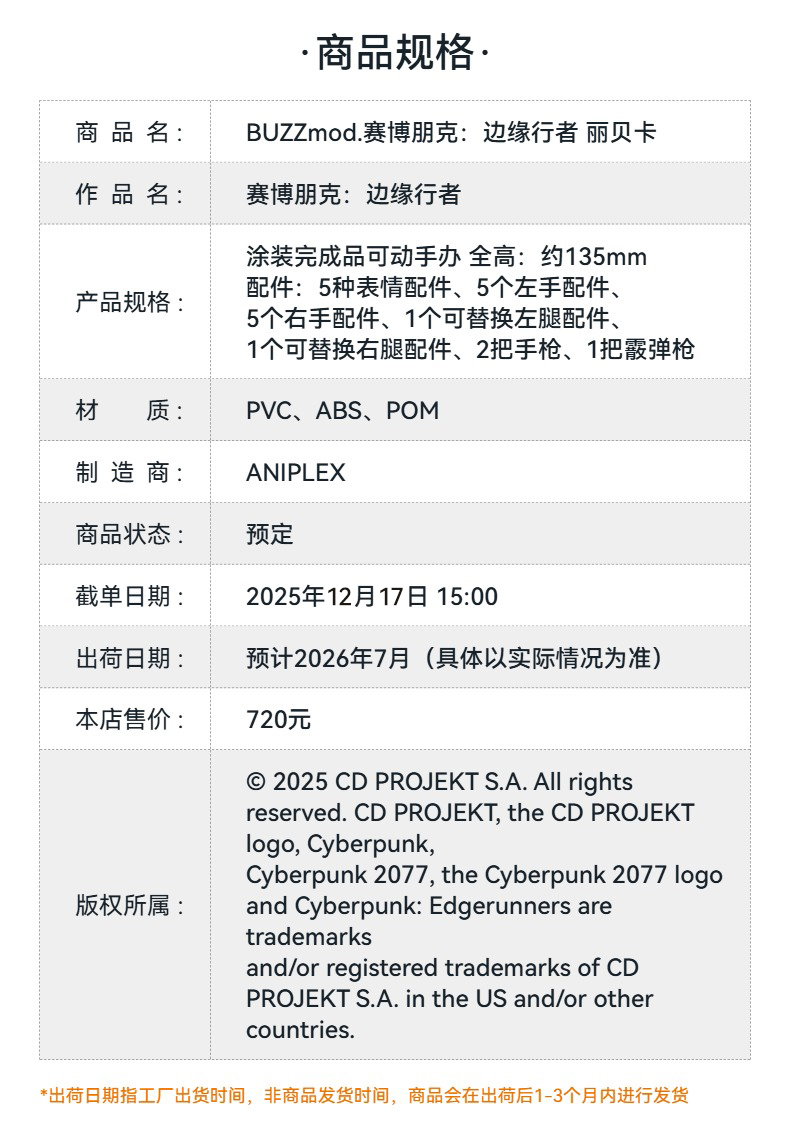 【GSC预售定金】BUZZmod.赛博朋克:边缘行者 丽贝卡 手办模玩