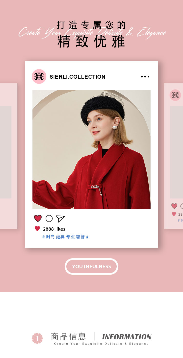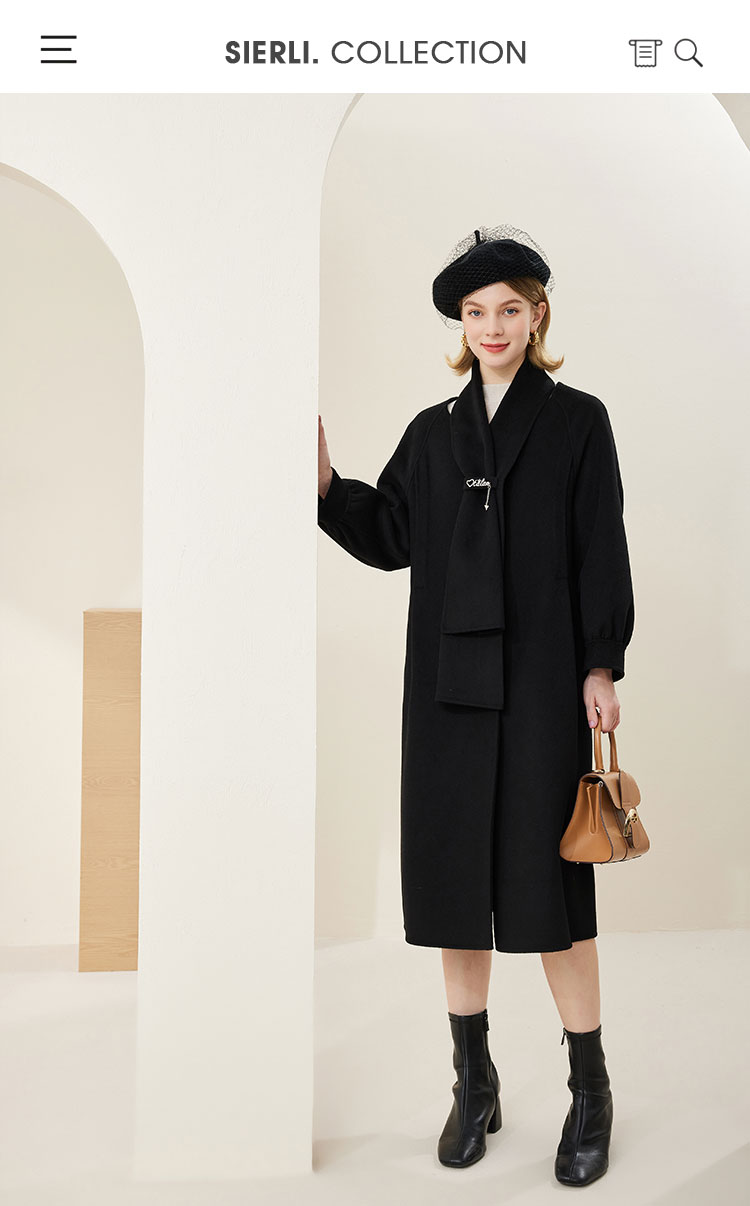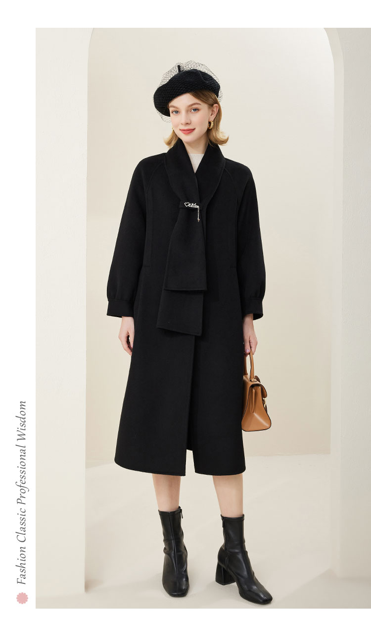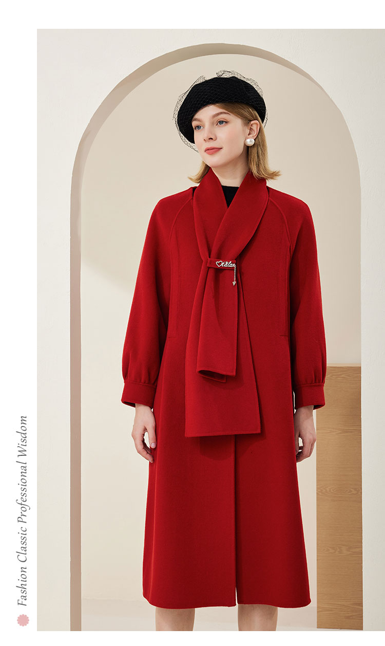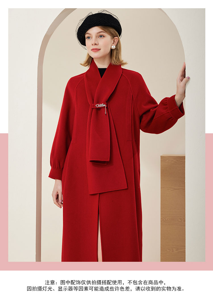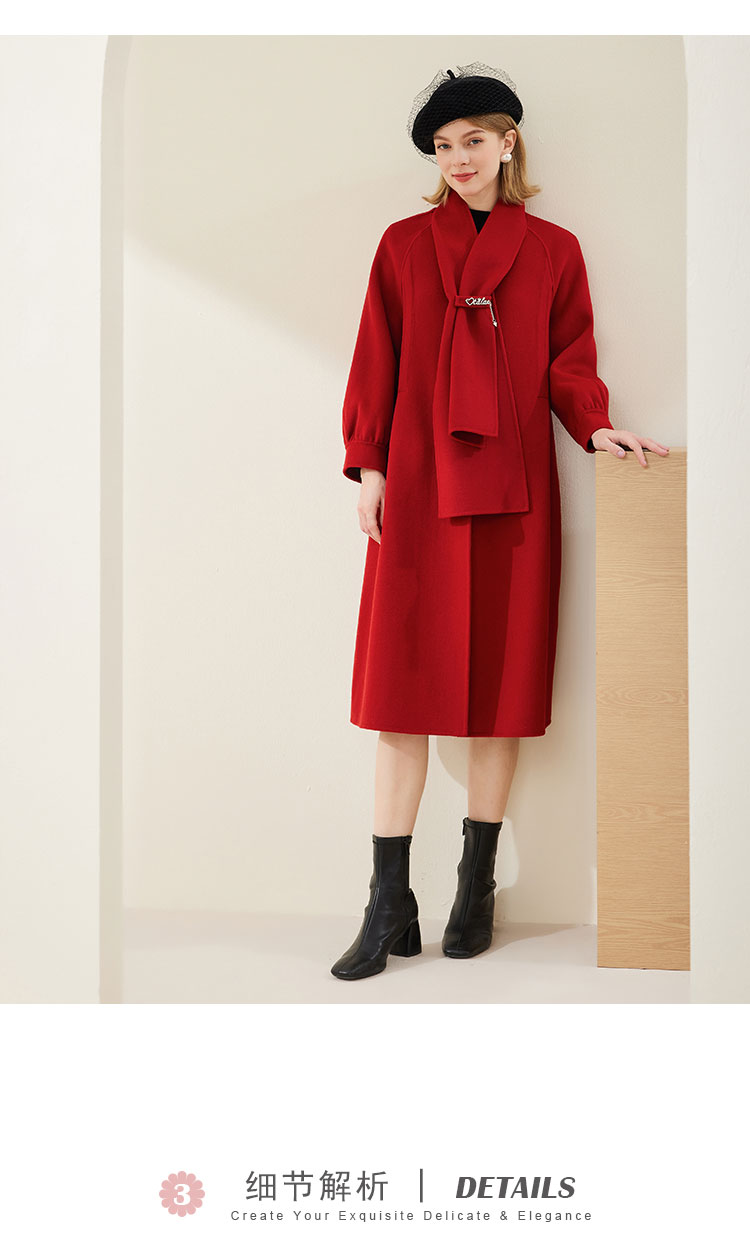 MH9H1斯尔丽瑟俪2022年冬上新商场同款时尚复古围巾领宽松式收口大衣