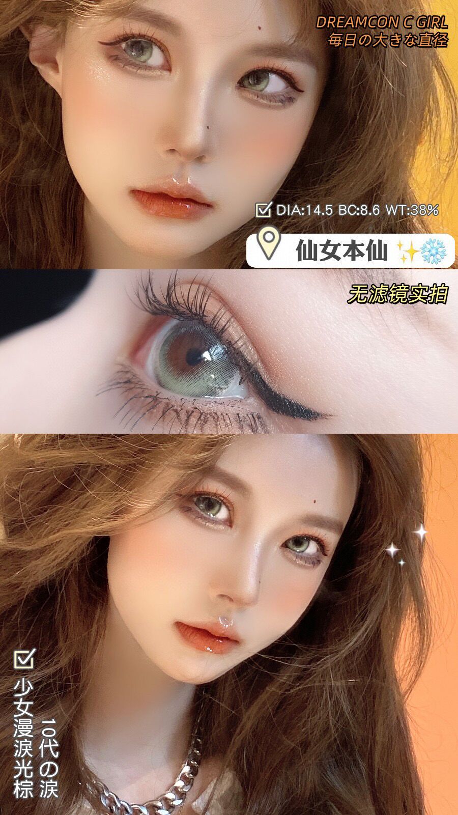 Dreamcon C Girl少女漫泪光棕14.5mm 韩产进口硅水凝胶 年抛(DreamconCGirl)