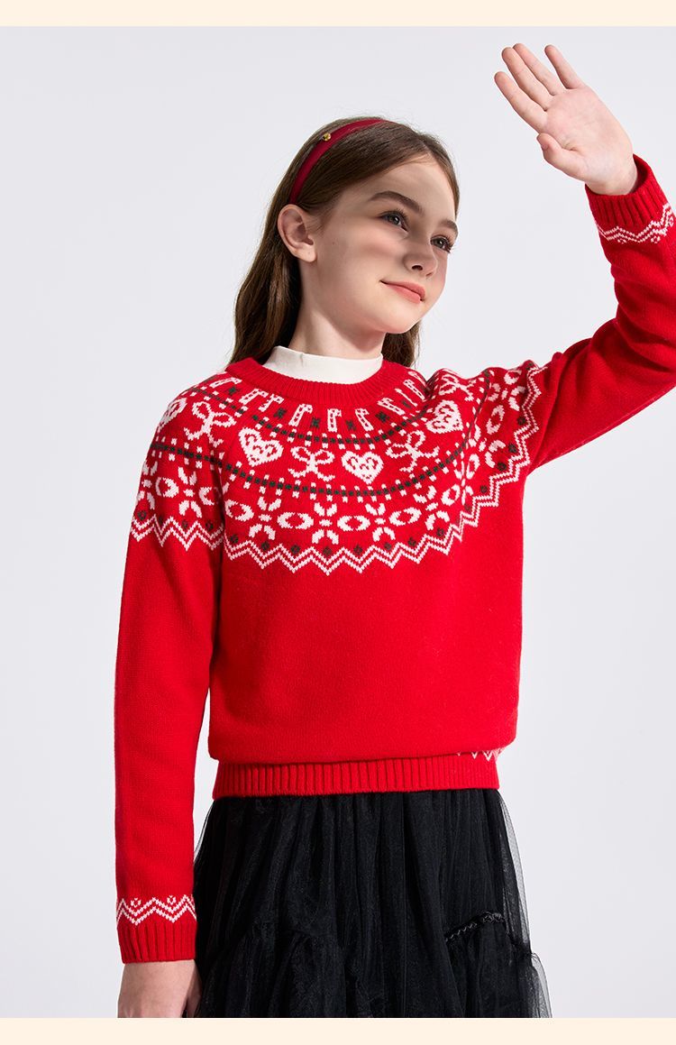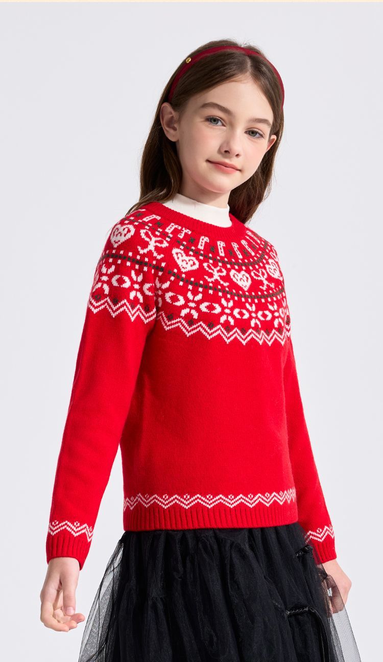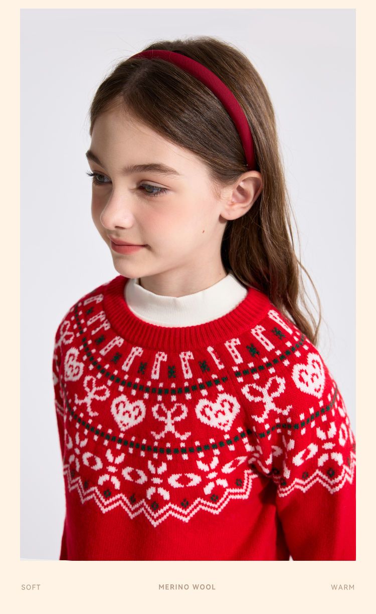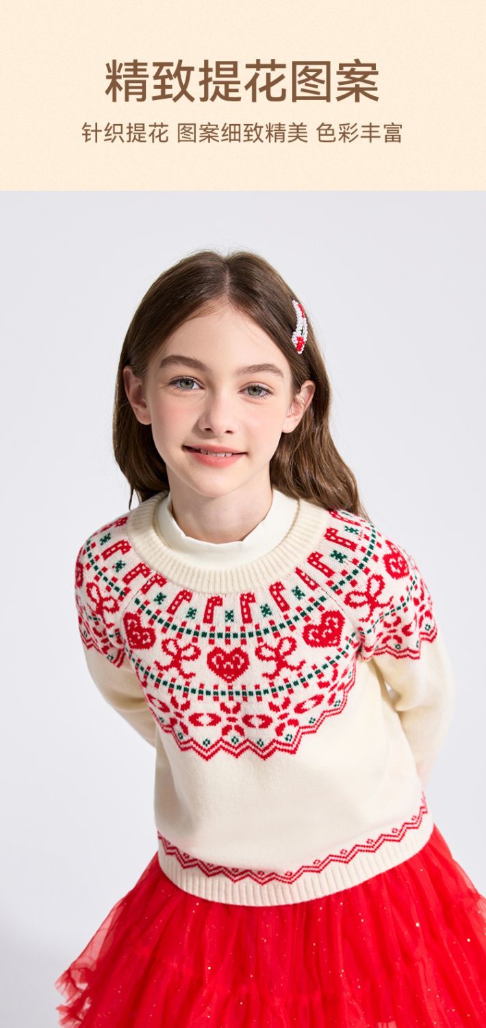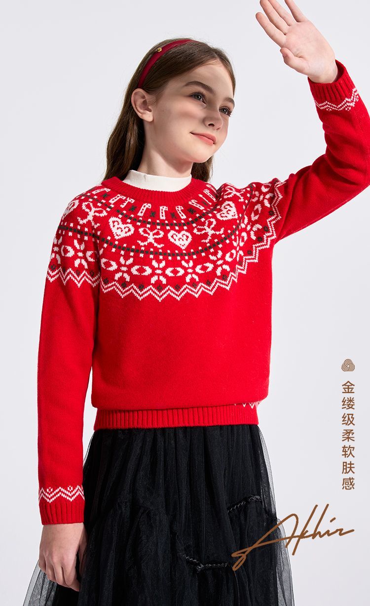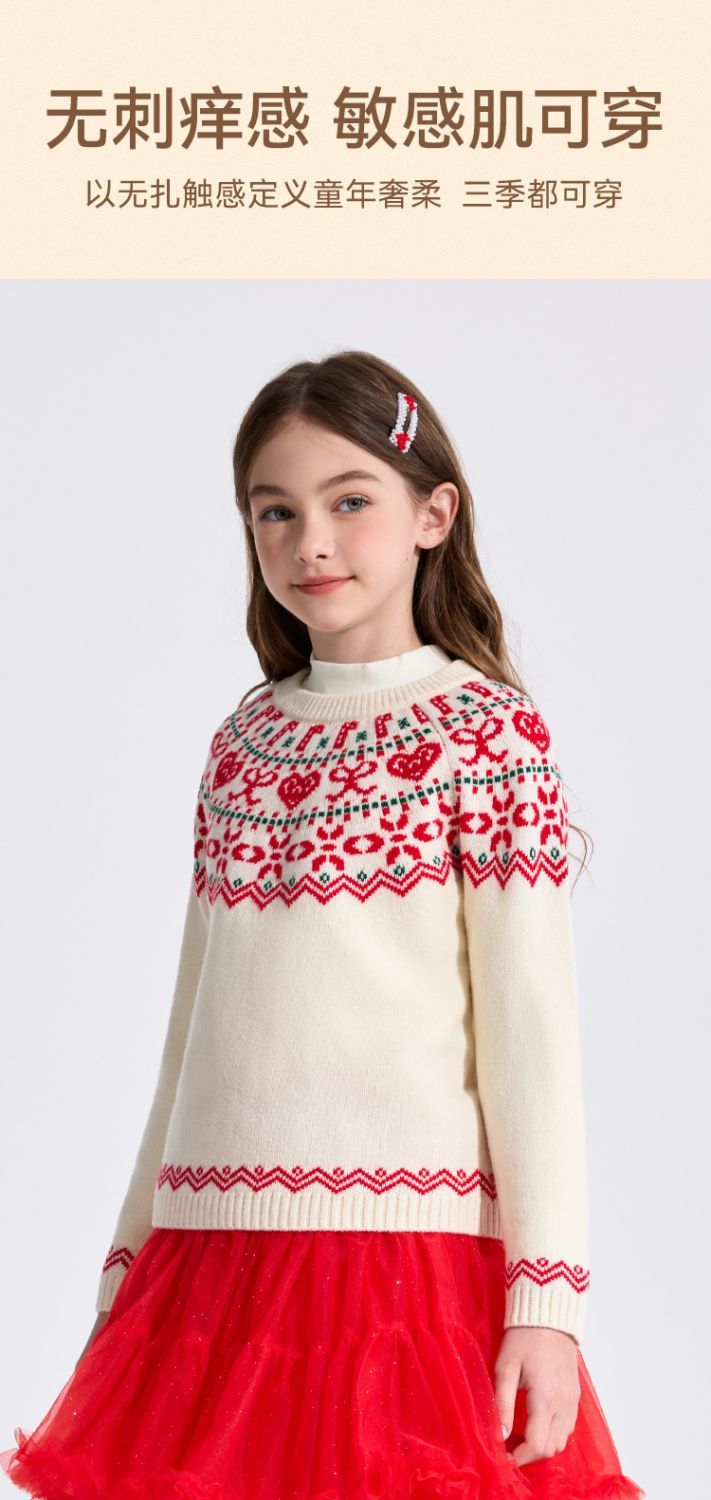 【英氏】【100%绵羊毛】【110-160】女童冬款新年针织衫毛衣