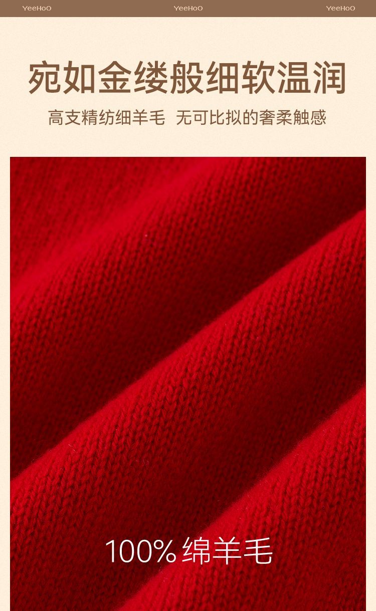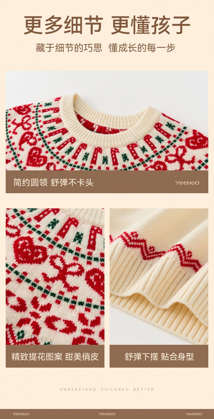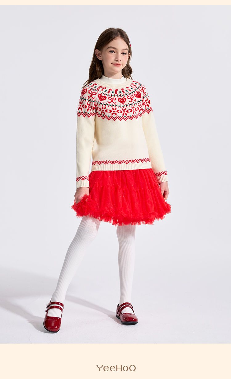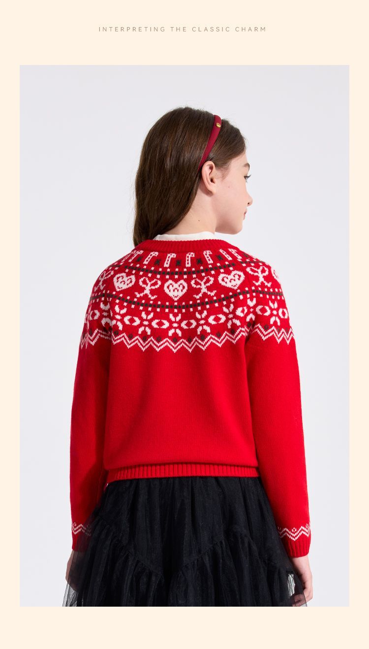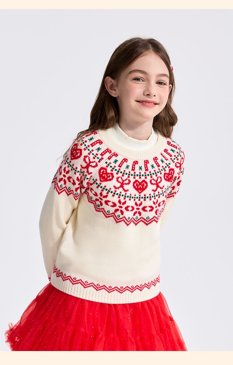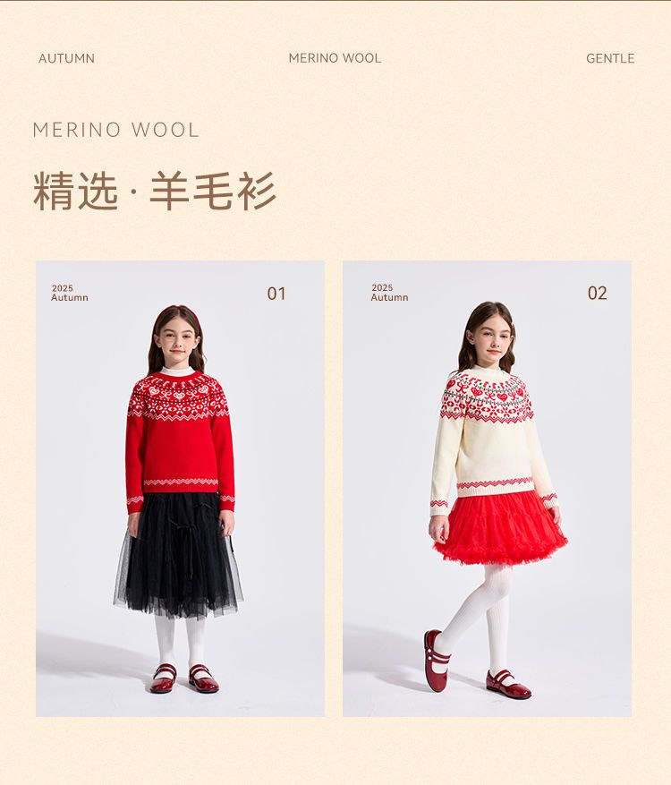 【英氏】【100%绵羊毛】【110-160】女童冬款新年针织衫毛衣
