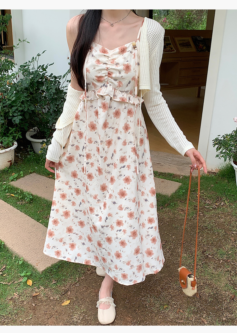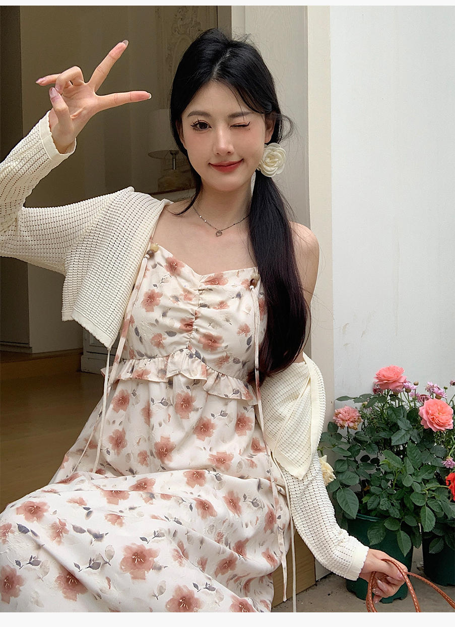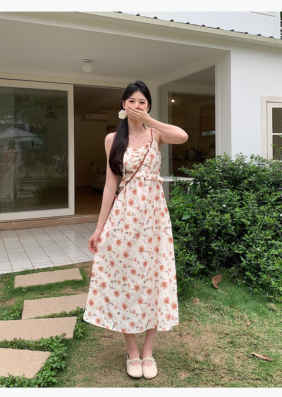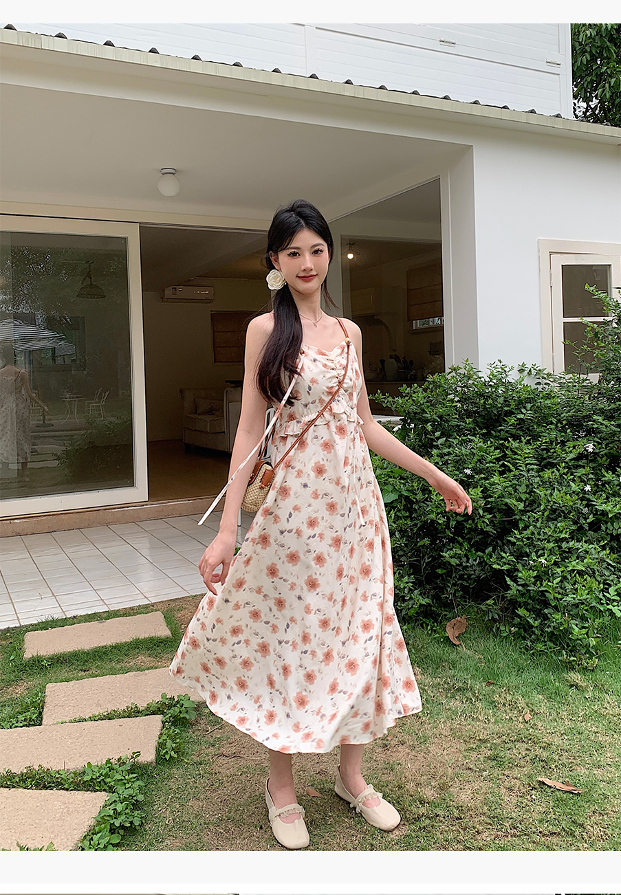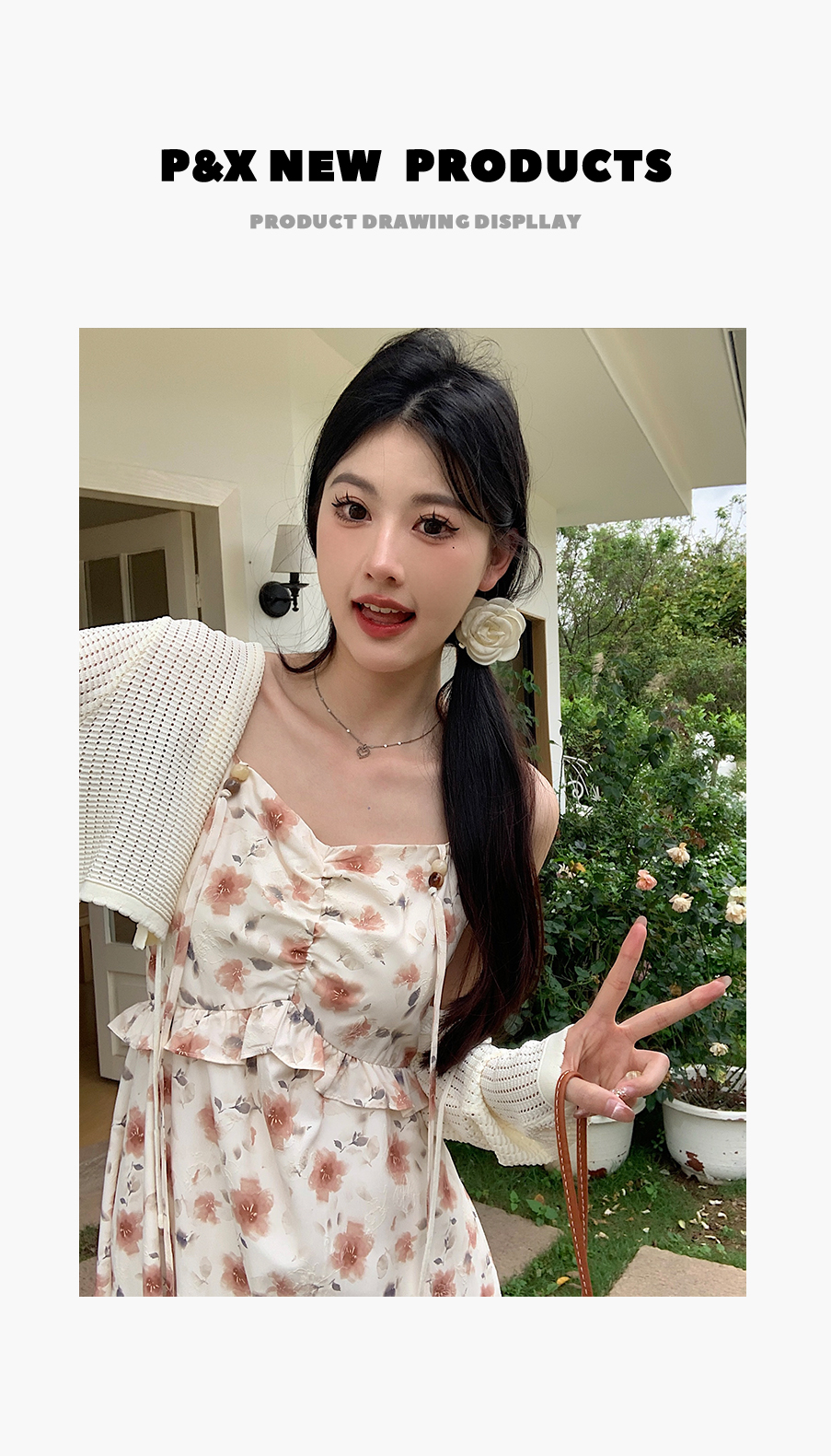 P&X设计师女装夏季方领连衣裙温柔风碎花套装长裙 824214267 花色