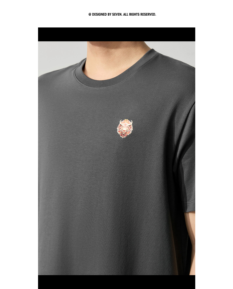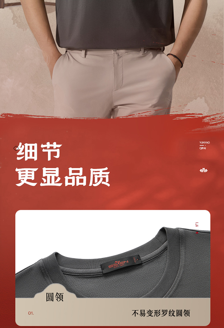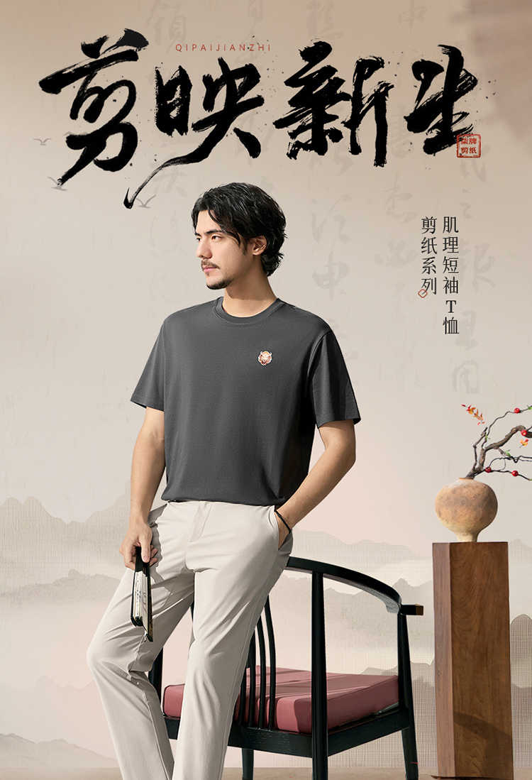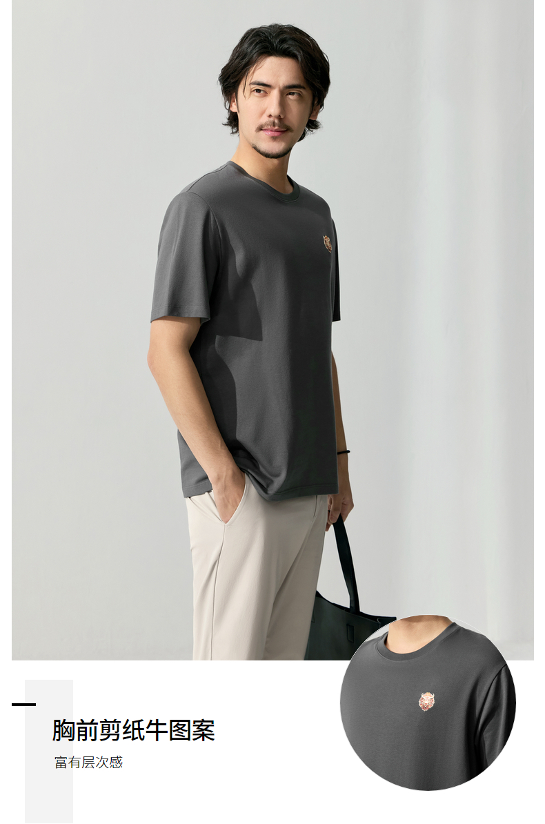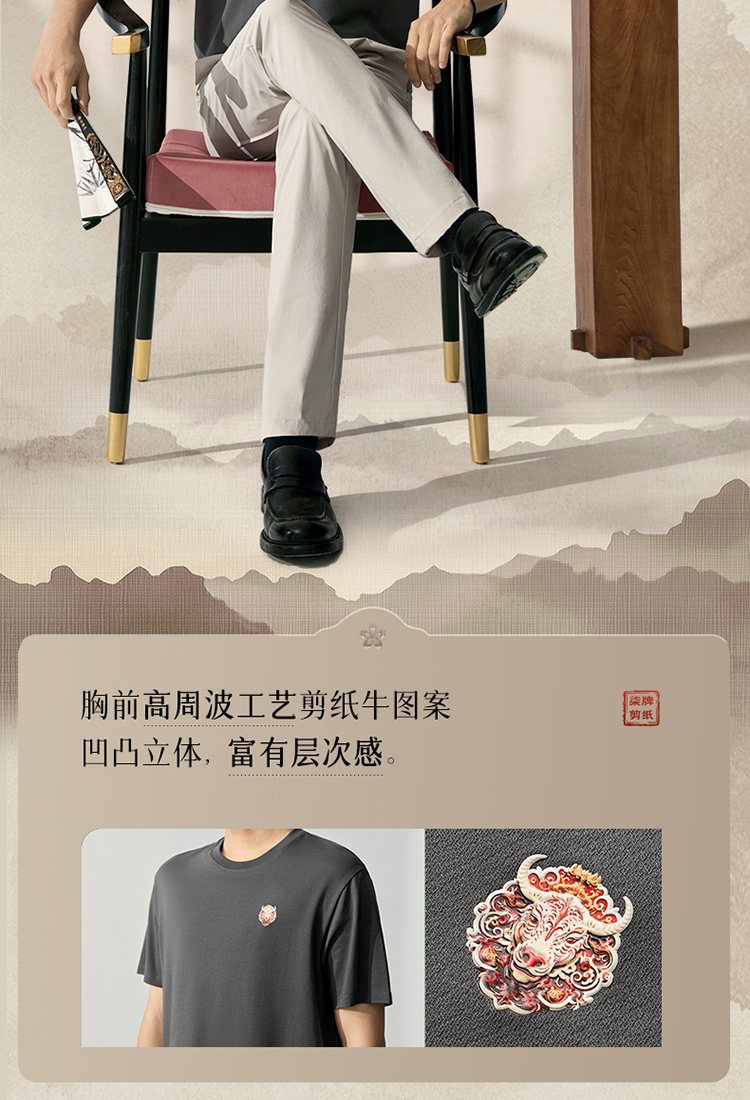 【十二生肖剪纸牛】柒牌短袖T恤男夏季新款剪纸小牛时尚休闲体恤128T72130