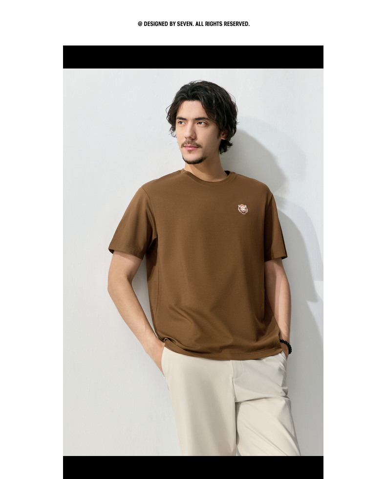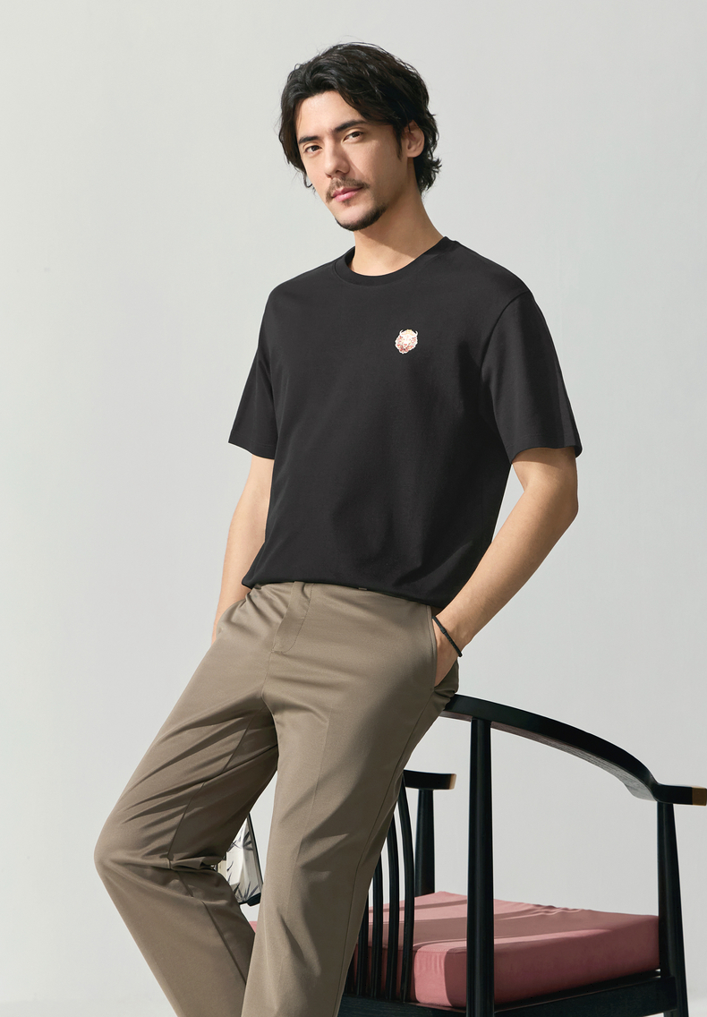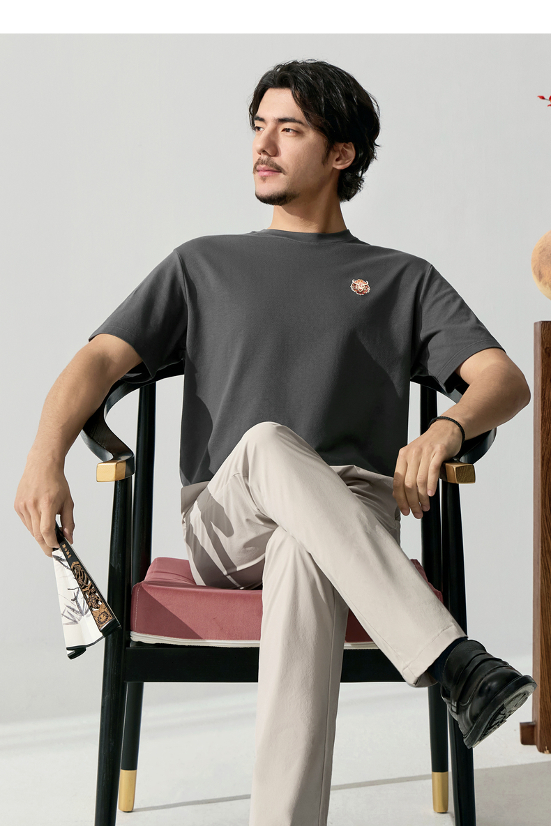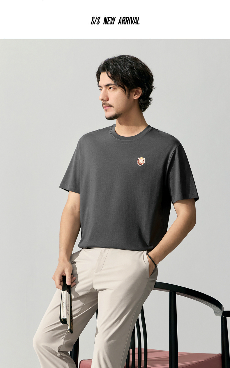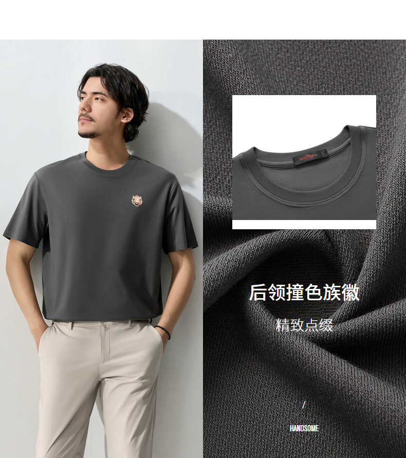 【十二生肖剪纸牛】柒牌短袖T恤男夏季新款剪纸小牛时尚休闲体恤128T72130