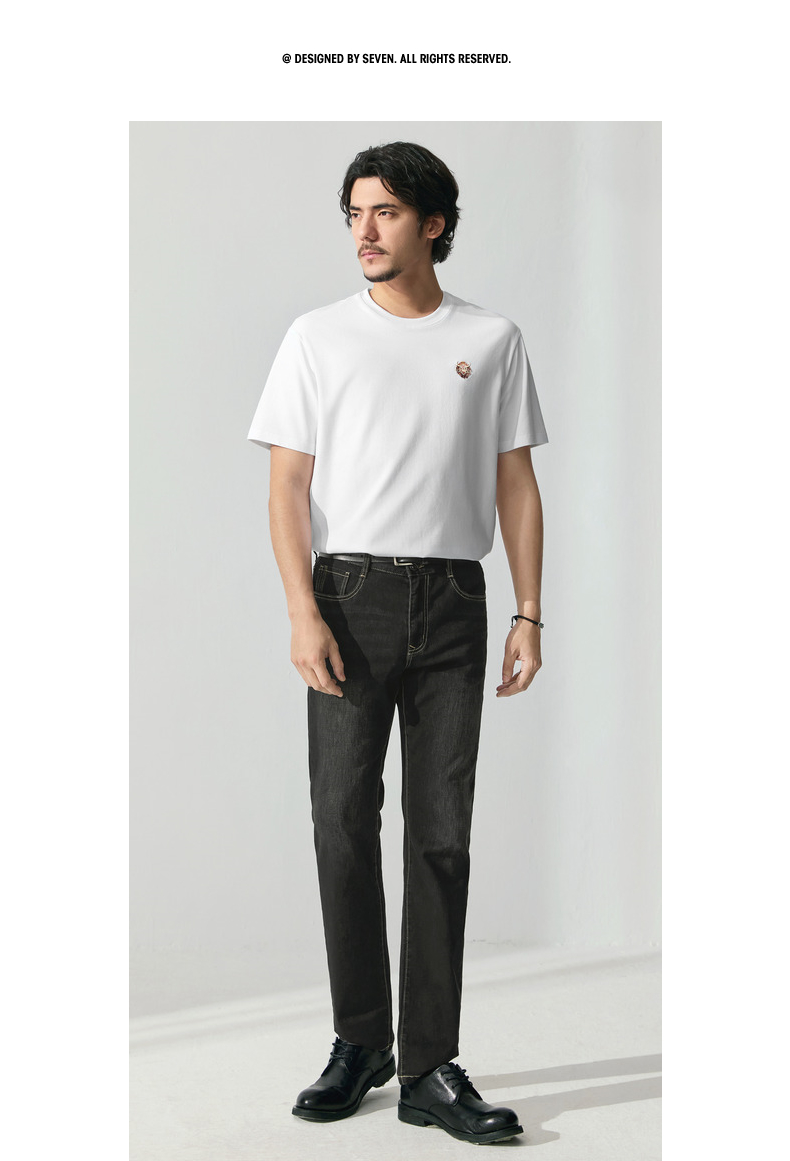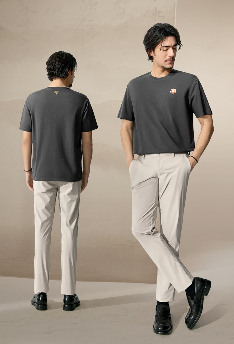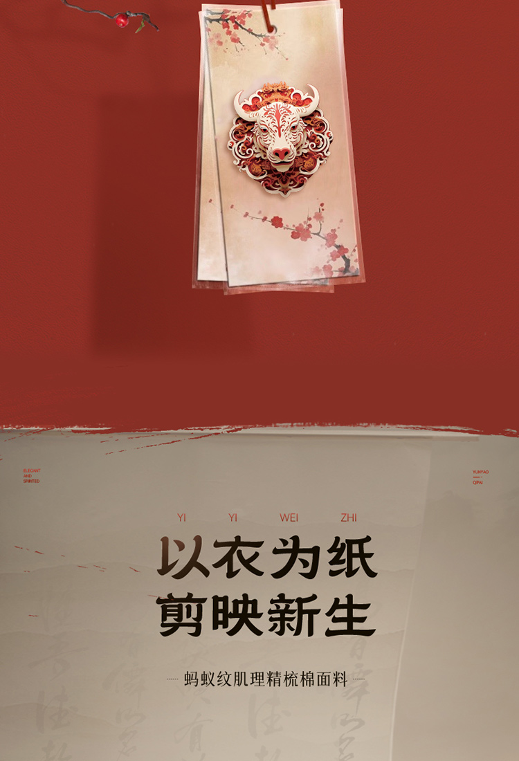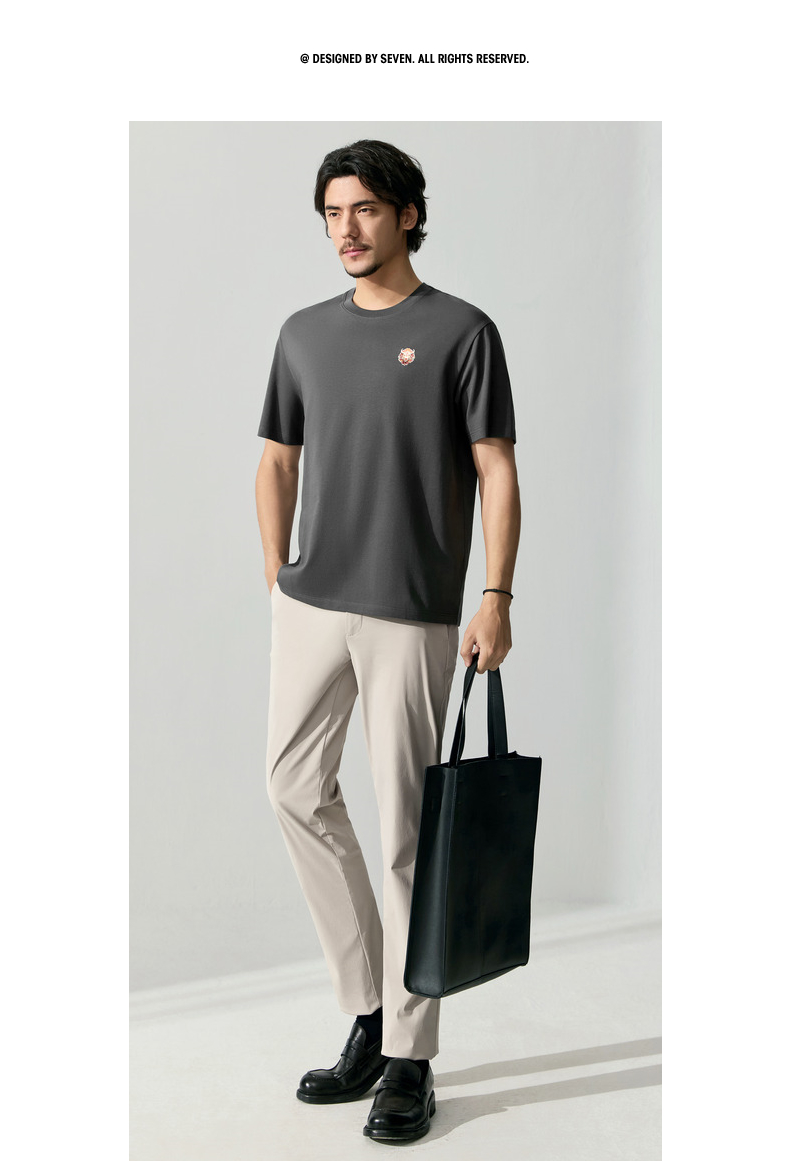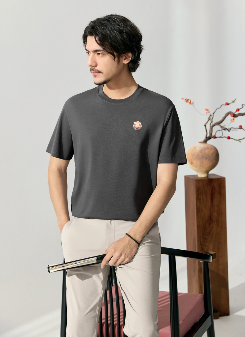 【十二生肖剪纸牛】柒牌短袖T恤男夏季新款剪纸小牛时尚休闲体恤128T72130