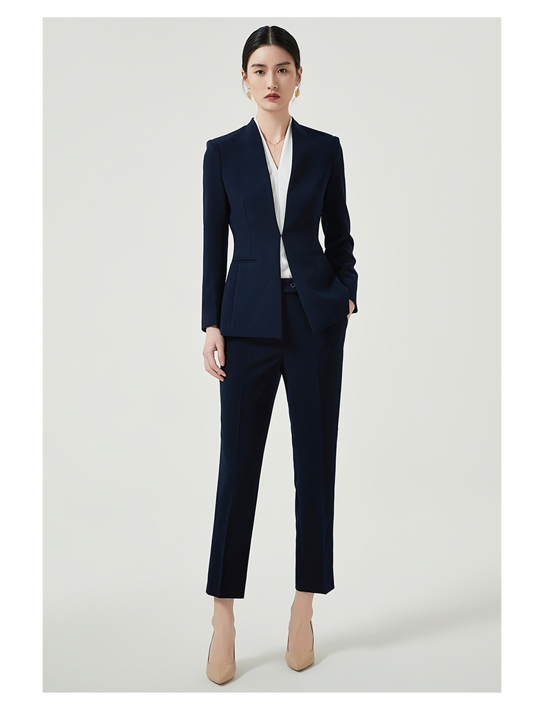 IWY/藏青色西装外套女2023新款秋季高级感职业套装修身经理工作服正装CP12305