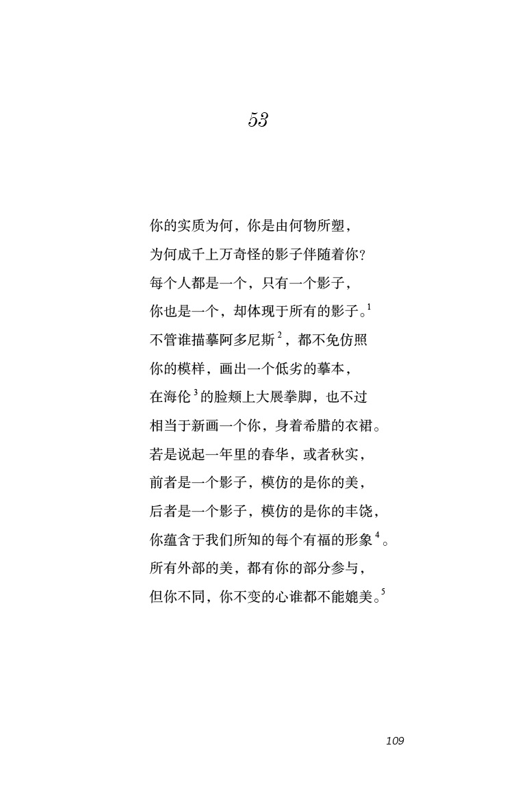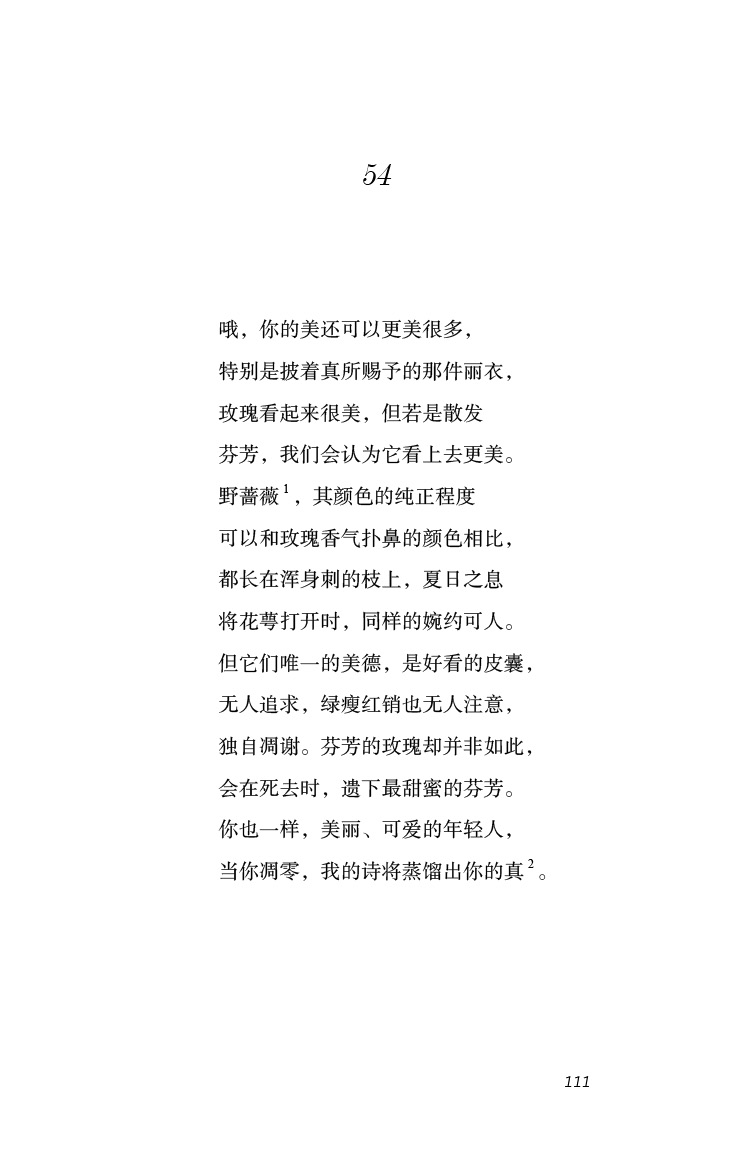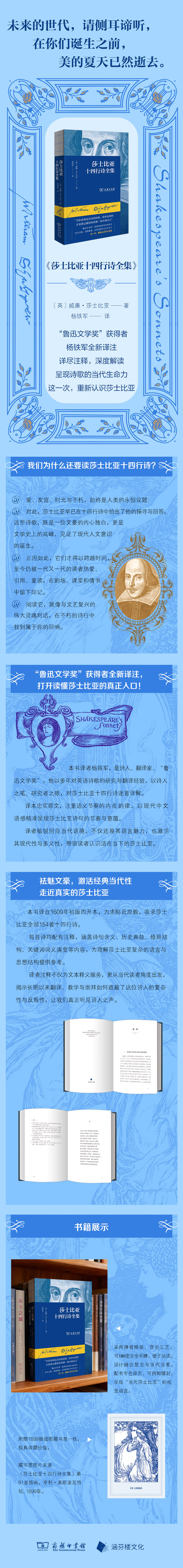 译者以当代诗人的敏锐与学者的严谨,逐首对诗作进行深度解构与翻译,力求在现代中文语境中还原原作的韵律之美与语义张力。每首诗均配有详尽注释,不仅解析修辞典故,更致力于祛魅“文豪”刻板印象,揭示被崇拜遮蔽的文本复杂性。本书直面爱、友谊、时光与不朽等永恒议题,带领读者穿越四百年时空,在不朽的诗行中与真实的莎士比亚灵魂对话。