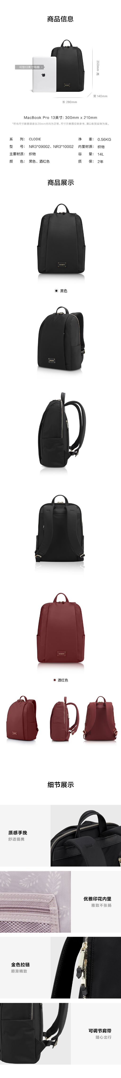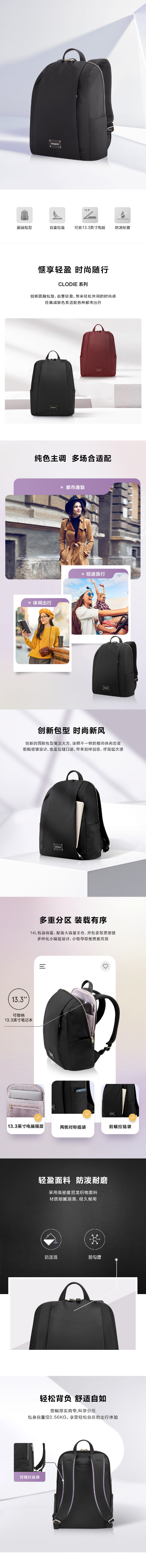 新秀丽CLODIE系列都市通勤女士双肩包NR3*002