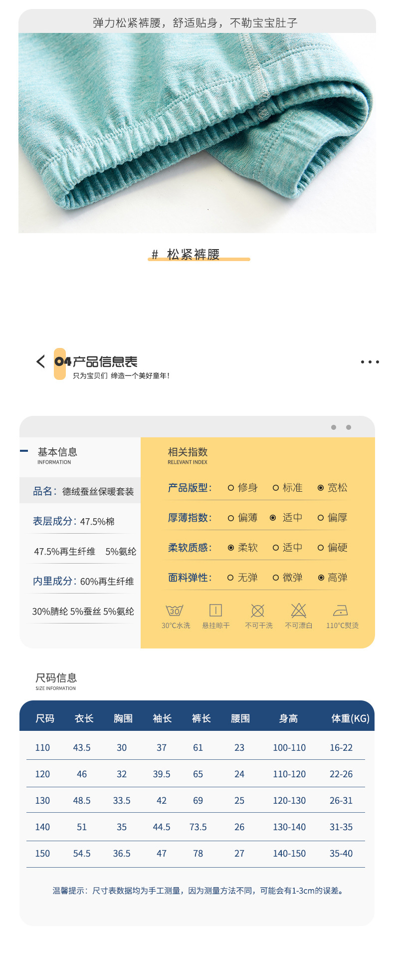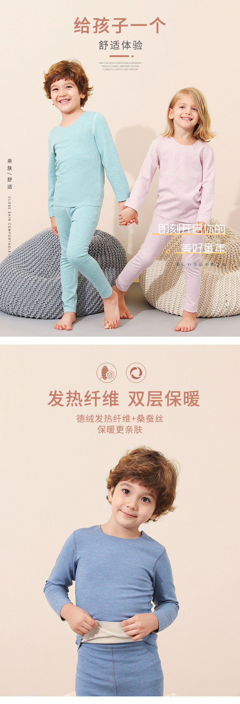 21秋冬新款儿童保暖内衣套装德绒蚕丝发热内衣AB加绒无痕套装