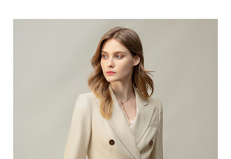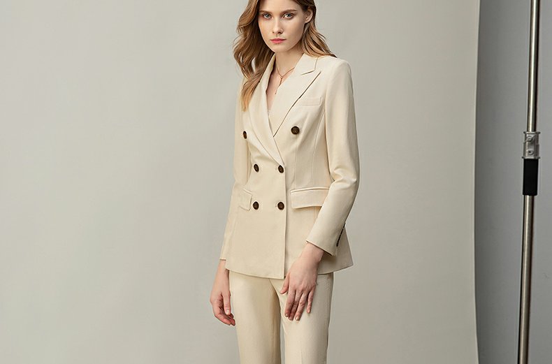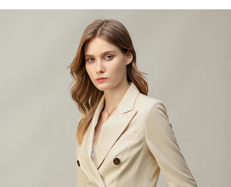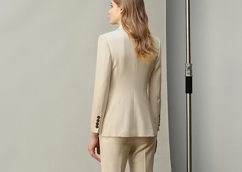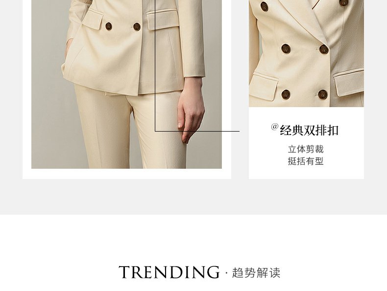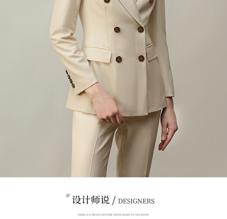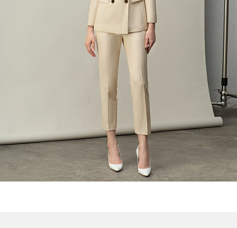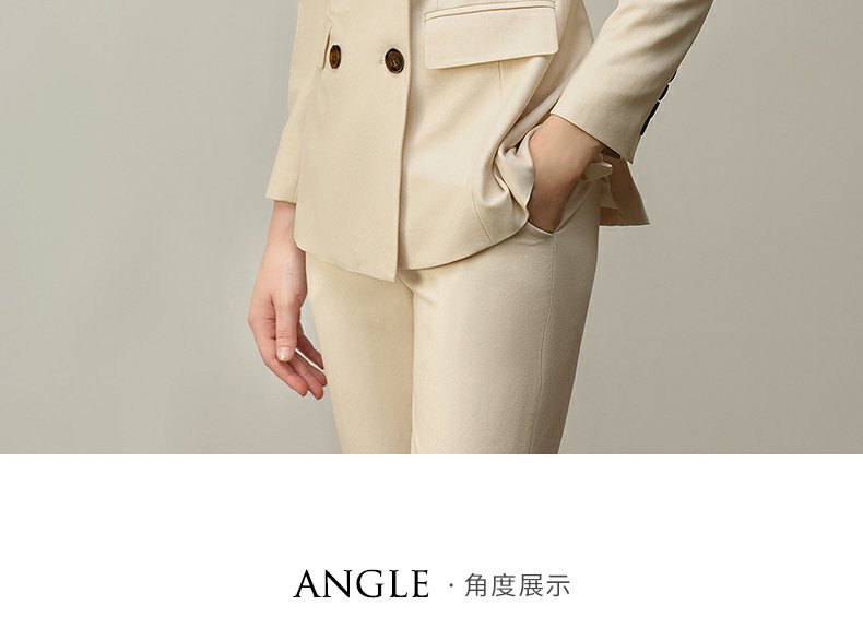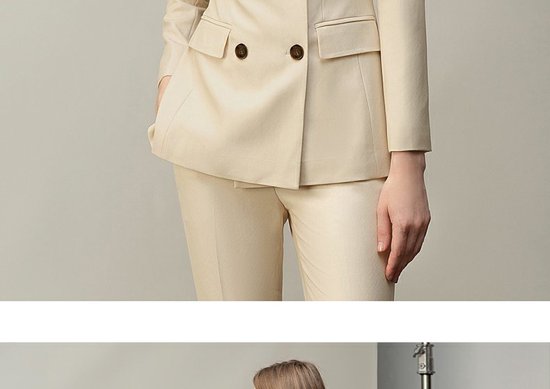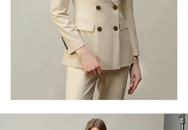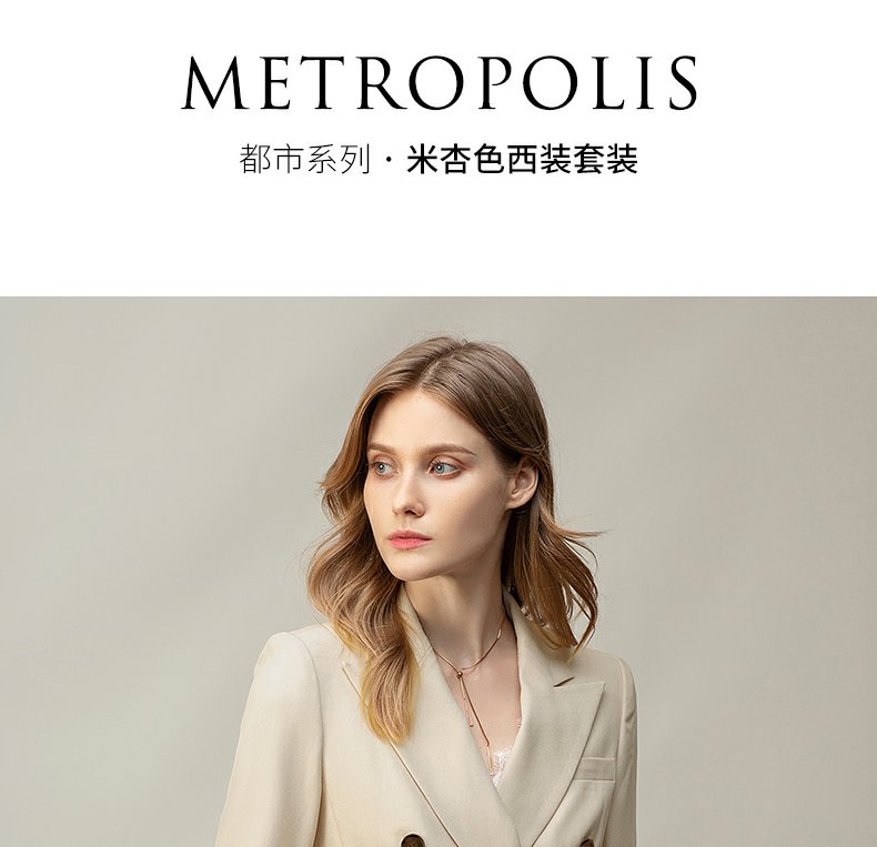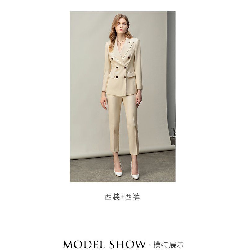 IWY/秋冬杏色西装套装女宽松简约商务通勤优雅气质西装西裤套装OLC12353+P12312