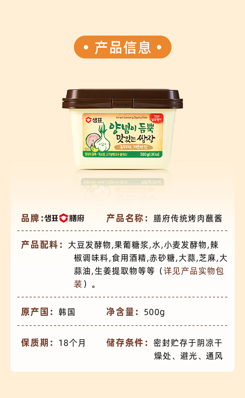 【新品上架】膳府传统烤肉蘸酱500g烤肉店同款蘸酱拌菜拌面酱 031374