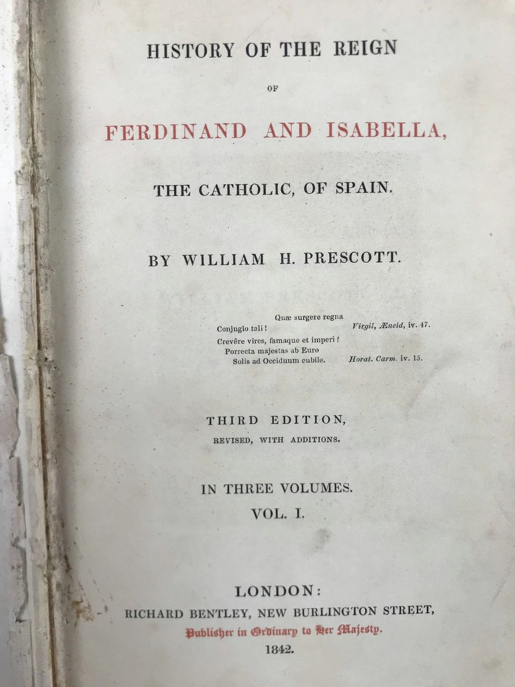 1842年 普雷斯科特《斐迪南与伊莎贝拉统治史》(全3卷) 配版画肖像插图 真皮精装18开