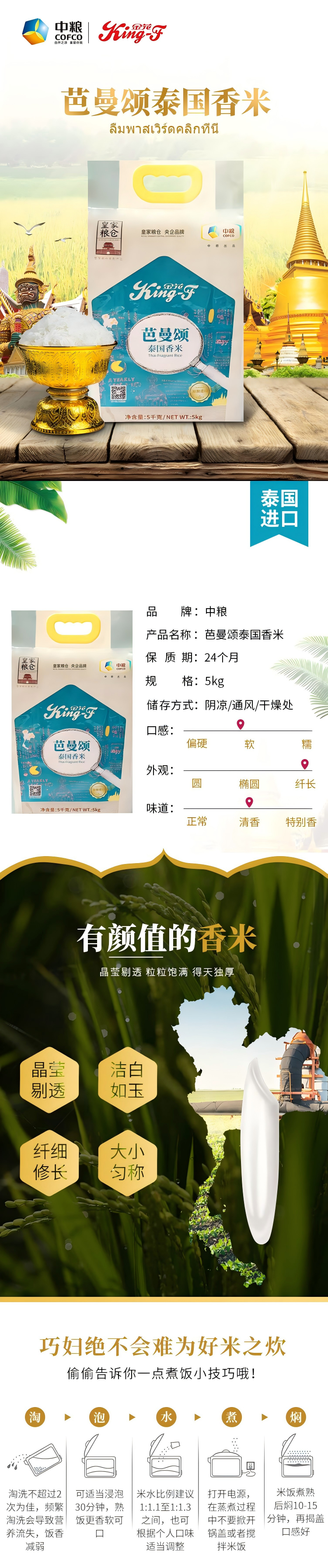 【八十八倉甄选】中粮皇家粮仓金花芭曼颂泰国香米5kg