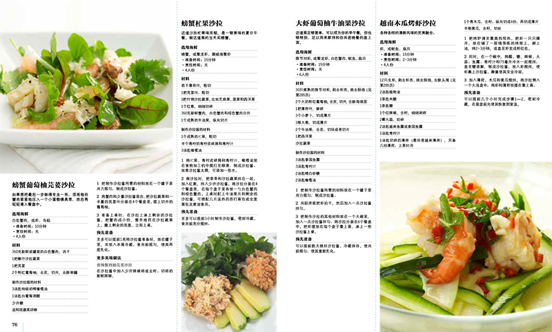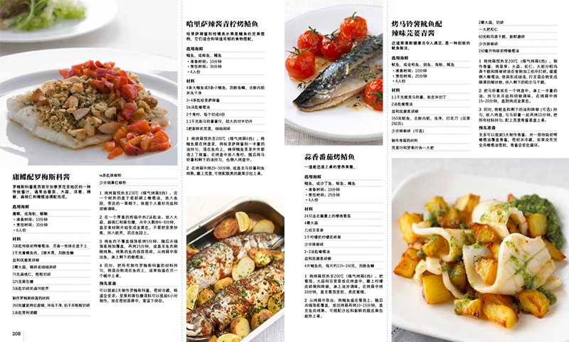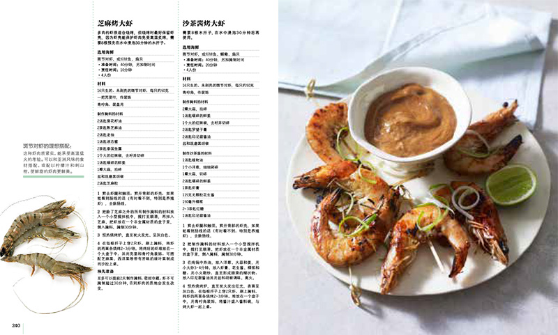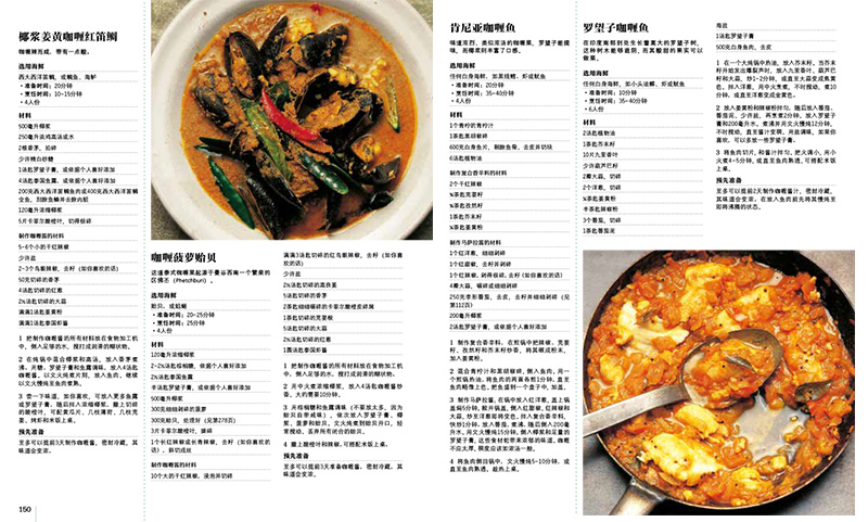 300多份食谱均列出了制备所需的时间、成品份数、称量精确的食材列表、烹饪步骤,以及食材替代方案,以满足各类饮食和风味偏好的需要。经典菜谱更是配有拍摄考究的成品图,提供菜品的摆盘灵感。对于想在家与朋友小聚,用一道充满异国风情的海鲜菜肴招待多位好友的你来说,这本书里的食谱会让你的客人惊叹不已。只需要一斤对虾,几样印度特色香料,半个多小时就可以完成一道香气浓郁的喀拉拉邦咖喱虾浓汤。这道浓汤可以作为主菜,让多达8个人品尝,只需搭配一些米饭或面包,便完成了令人印象深刻的一餐。食谱的最后还提示我们可以提前一天制作到收汁的步骤,只需要密封冷藏并在食用前加热,备餐时便能够从容不迫。