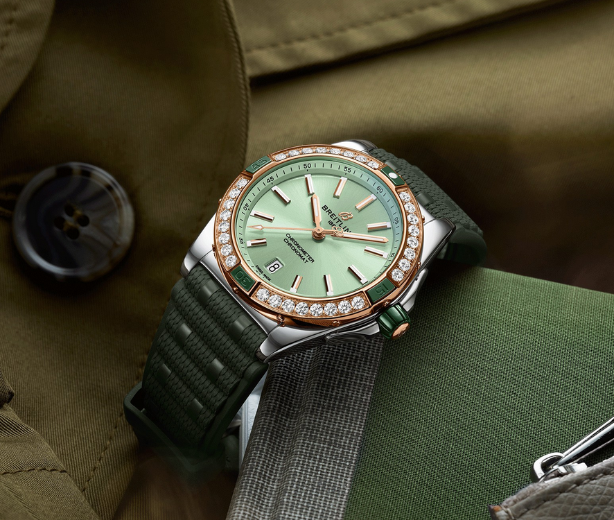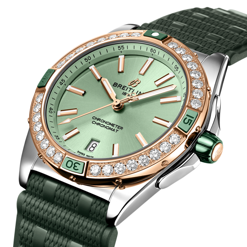 镜面 材质 | 双面防反光弧面蓝宝石表镜 | 表盘 | 精钢/18K玫瑰金表壳 薄荷绿色表盘,Super-LumiNova夜光刻度与指针 夜光棒状时标 棘轮式单向18K红金表圈,饰以实验室培育钻石(按可持续发展等级钻石标准培育)和陶瓷刻度 旋入式陶瓷表冠,双密封垫 日期显示 |
