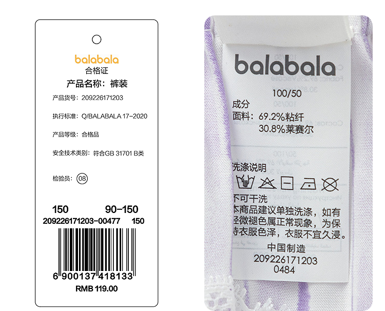 巴拉巴拉儿童裤子男童女童夏季防蚊裤小童宝宝透气外出休闲裤可爱