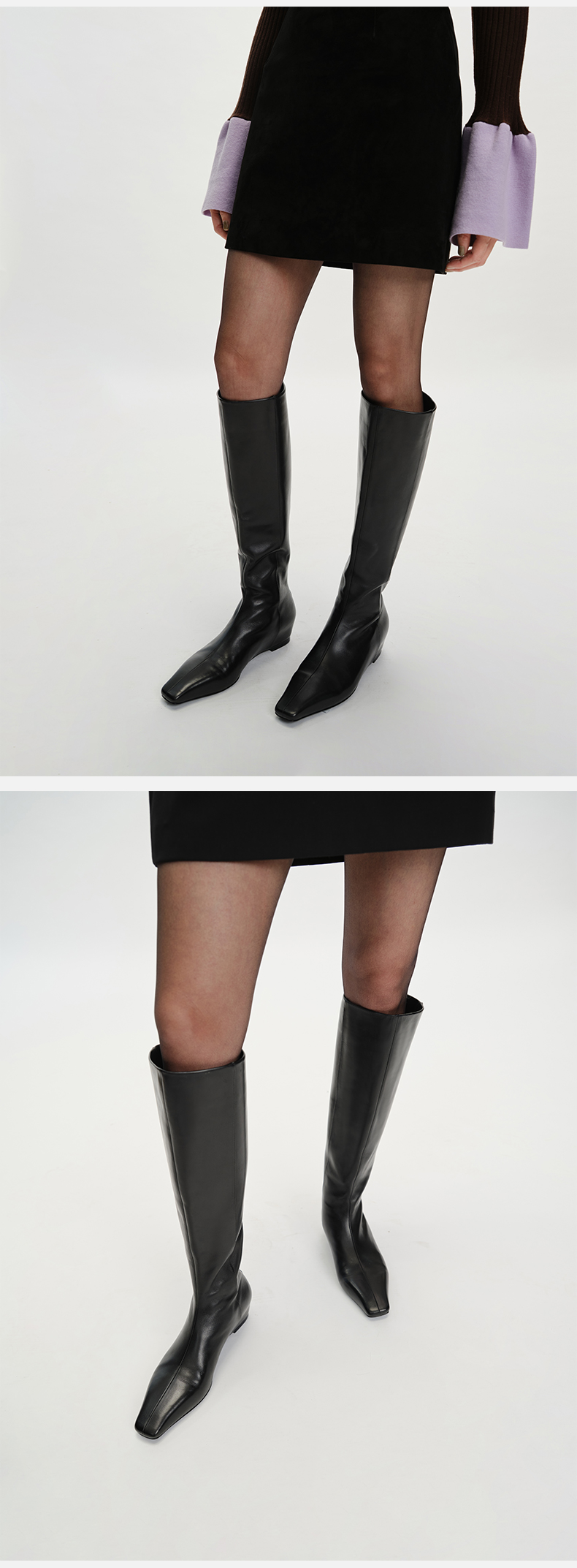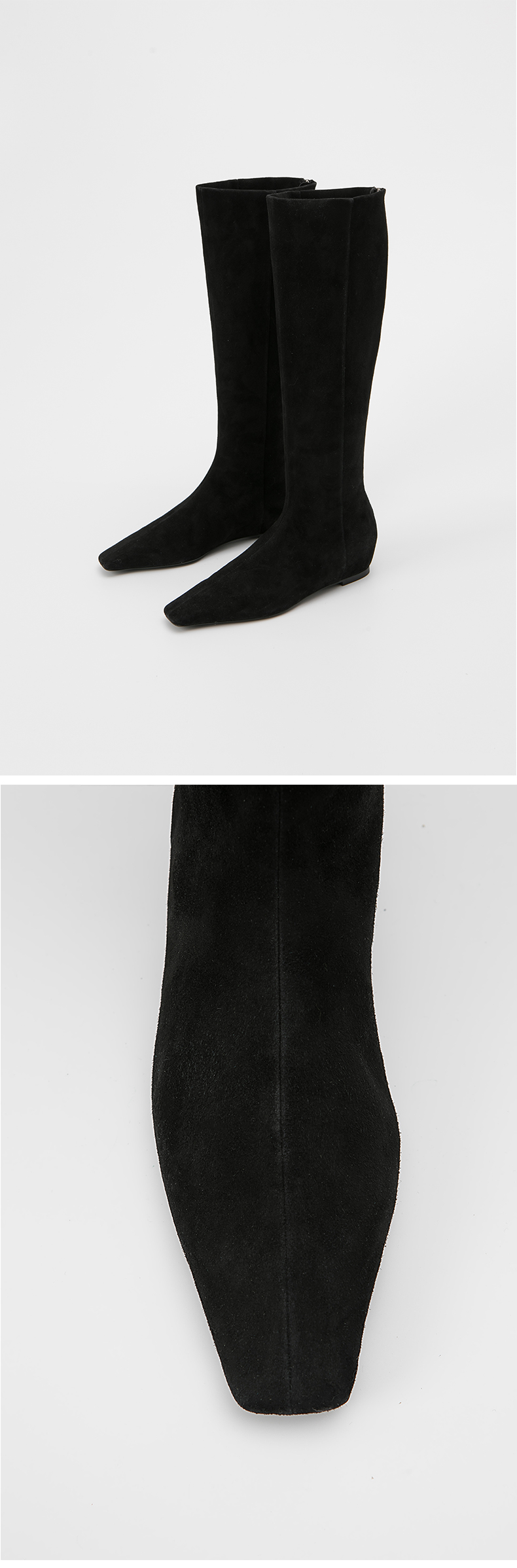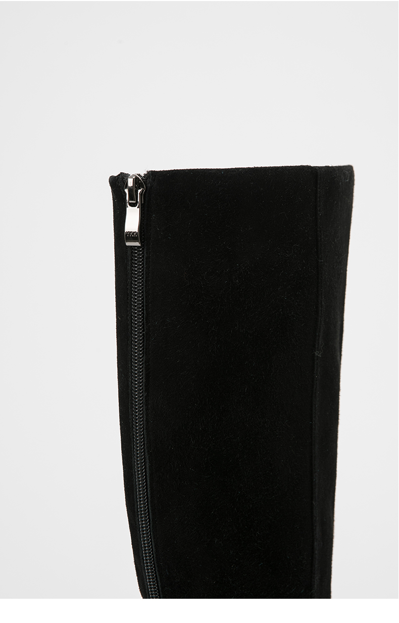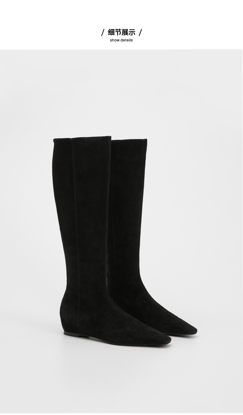 HIDEMI 黑色牛皮/麂皮经典款方尖头内增高长靴
