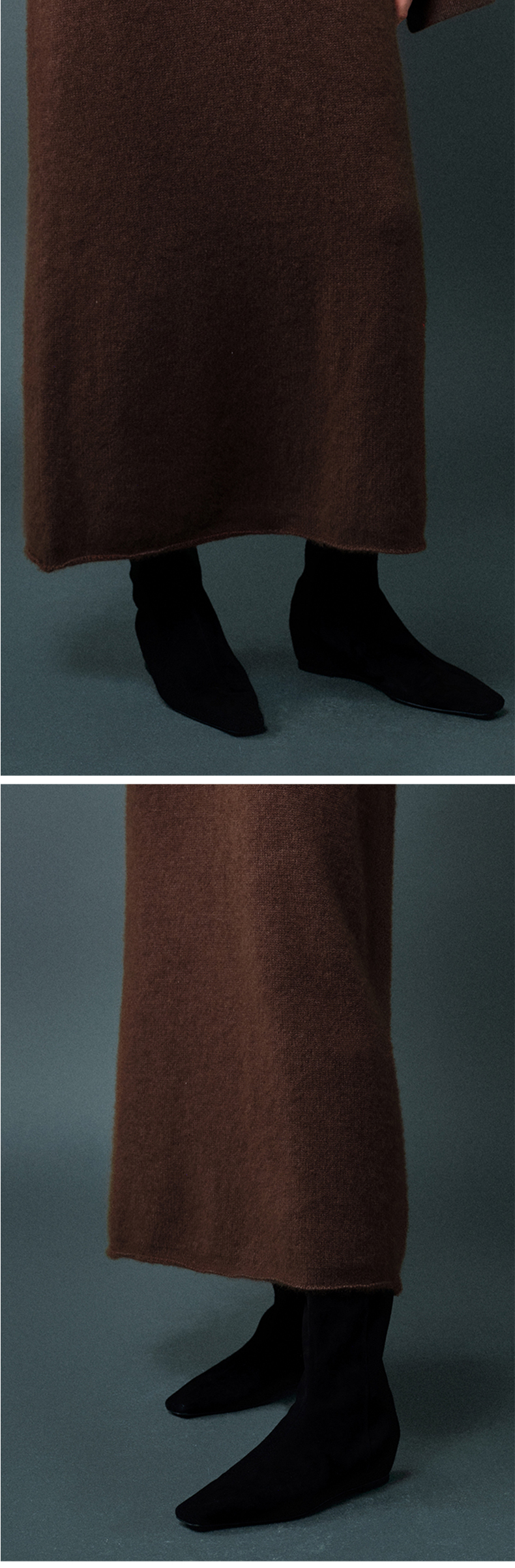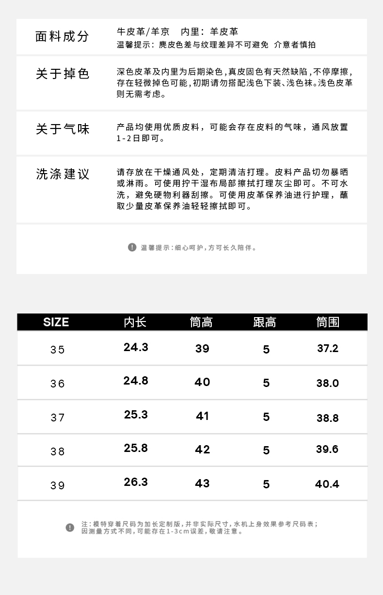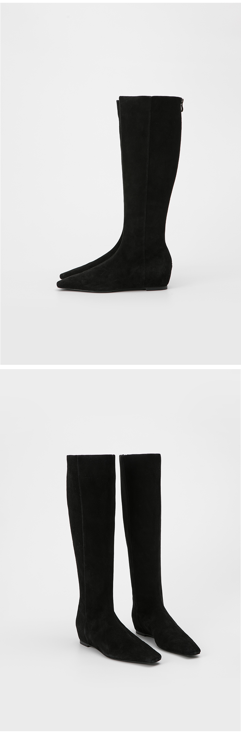 HIDEMI 黑色牛皮/麂皮经典款方尖头内增高长靴