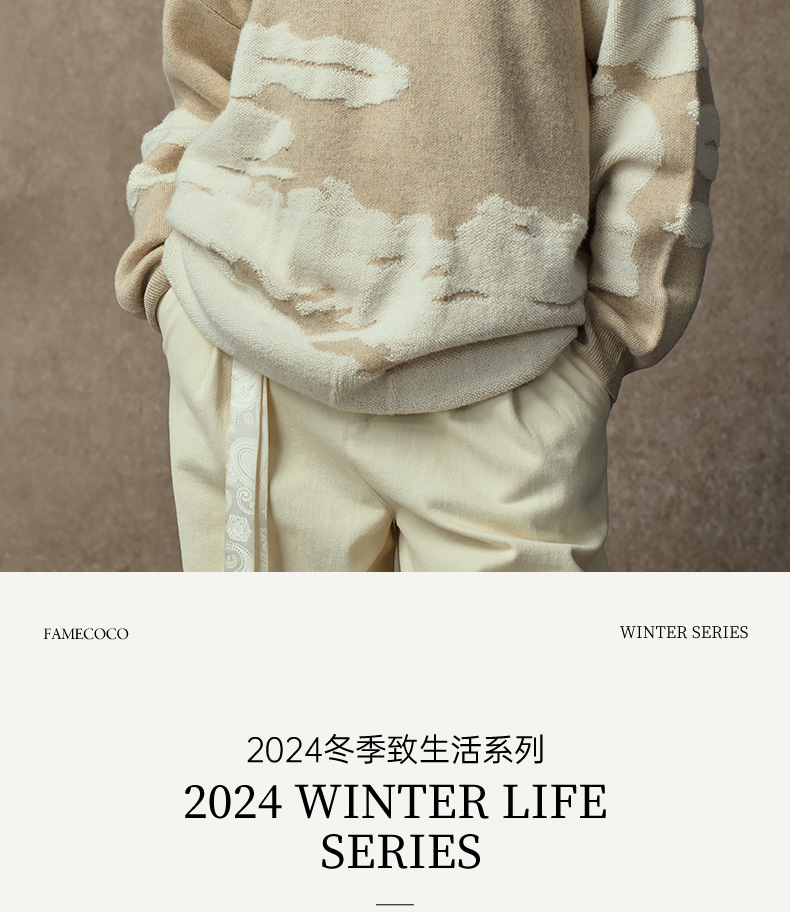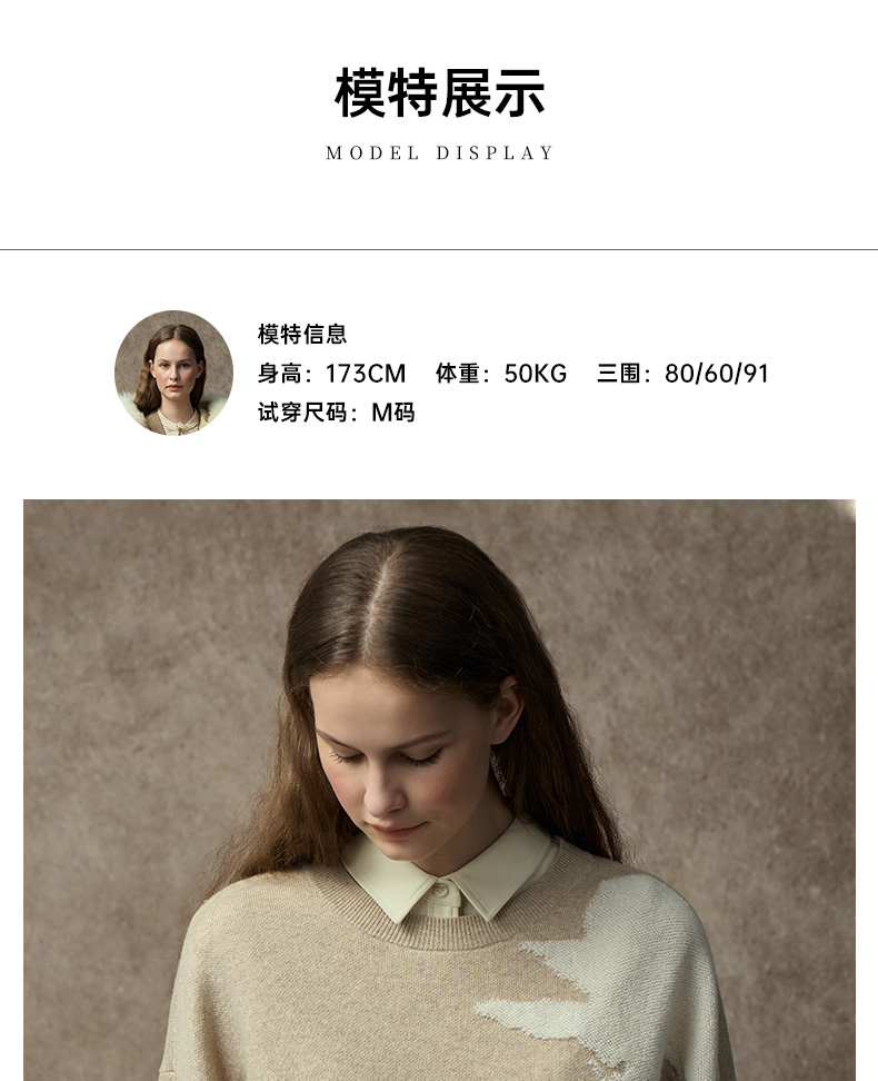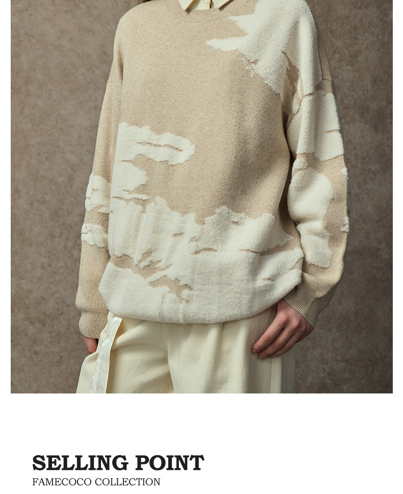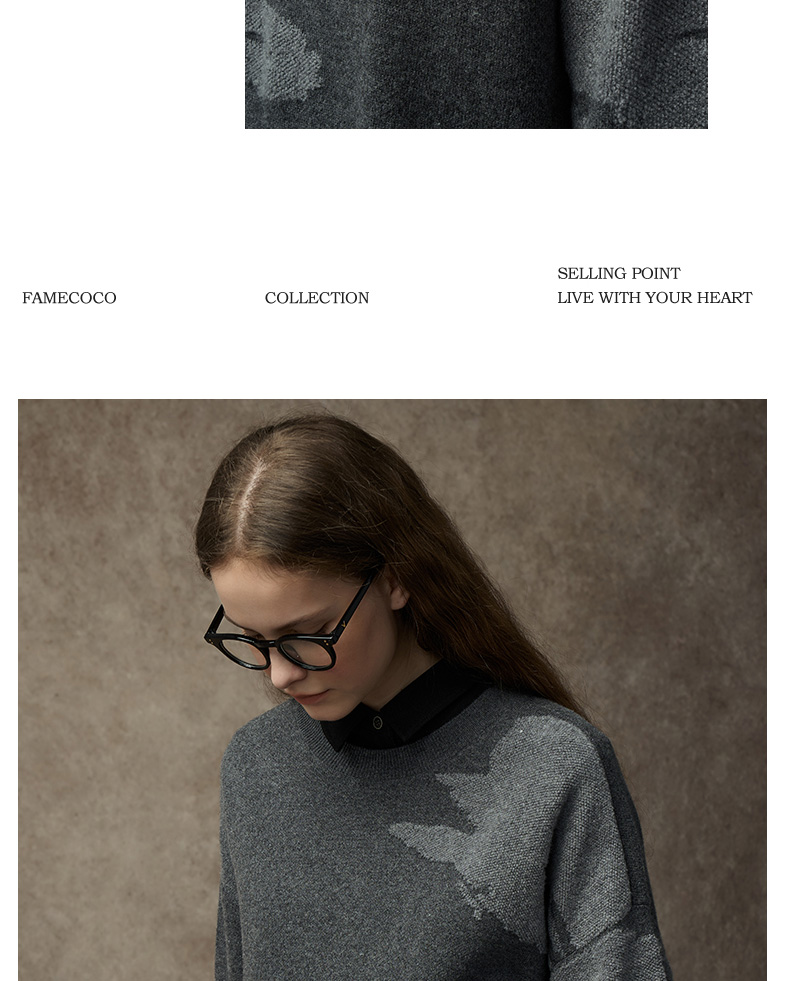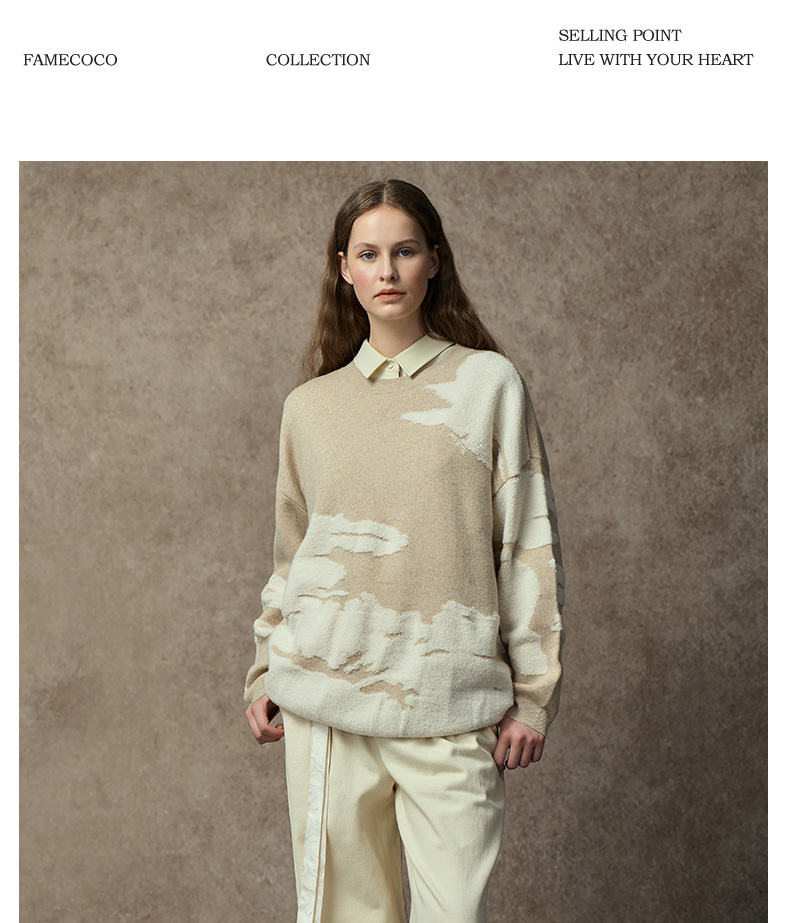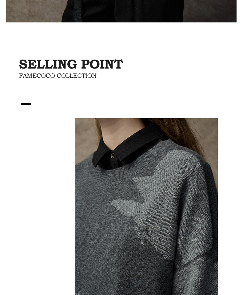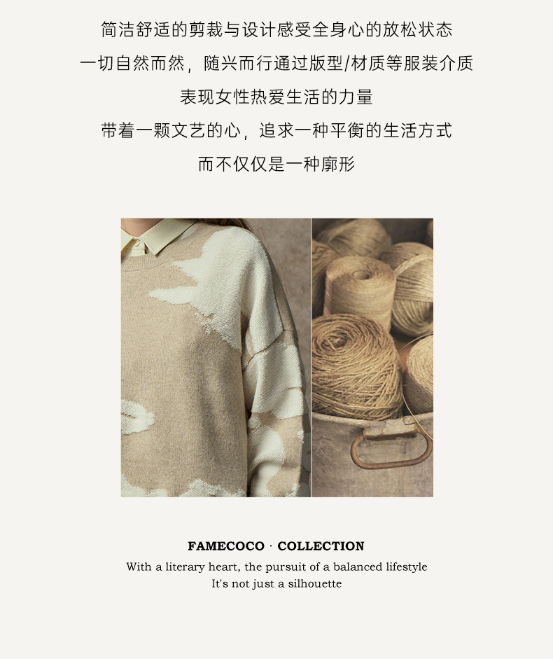 Famecoco范可儿落肩圆领套头钩花羊毛衫FAC8DB008