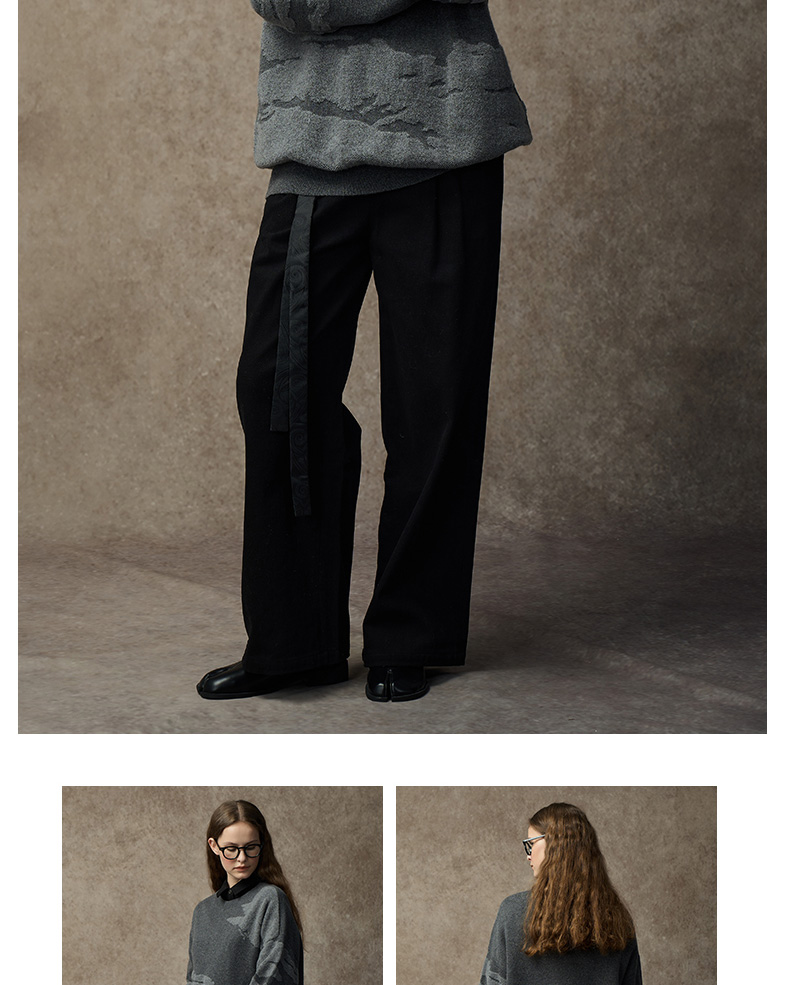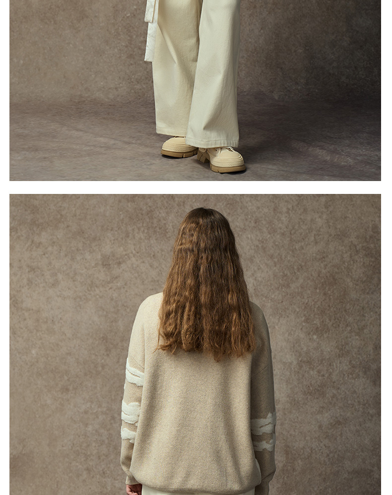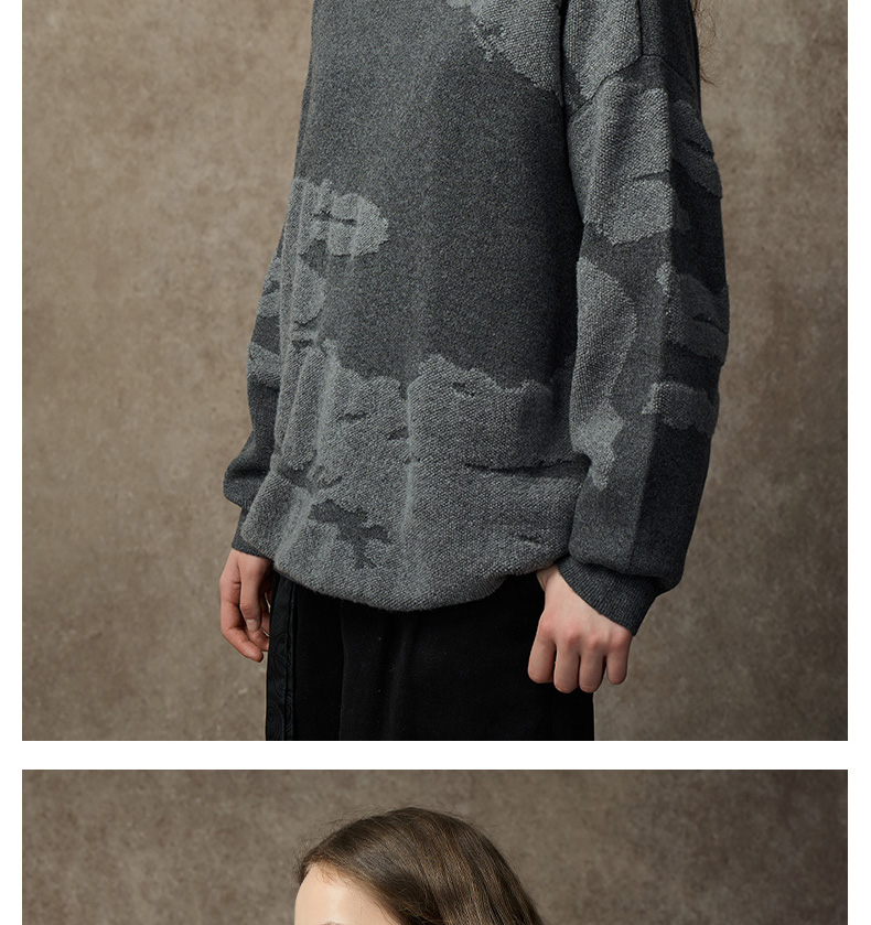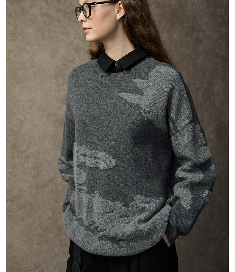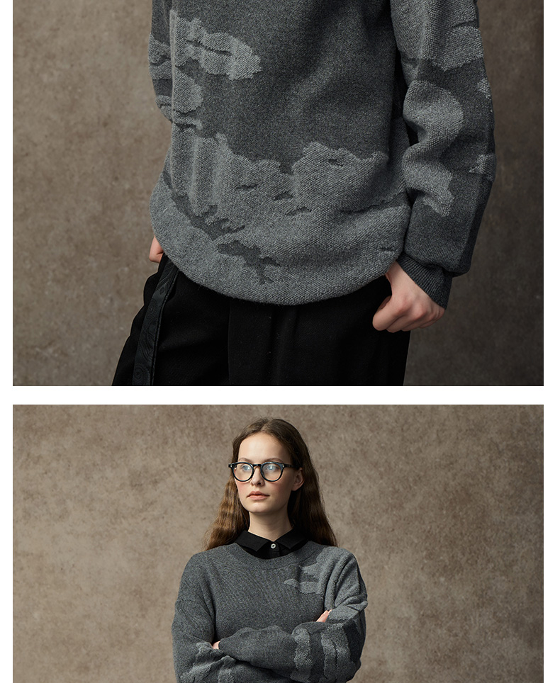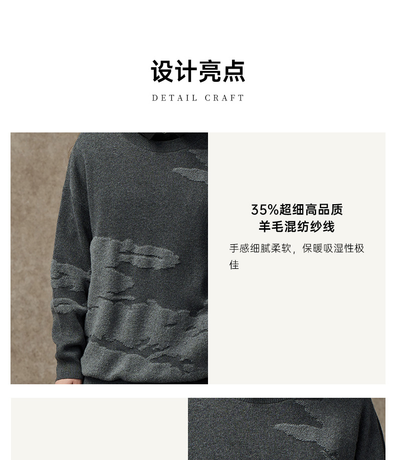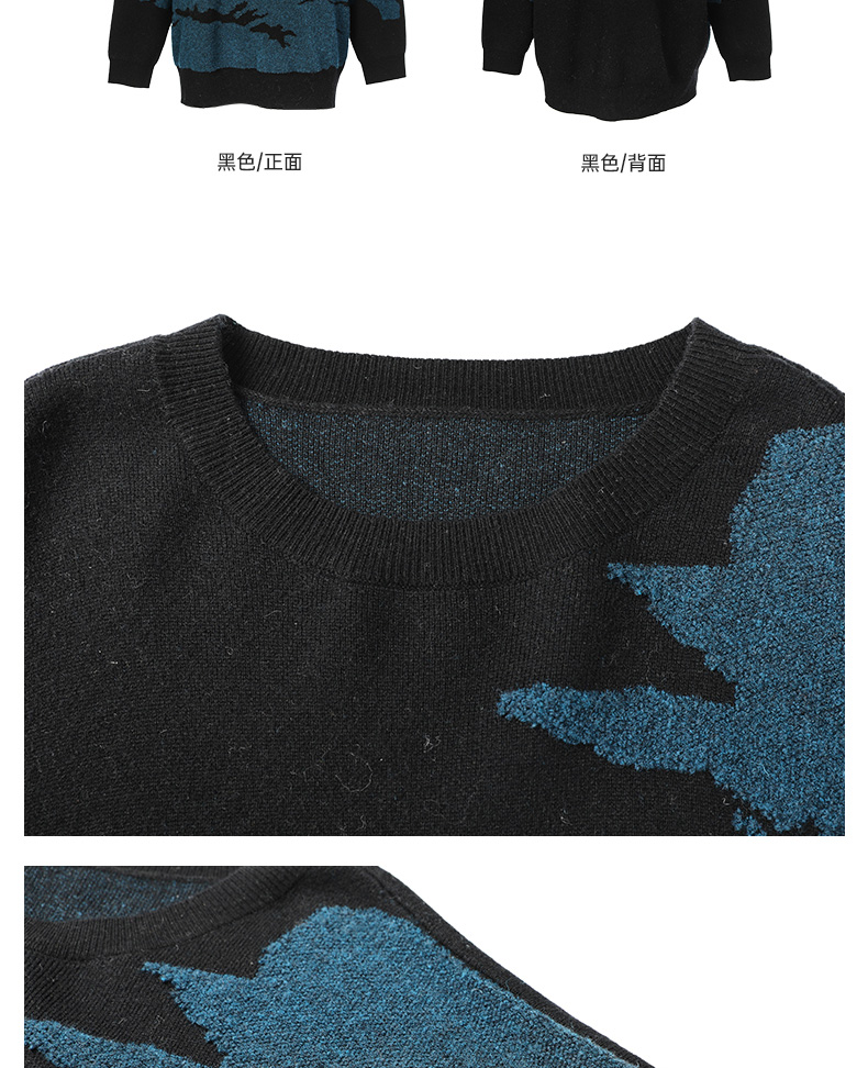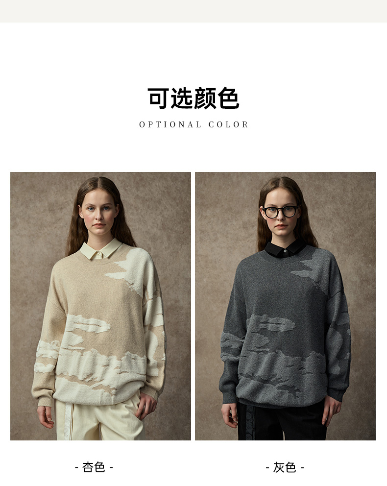 Famecoco范可儿落肩圆领套头钩花羊毛衫FAC8DB008