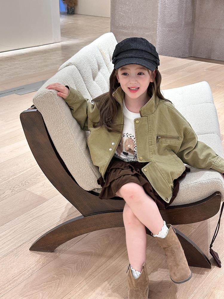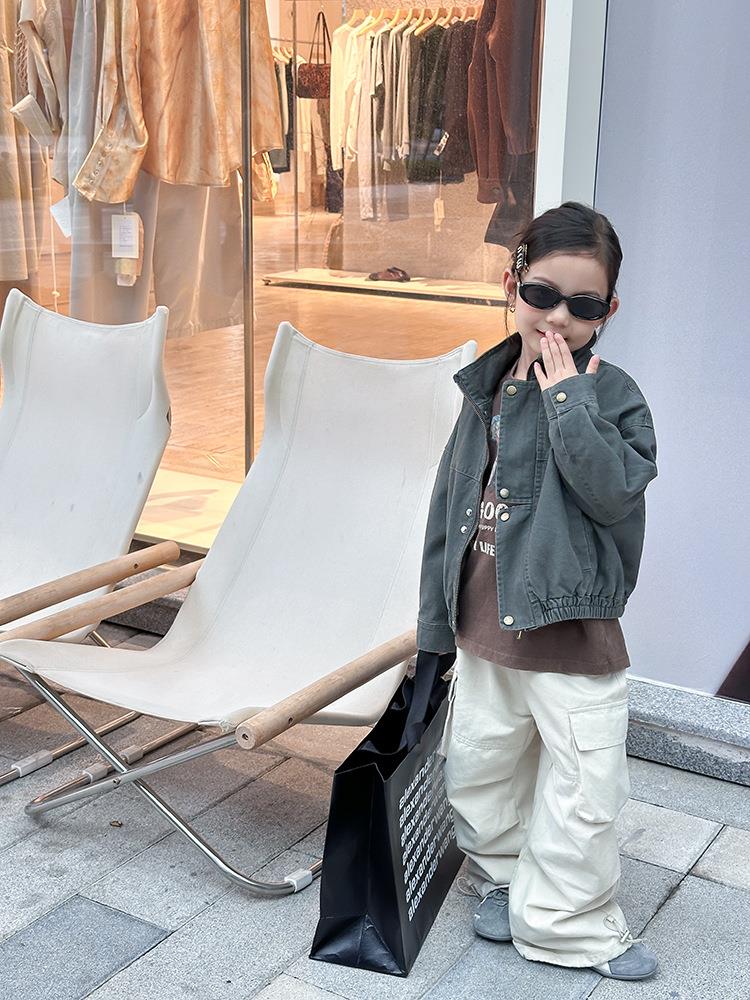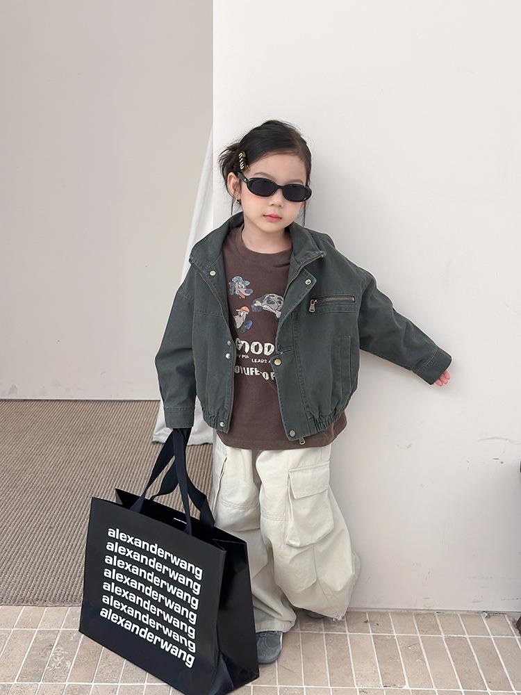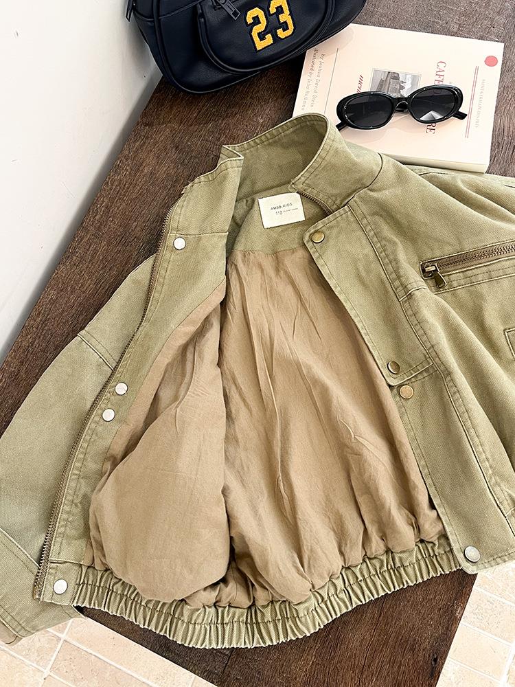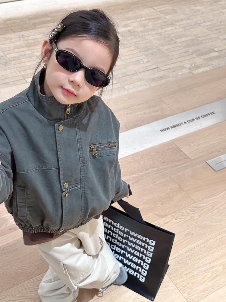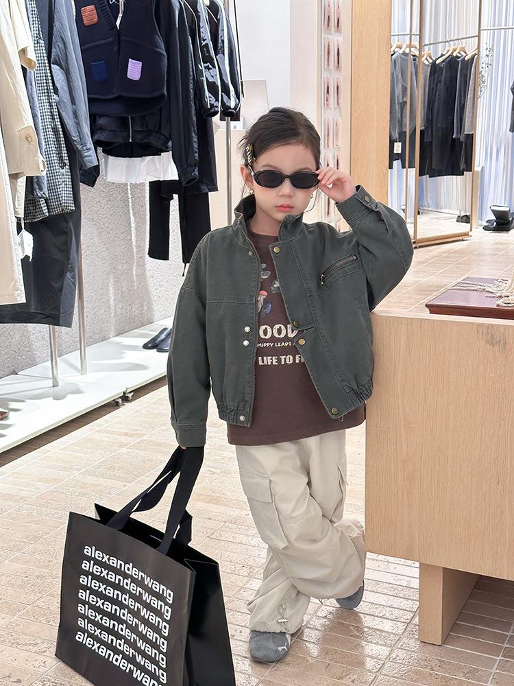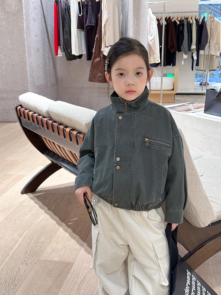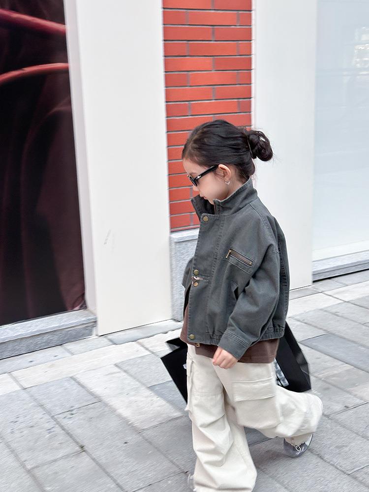 艾摩贝贝女童韩版帅气工装机车夹克上衣儿童品质水洗棉短款外套