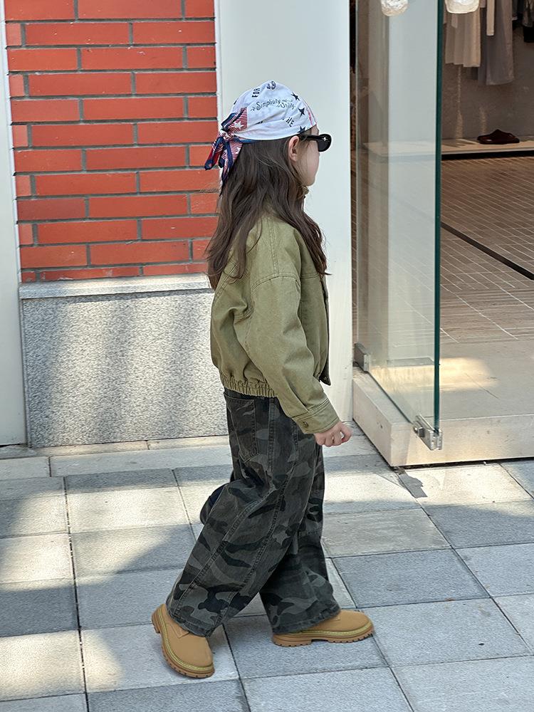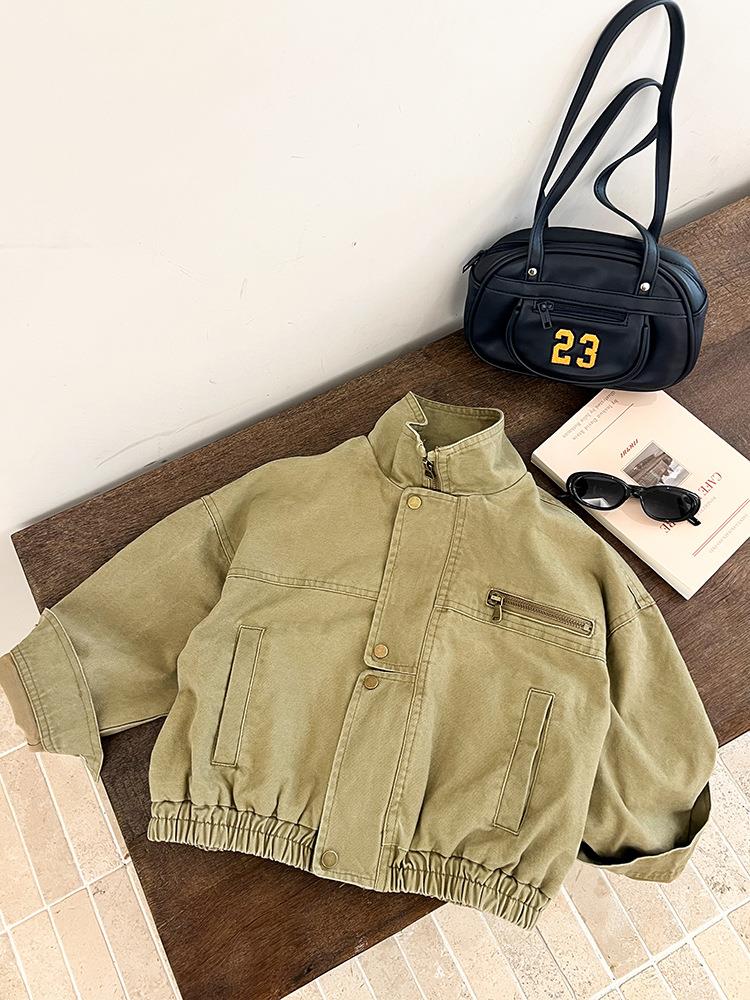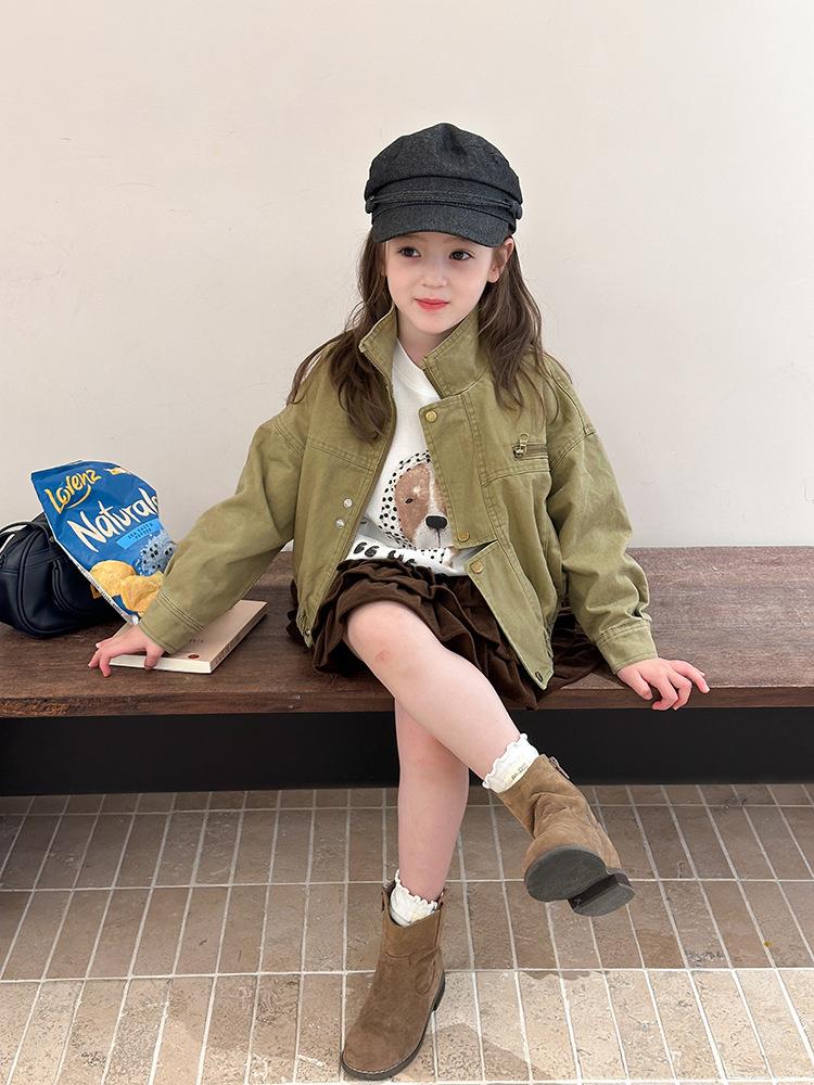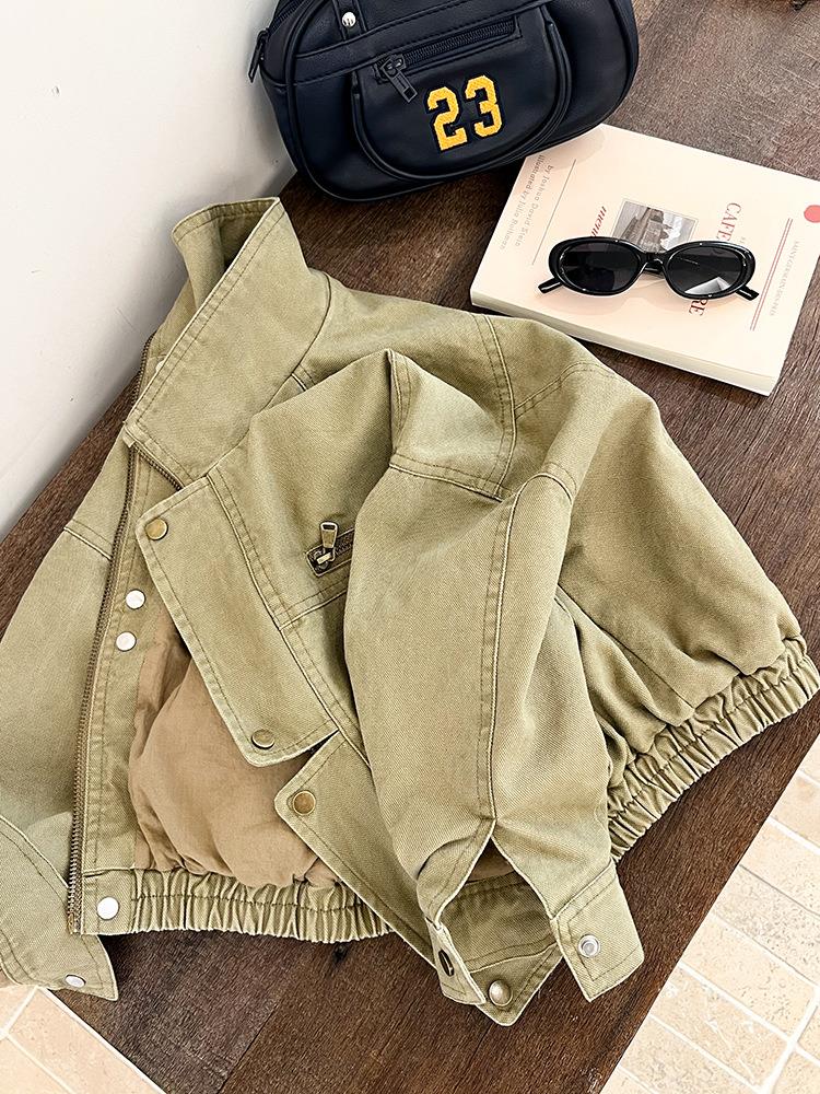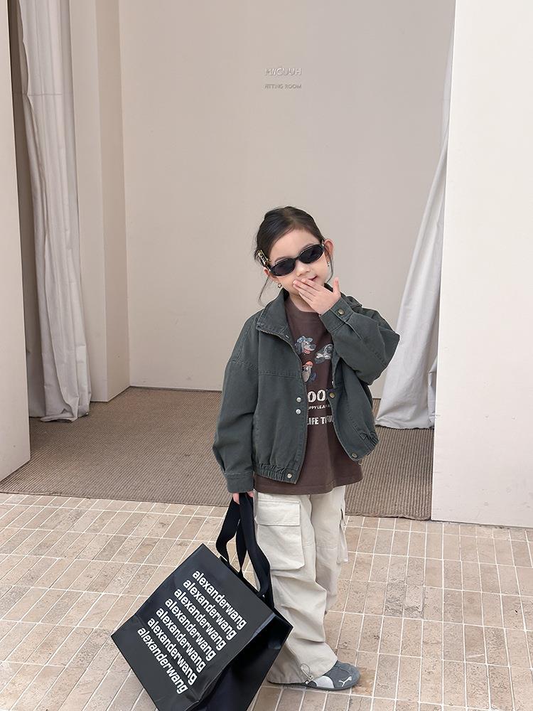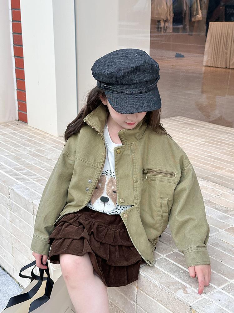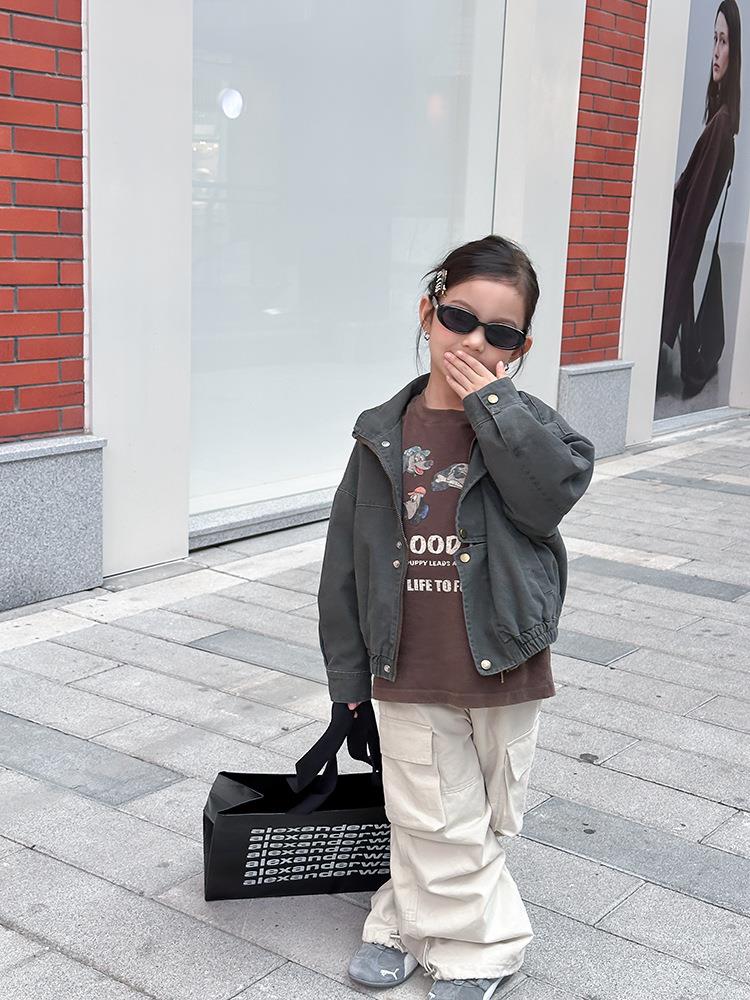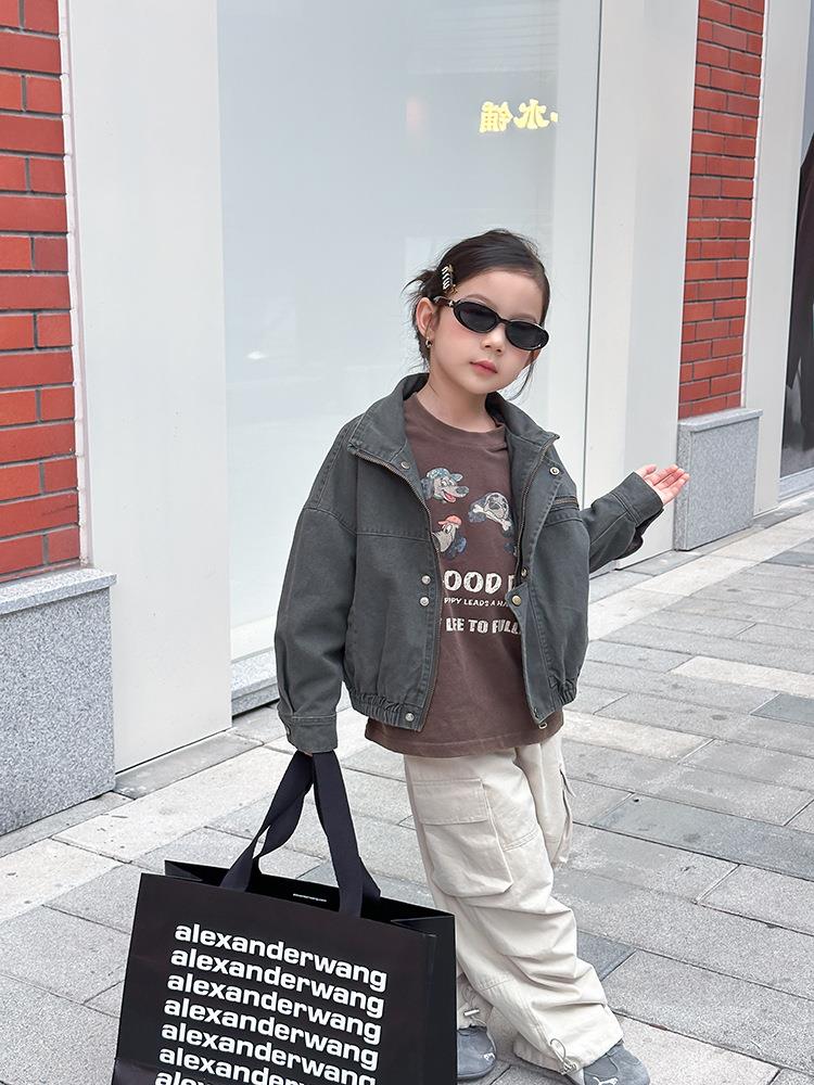 艾摩贝贝女童韩版帅气工装机车夹克上衣儿童品质水洗棉短款外套