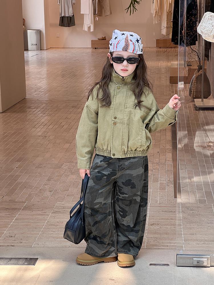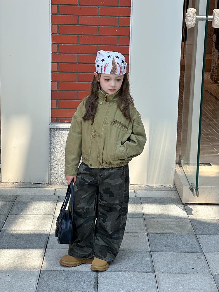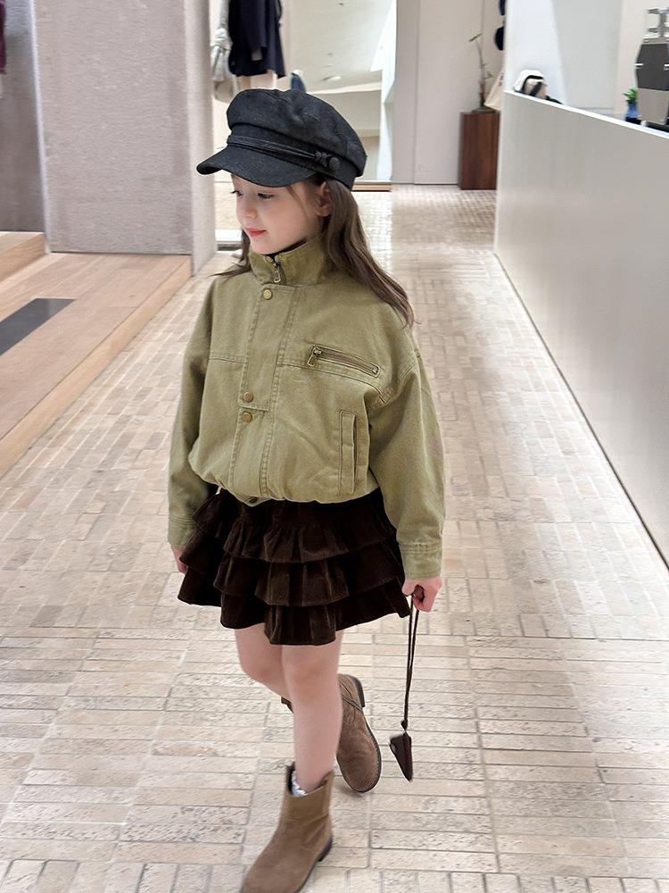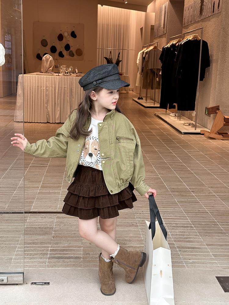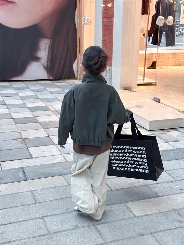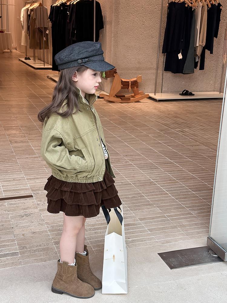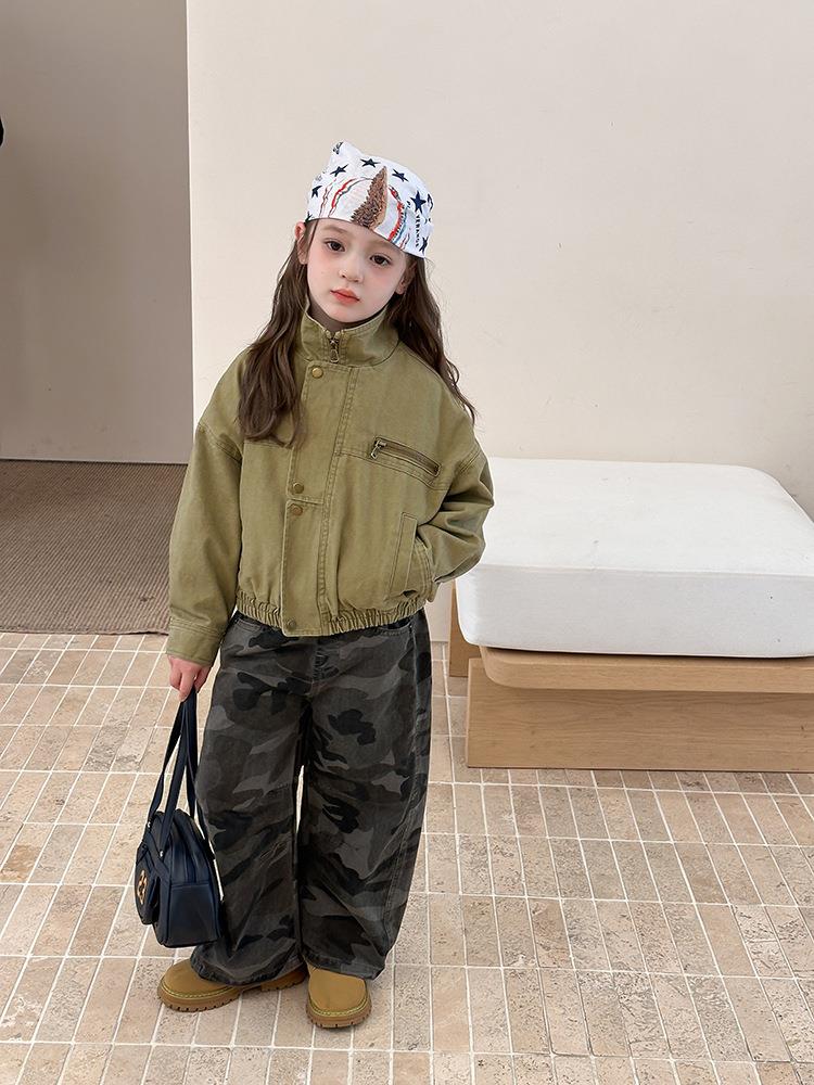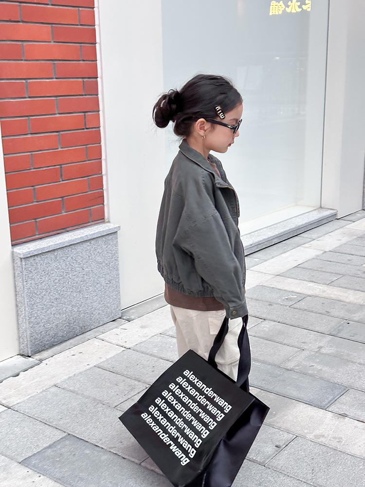 艾摩贝贝女童韩版帅气工装机车夹克上衣儿童品质水洗棉短款外套