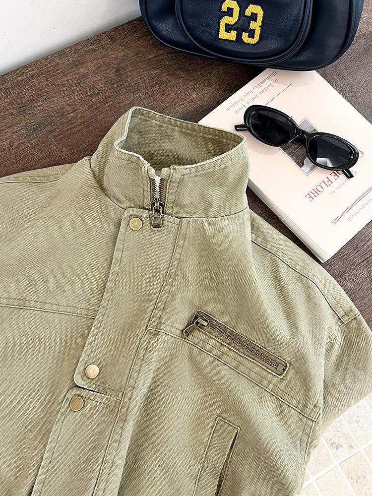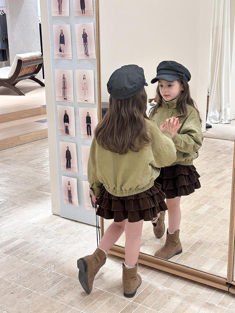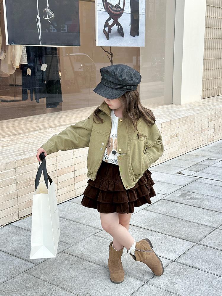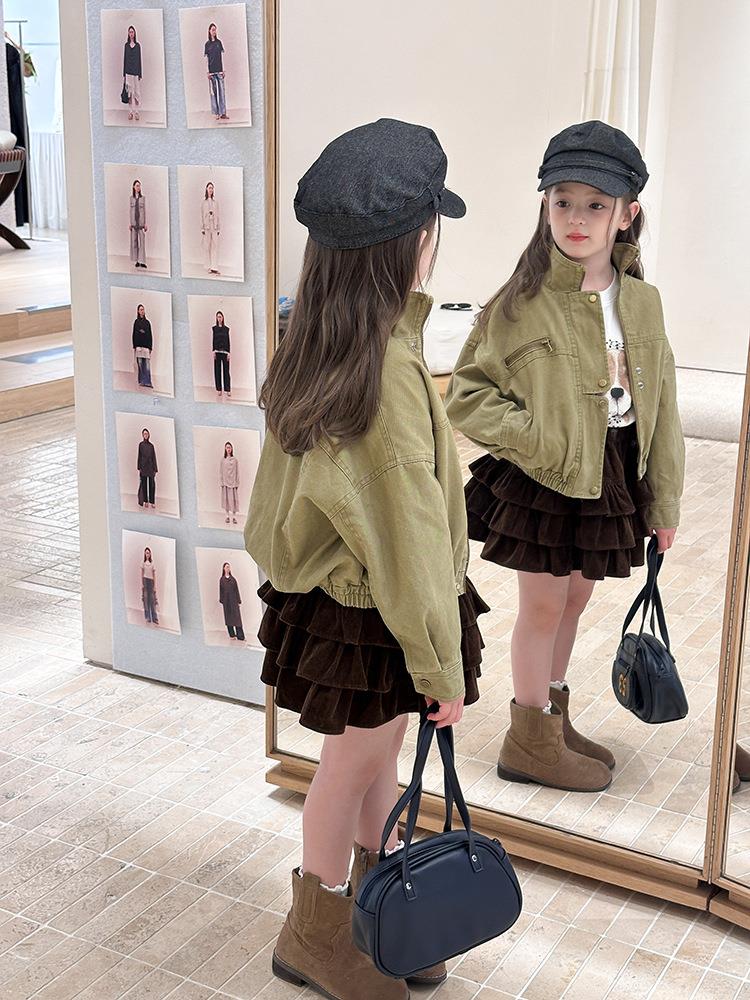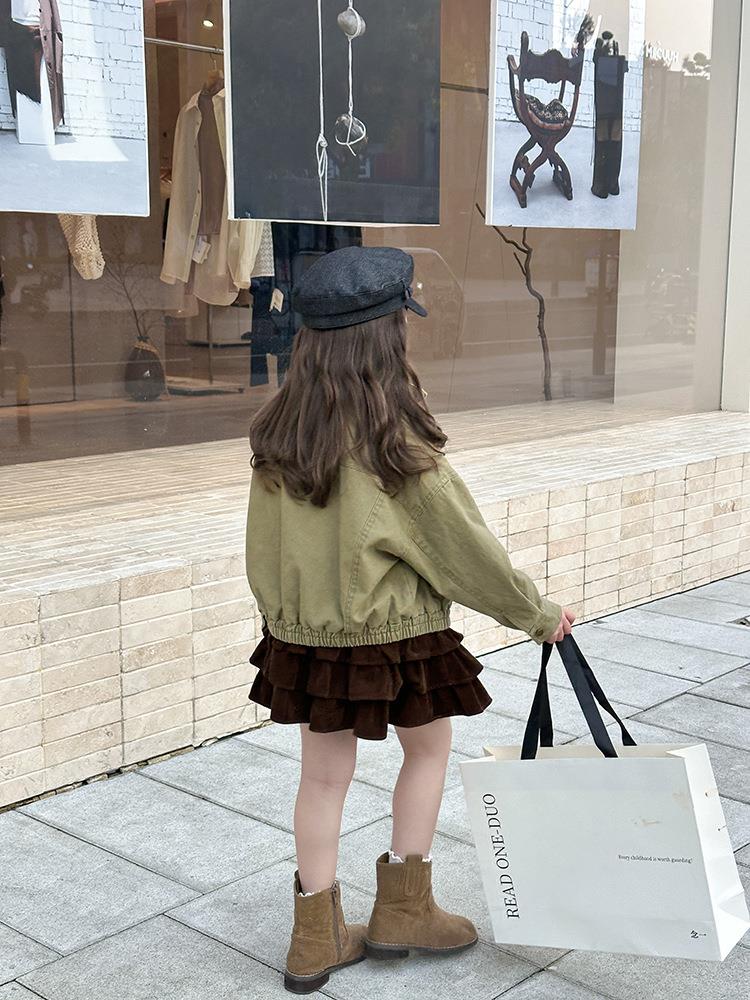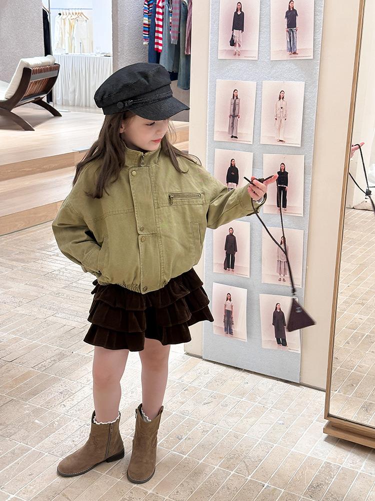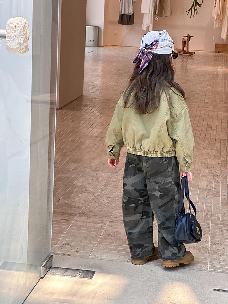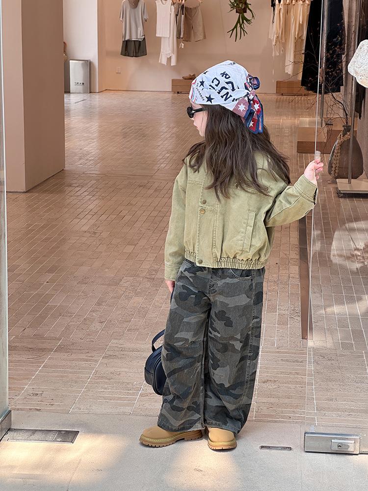 艾摩贝贝女童韩版帅气工装机车夹克上衣儿童品质水洗棉短款外套