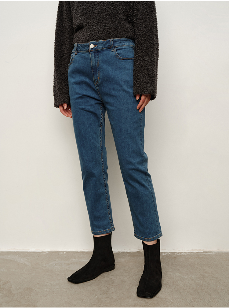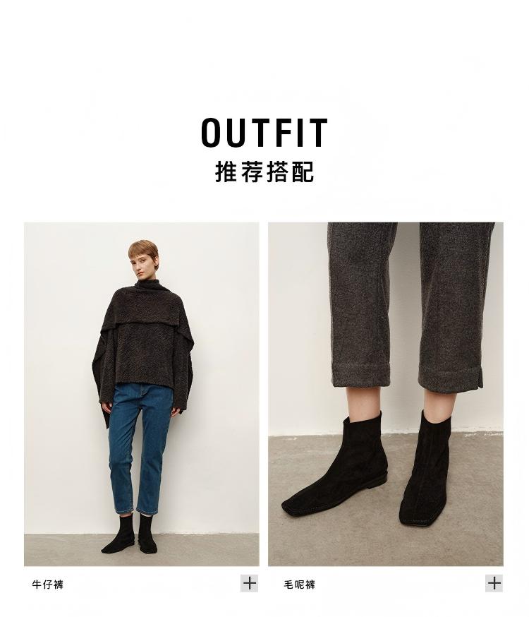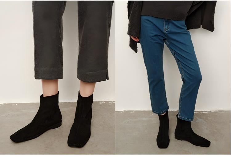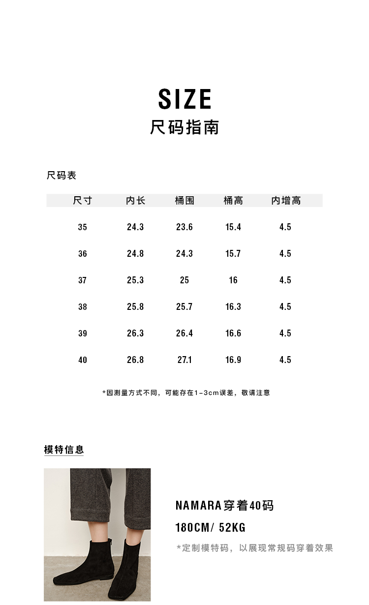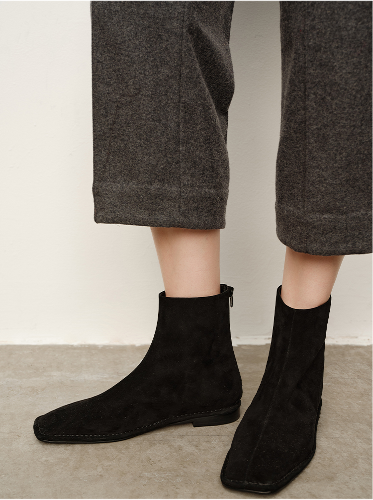 HIDEMI 进口羊麂皮方头内增高短靴裸靴 黑色