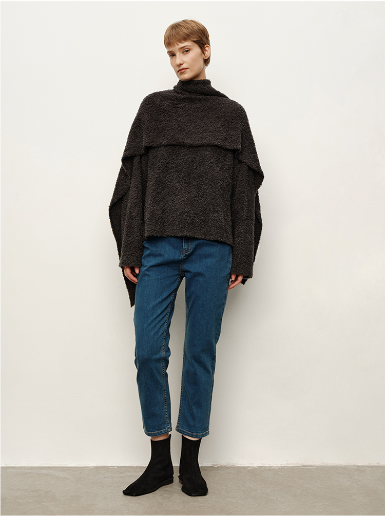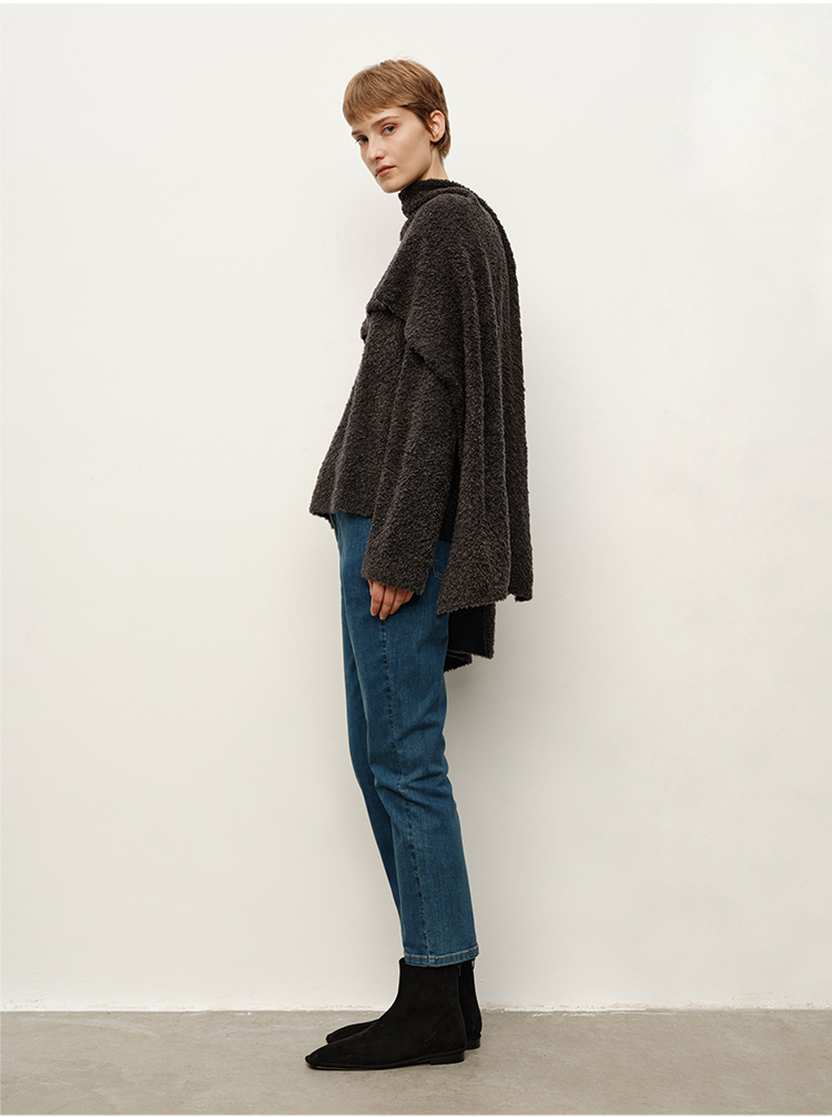 HIDEMI黑色简约大口袋设计感半身A字长裙