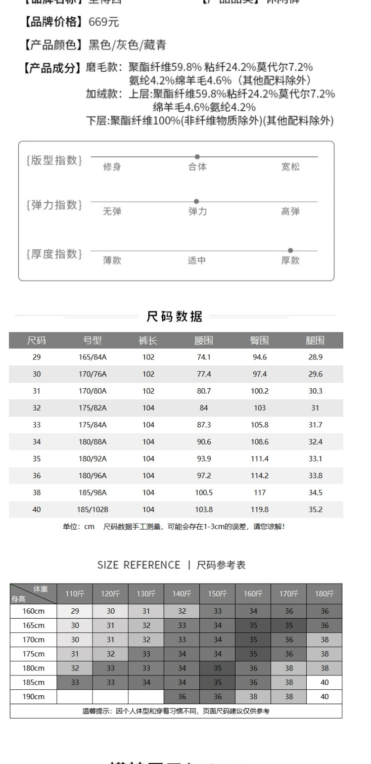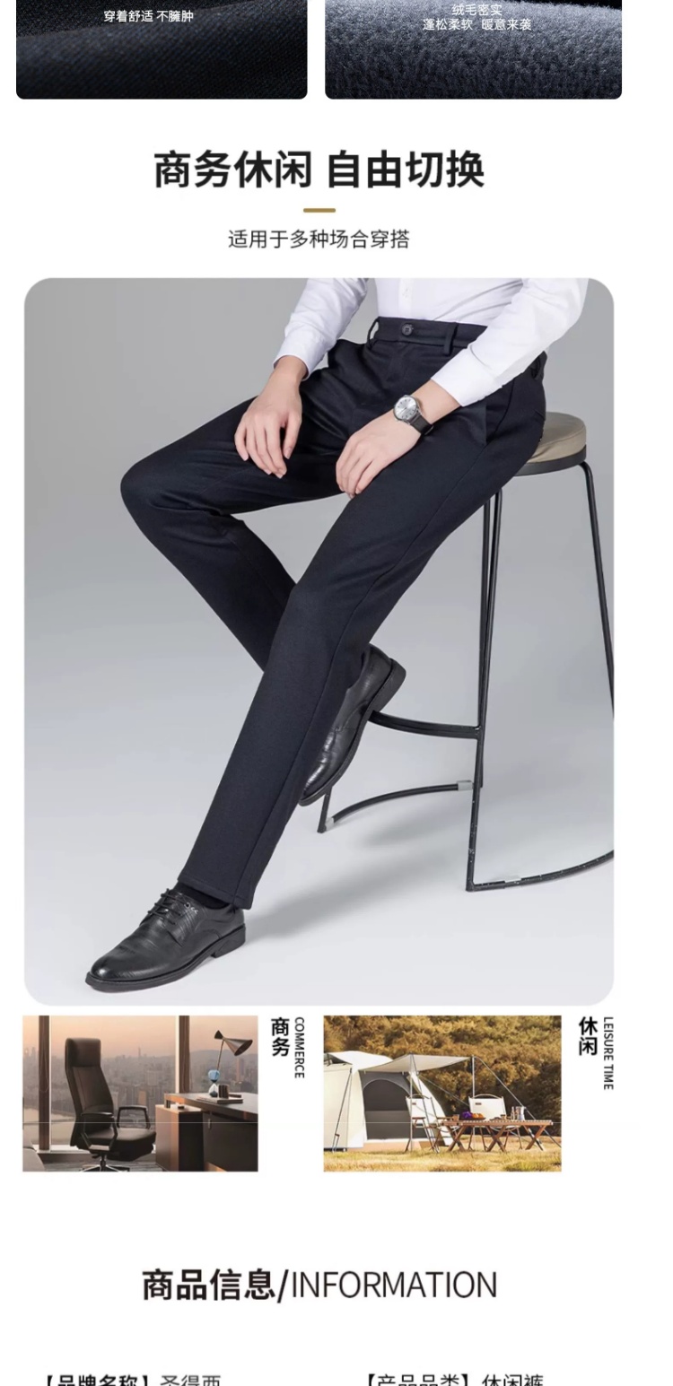 【含绵羊毛&磨毛加厚】圣得西商务休闲裤秋冬弹力长裤子
