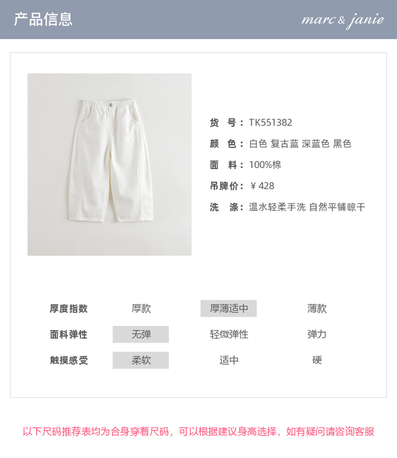 马克珍妮男女童挺括有型牛仔弯刀裤儿童裤子2025年秋装新品551382