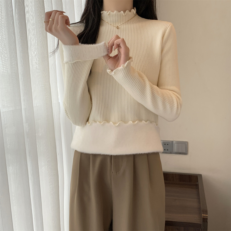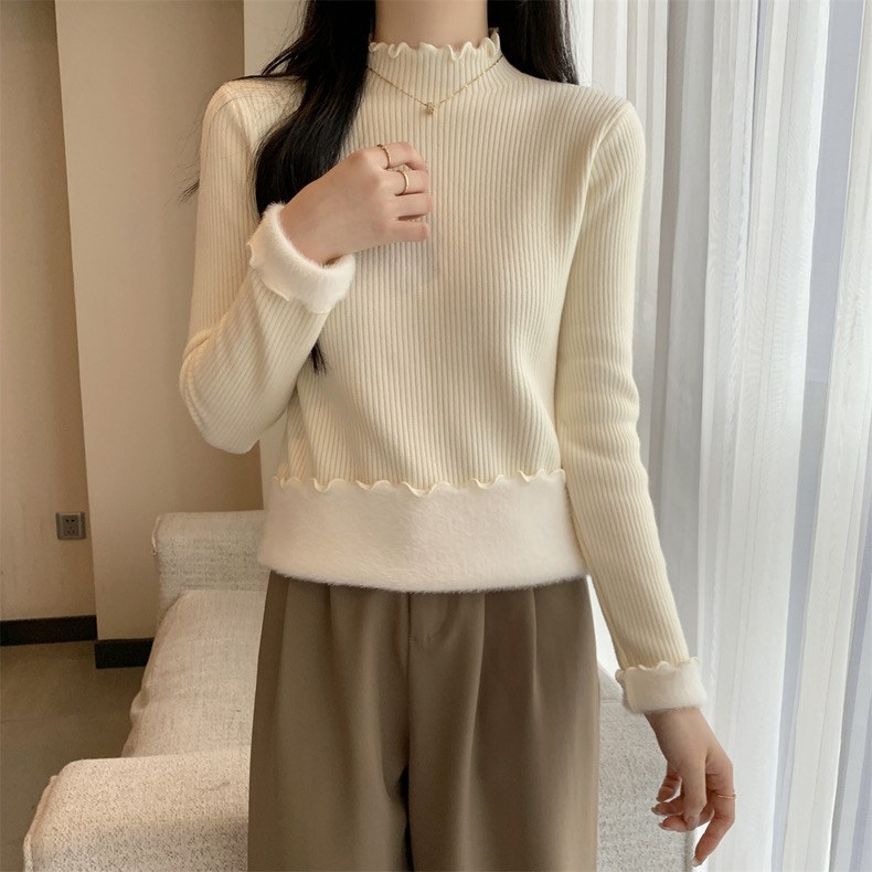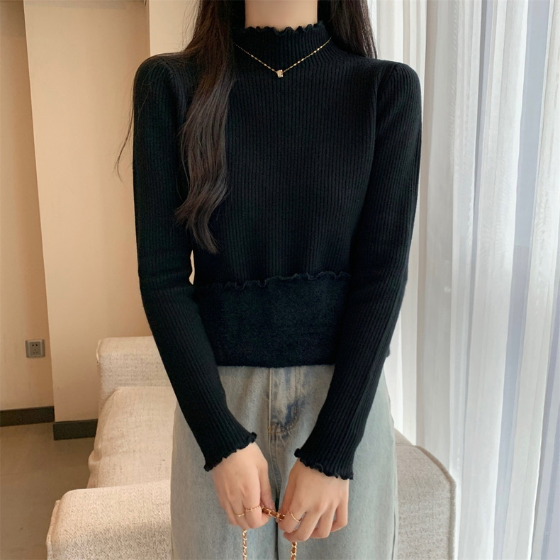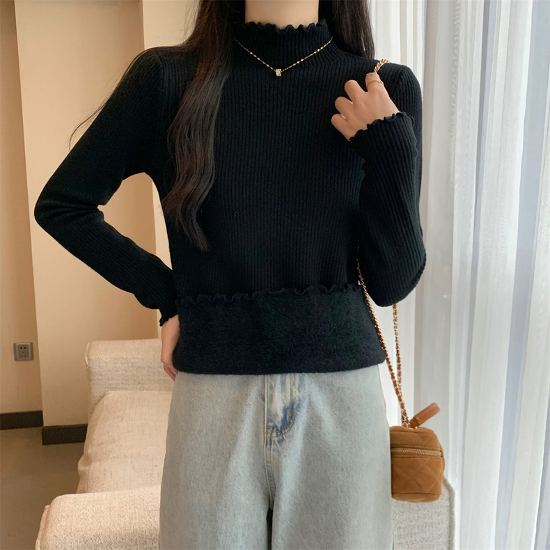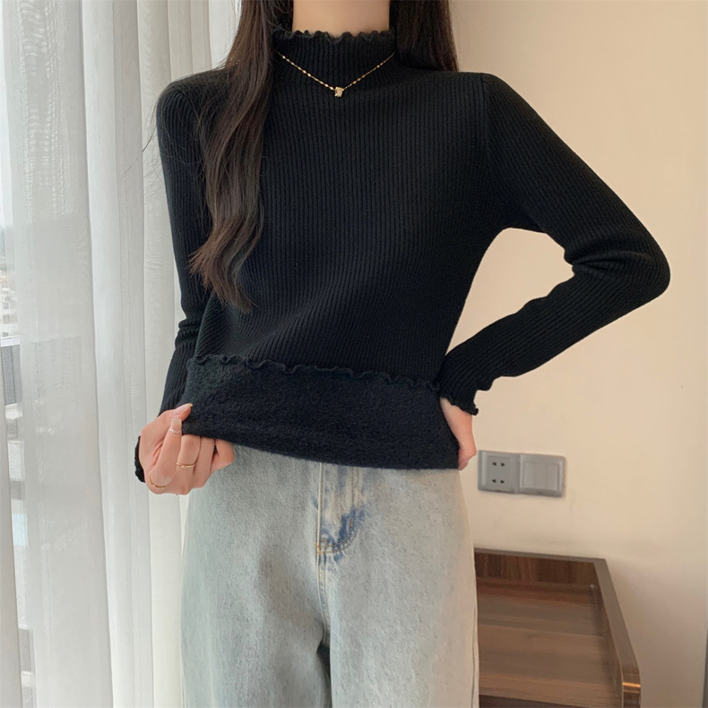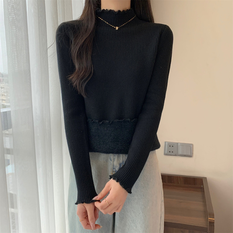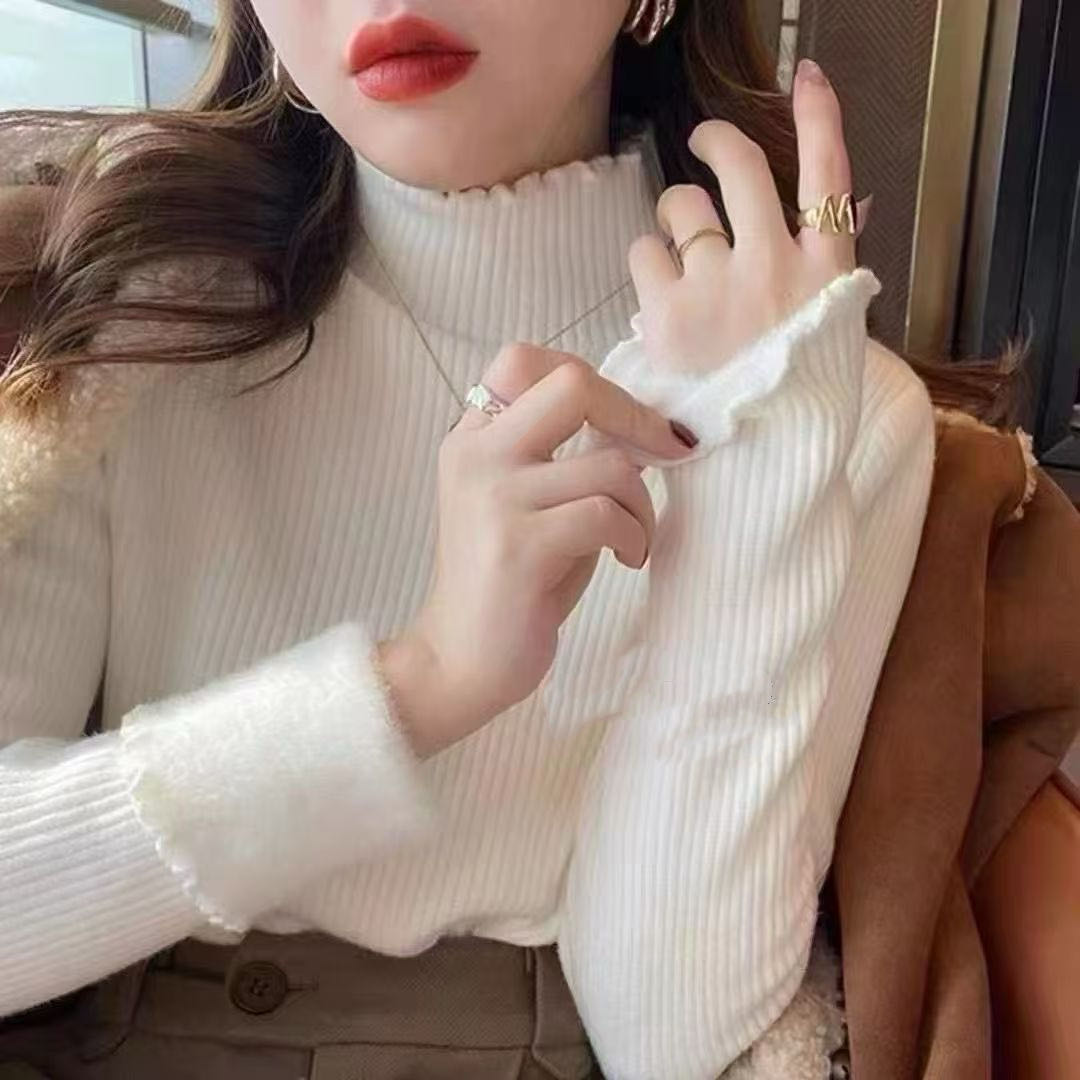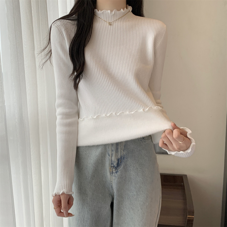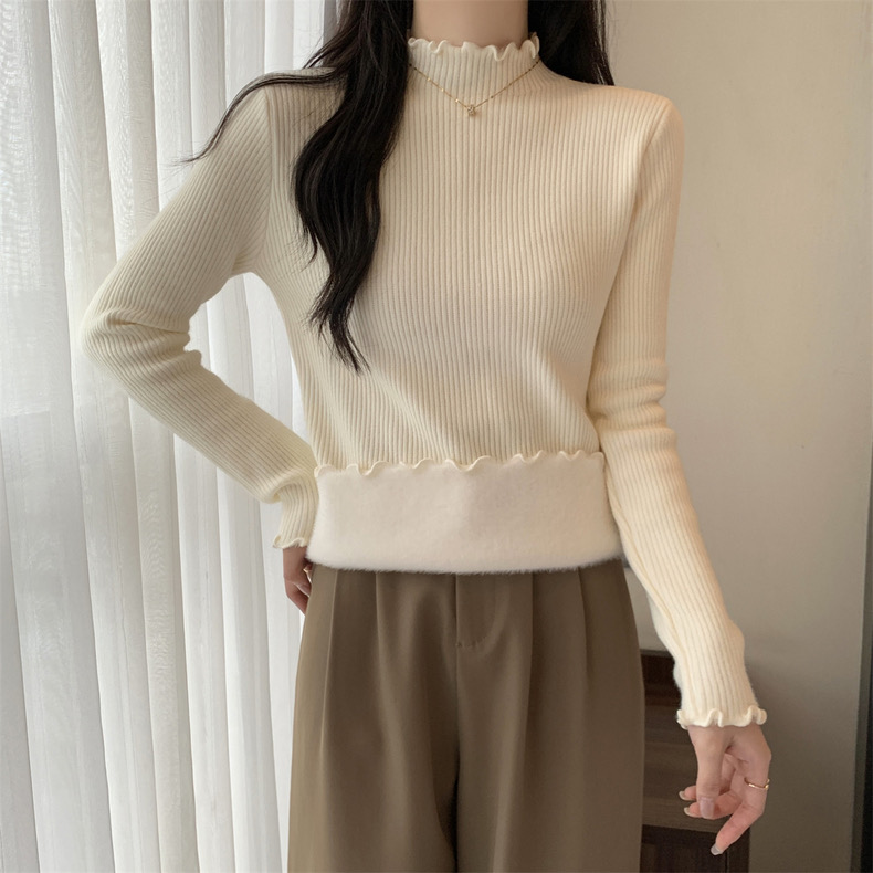 【GZ】无忧购法式木耳边半高领一体绒修身保暖针织打毛衣3340(截单后3-5天发货)