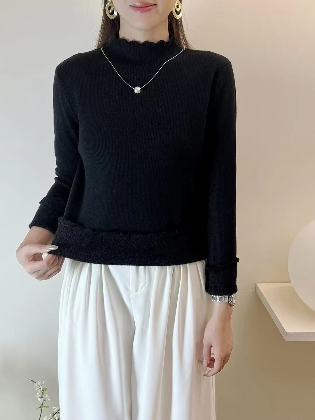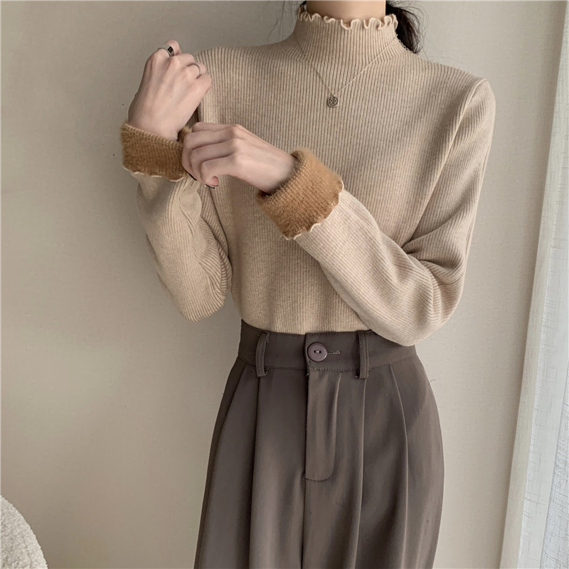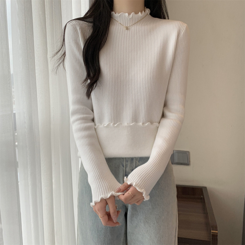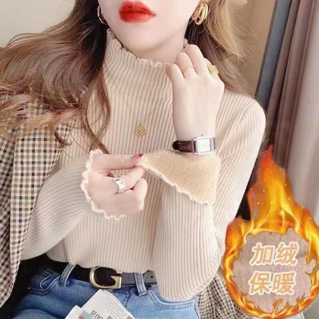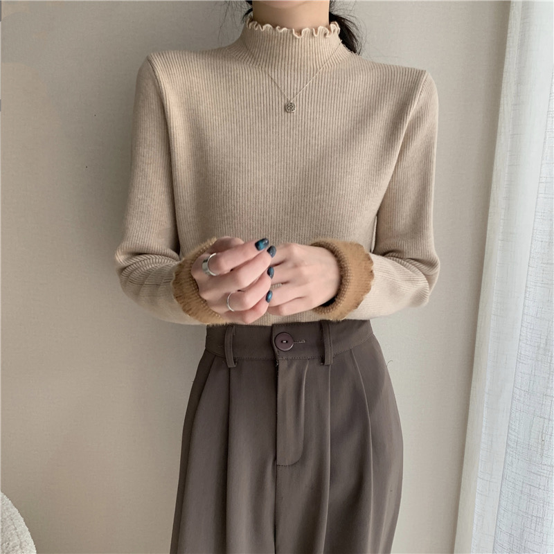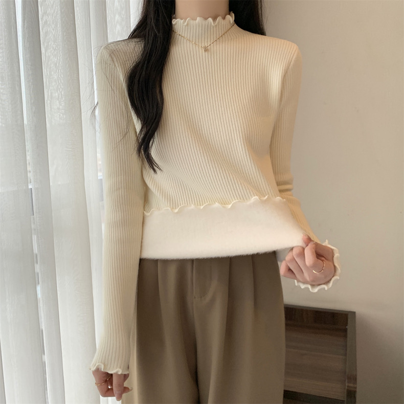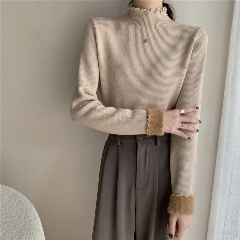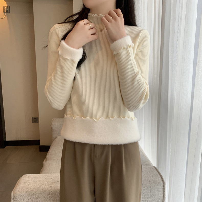 【GZ】无忧购法式木耳边半高领一体绒修身保暖针织打毛衣3340(截单后3-5天发货)