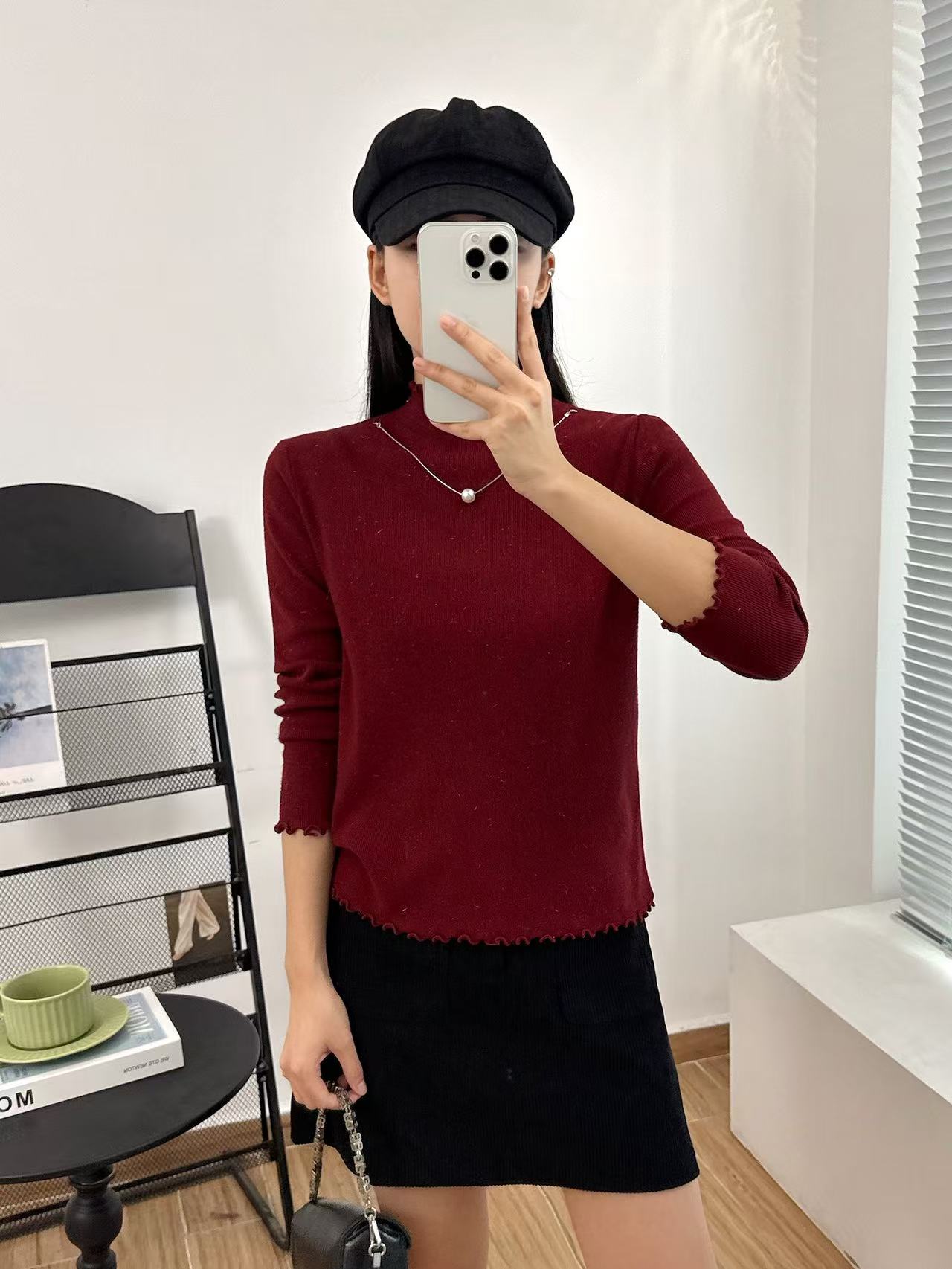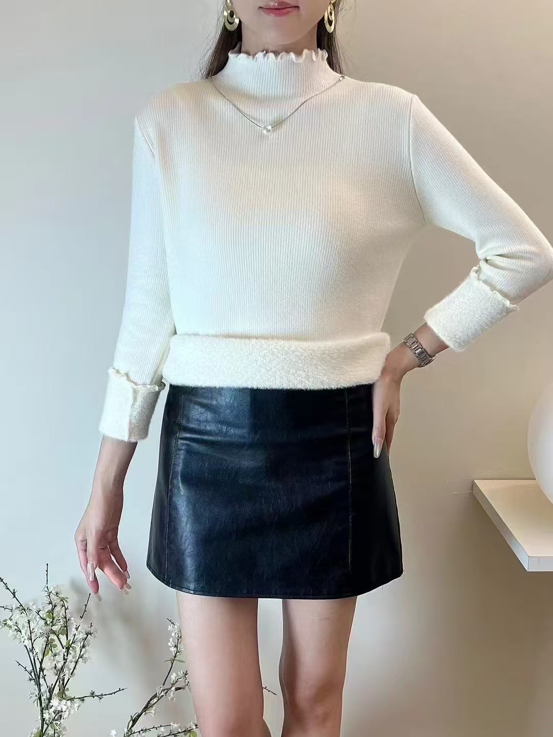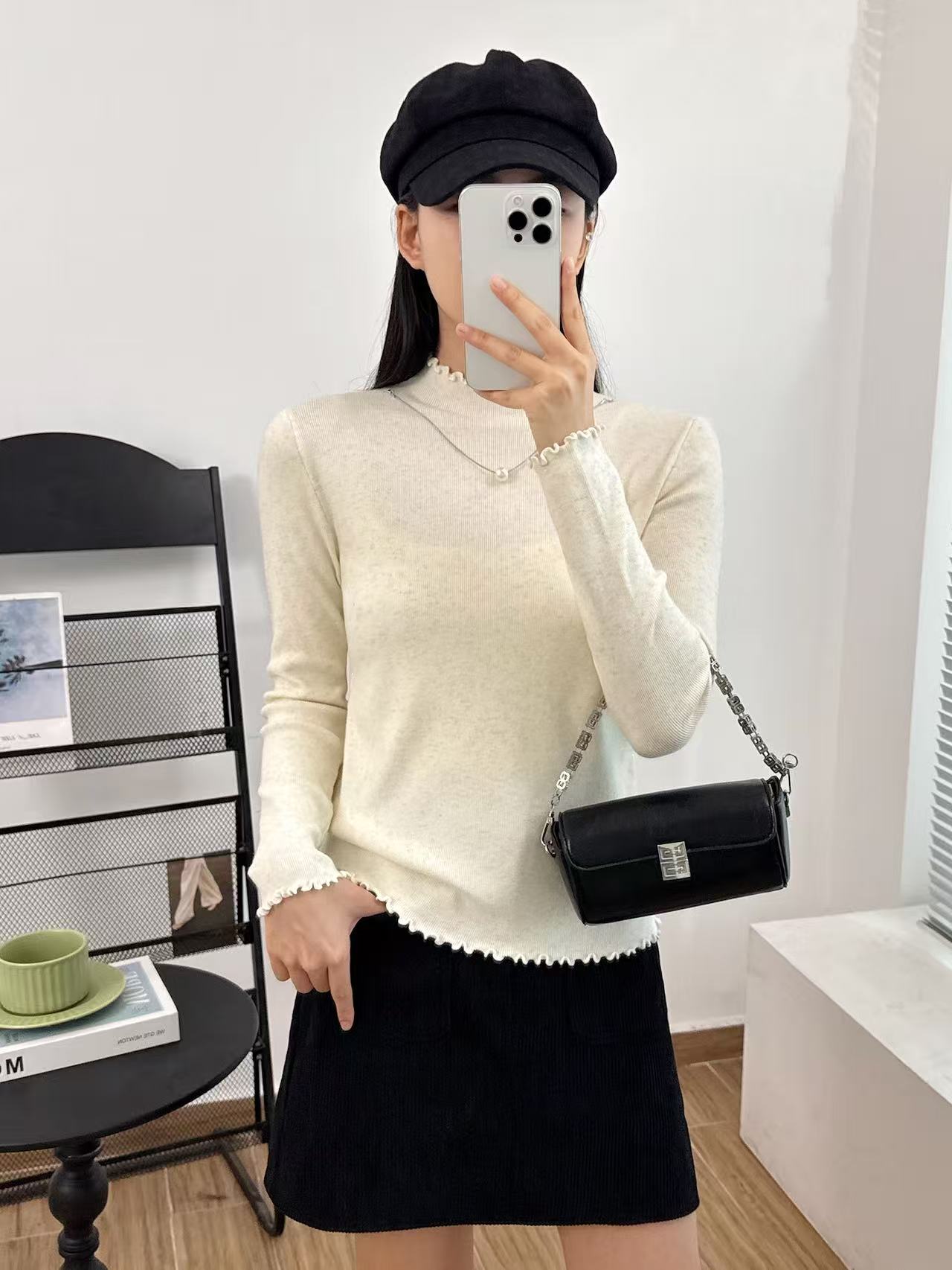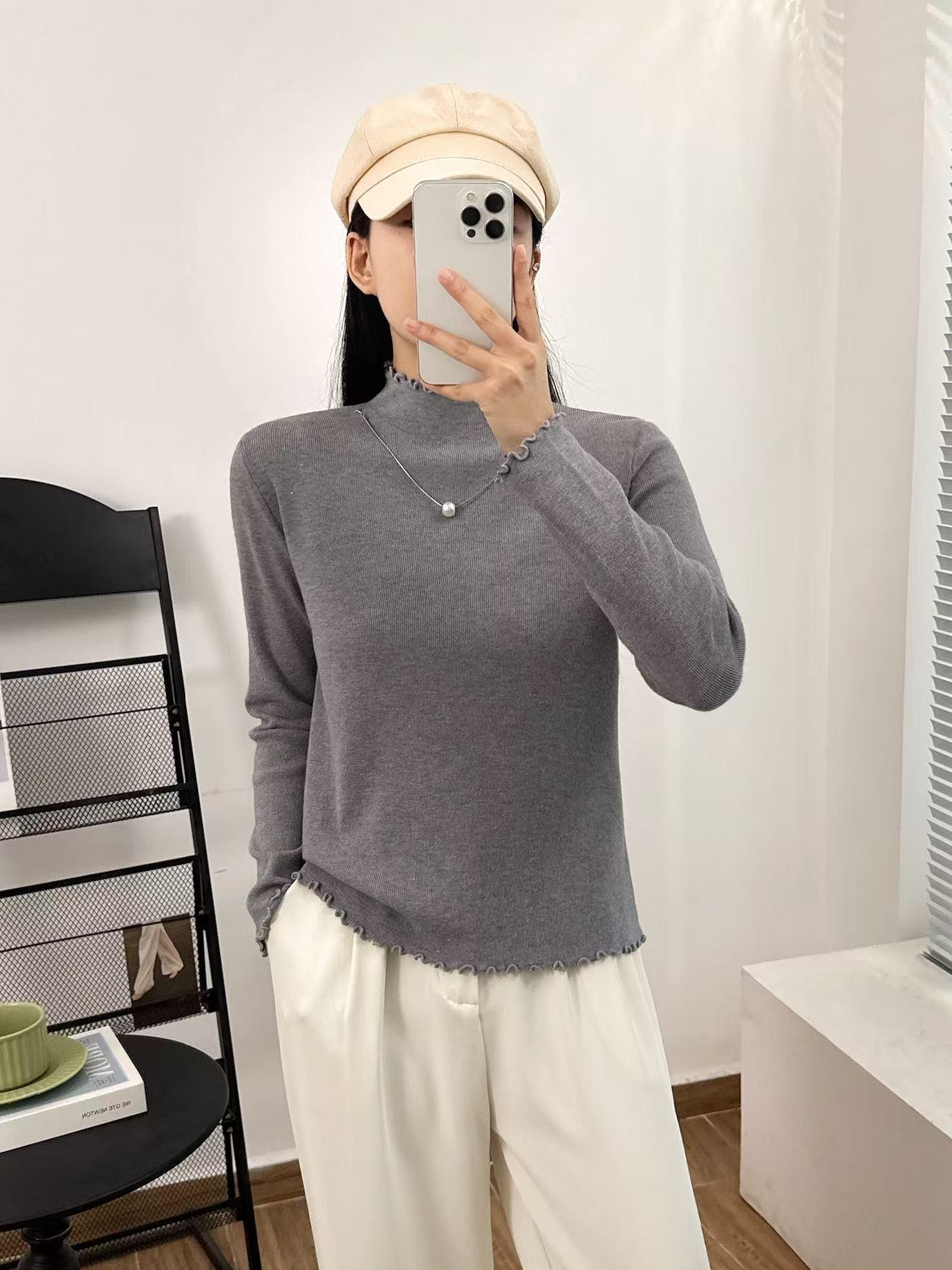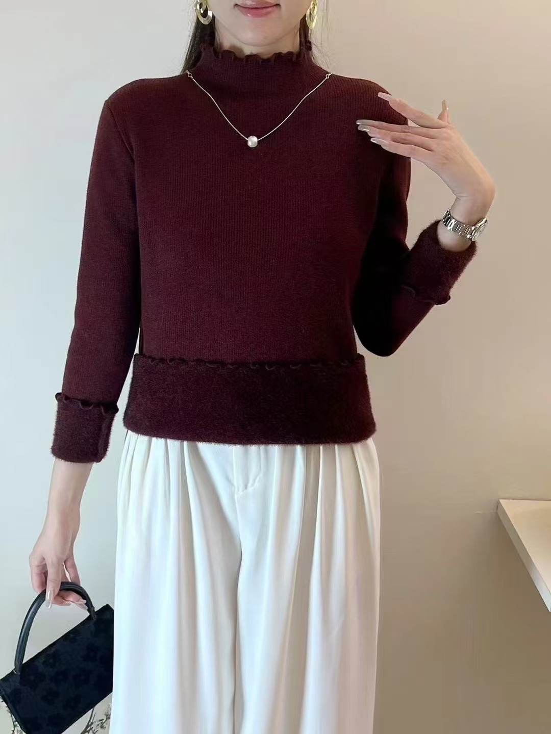 【GZ】无忧购法式木耳边半高领一体绒修身保暖针织打毛衣3340(截单后3-5天发货)