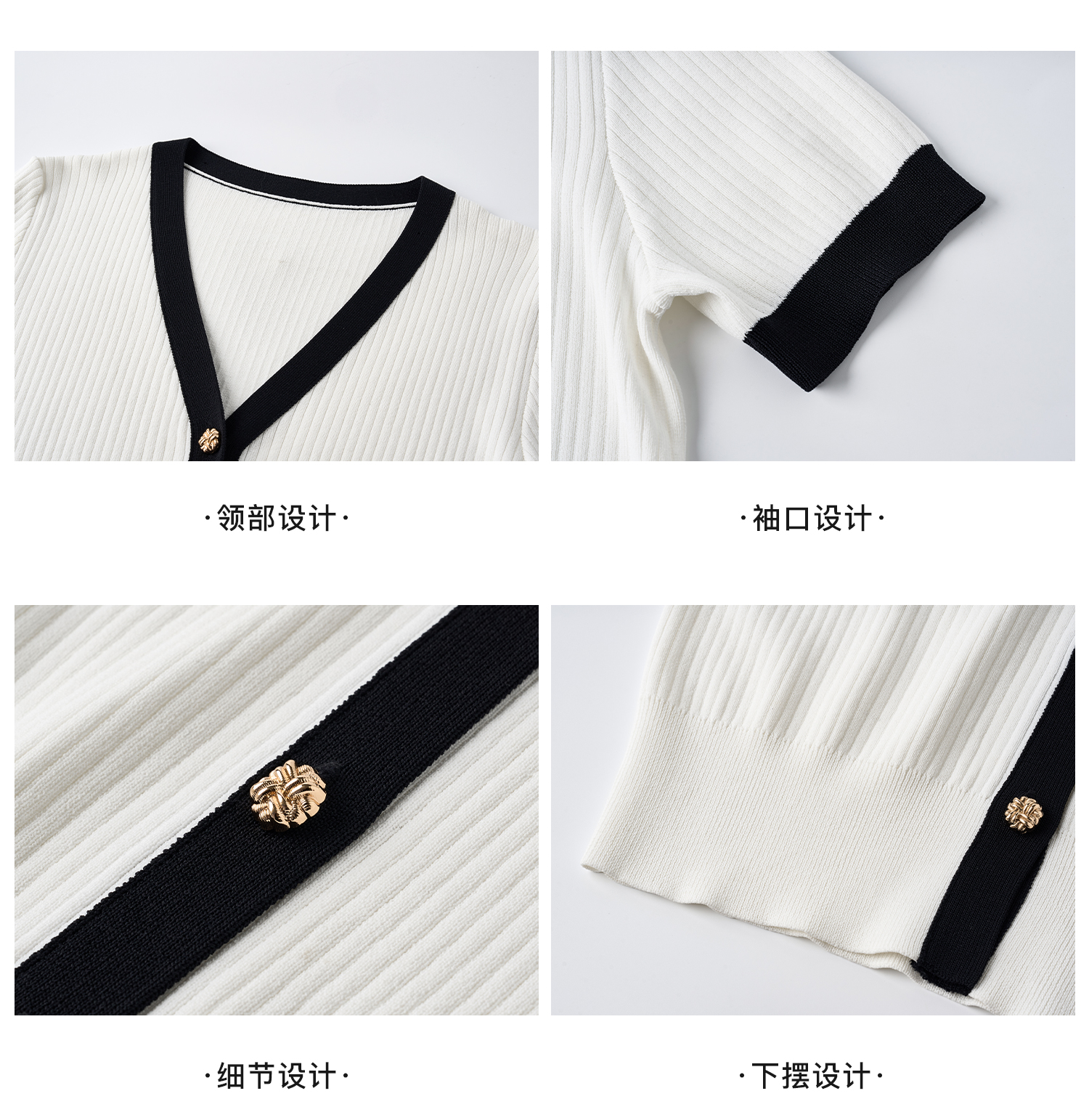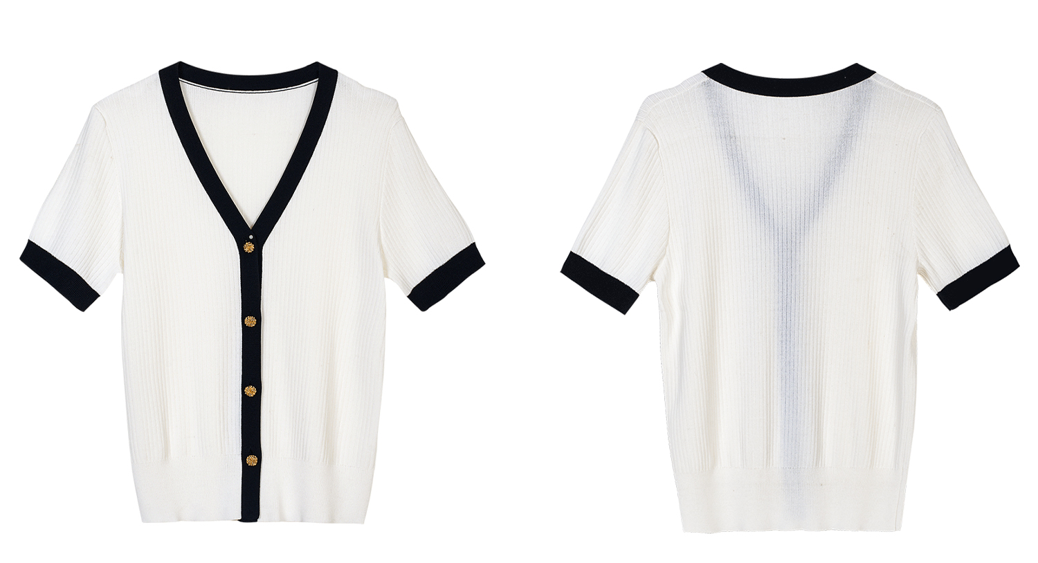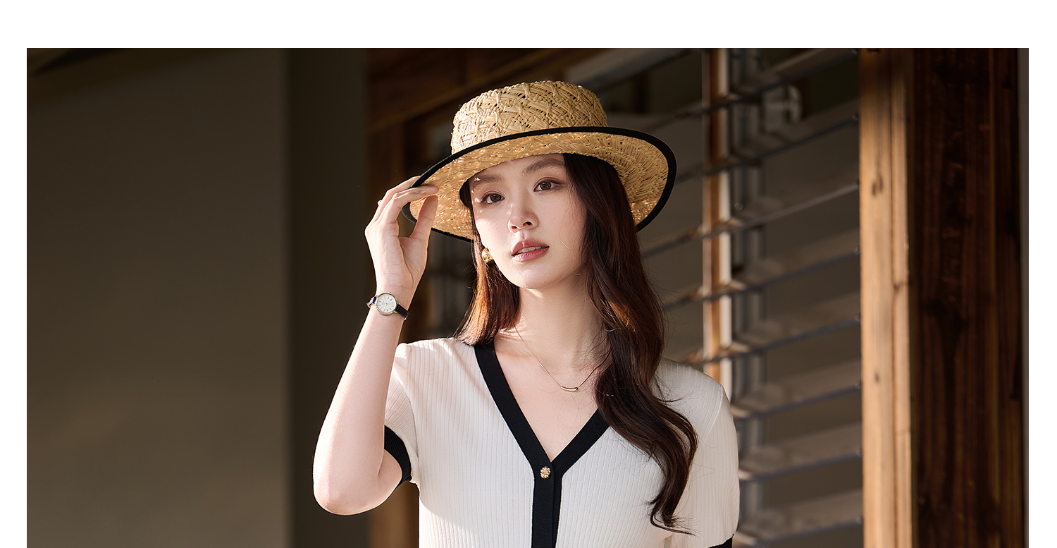 米思阳2026春夏新款撞色V领小香针织开衫女夏季复古短袖针织衫T恤女6076