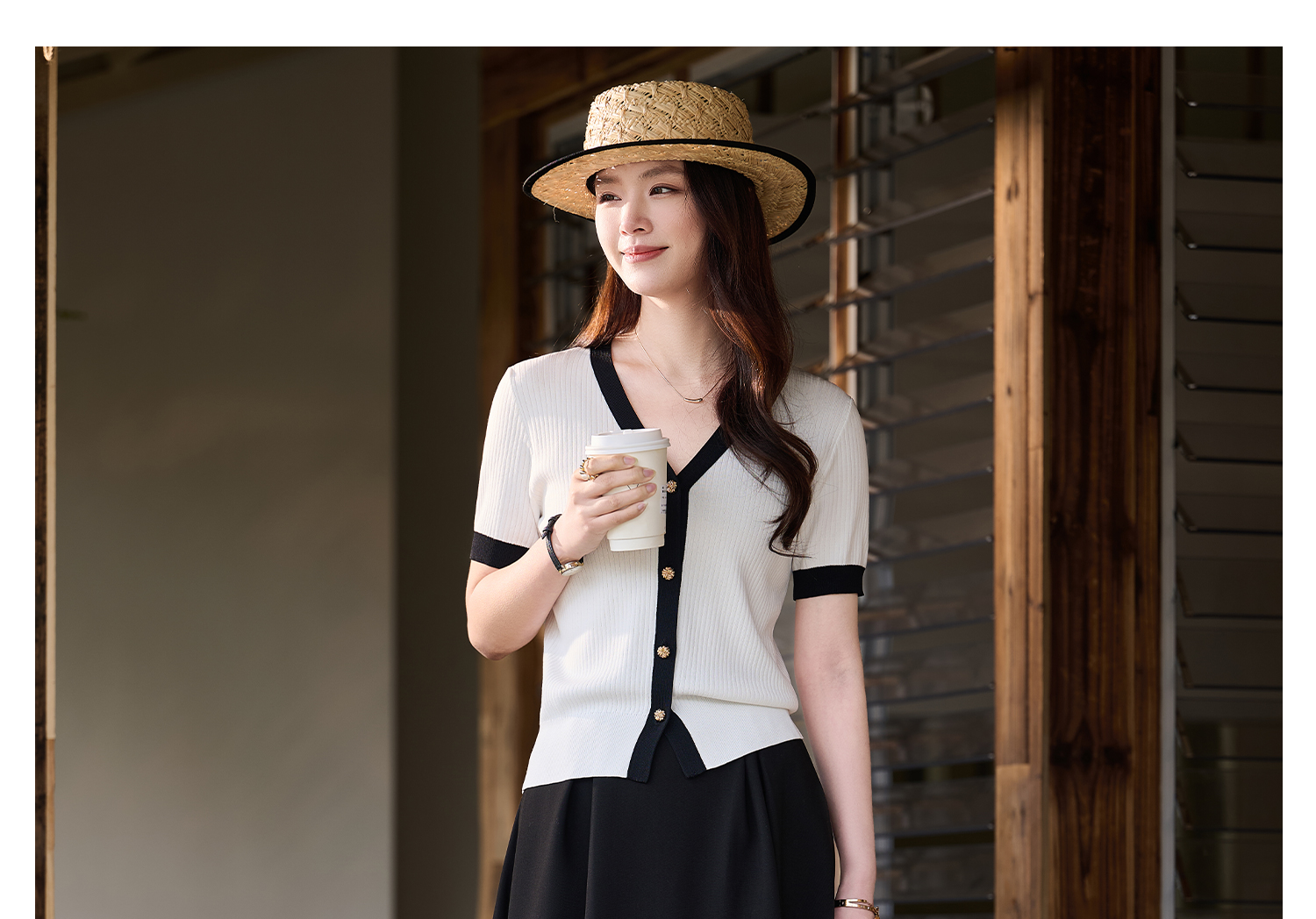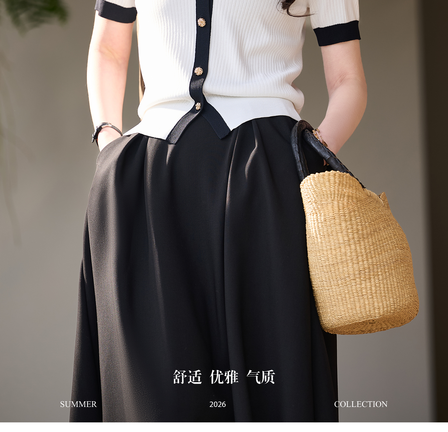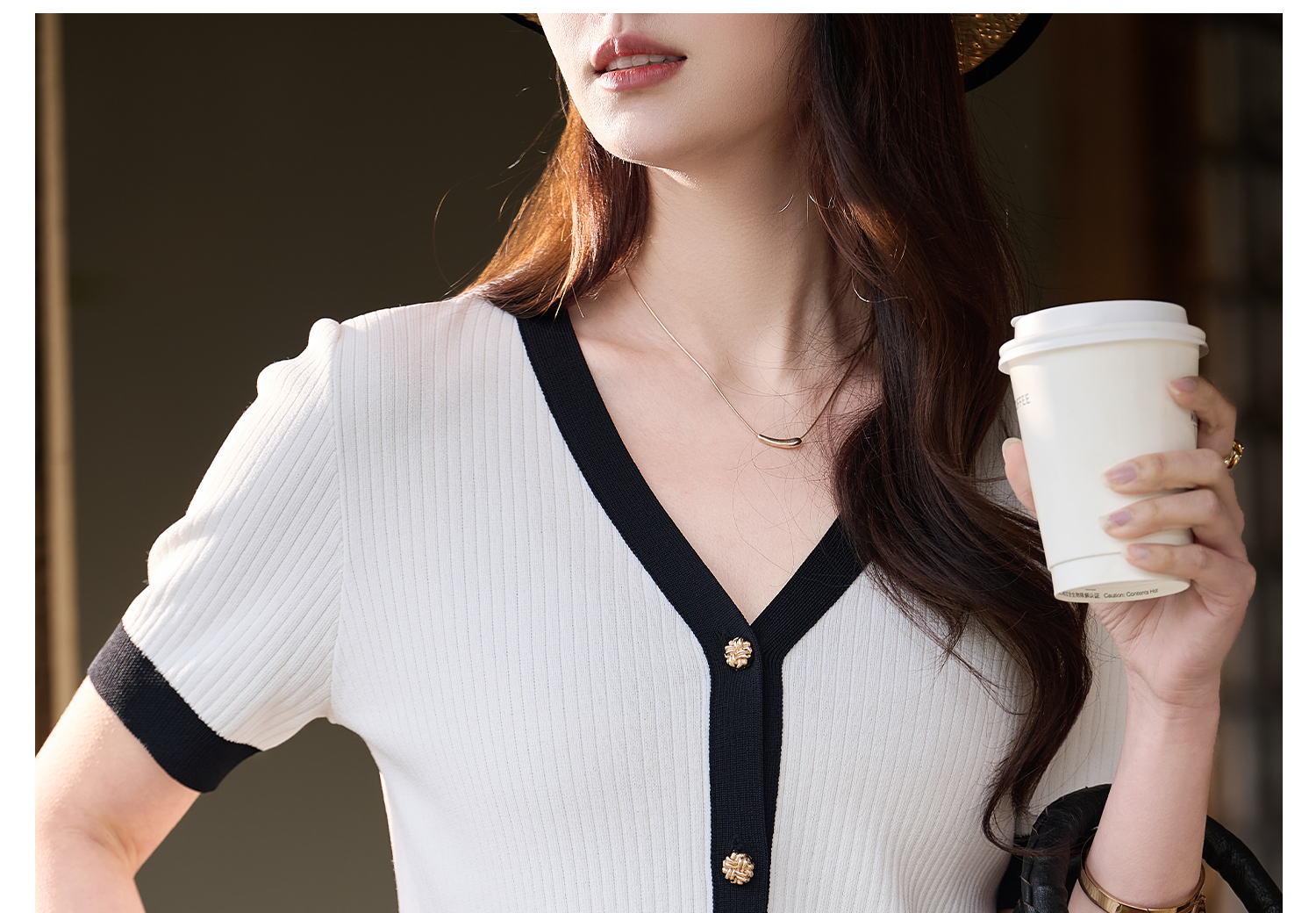 米思阳2026春夏新款撞色V领小香针织开衫女夏季复古短袖针织衫T恤女6076