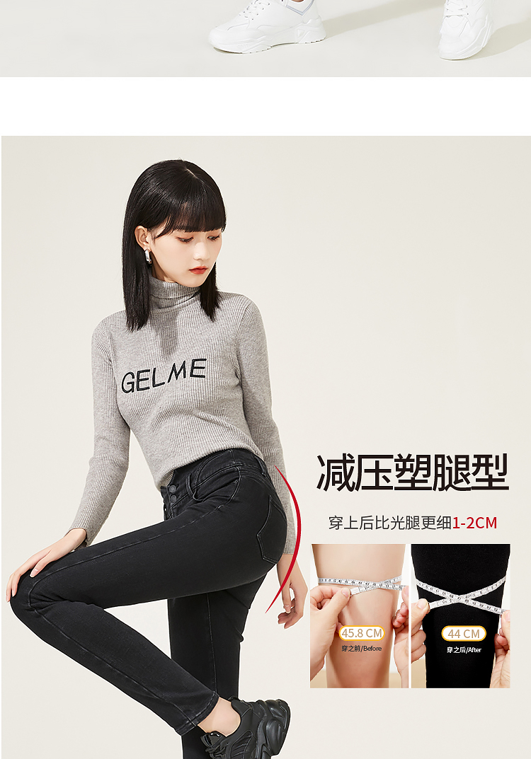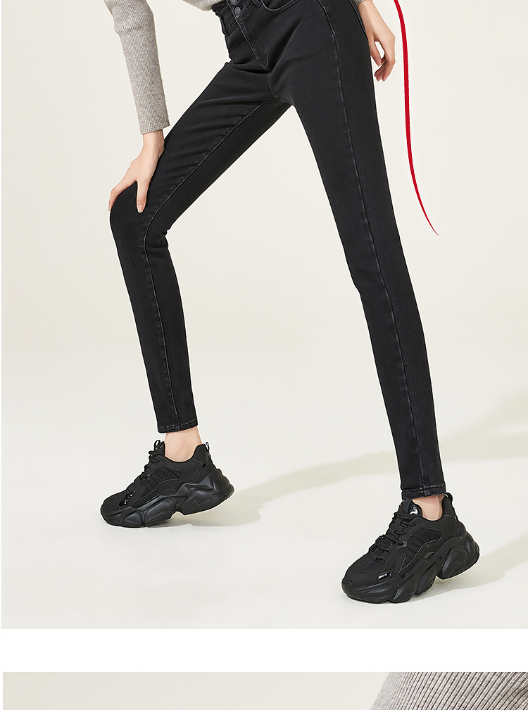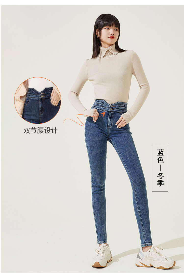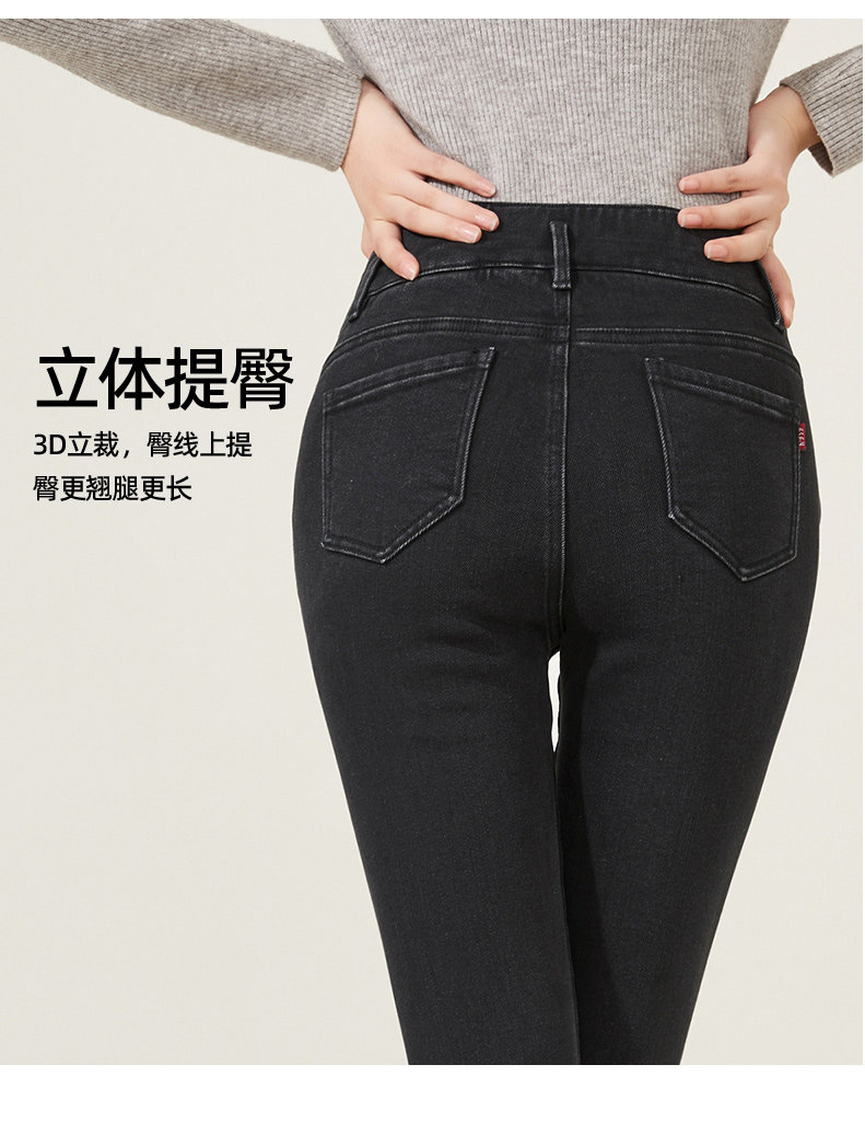 逸阳高腰牛仔裤女2023年冬季紧身显瘦烟灰色修身小脚铅笔裤4512R