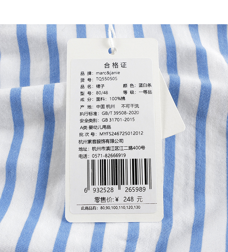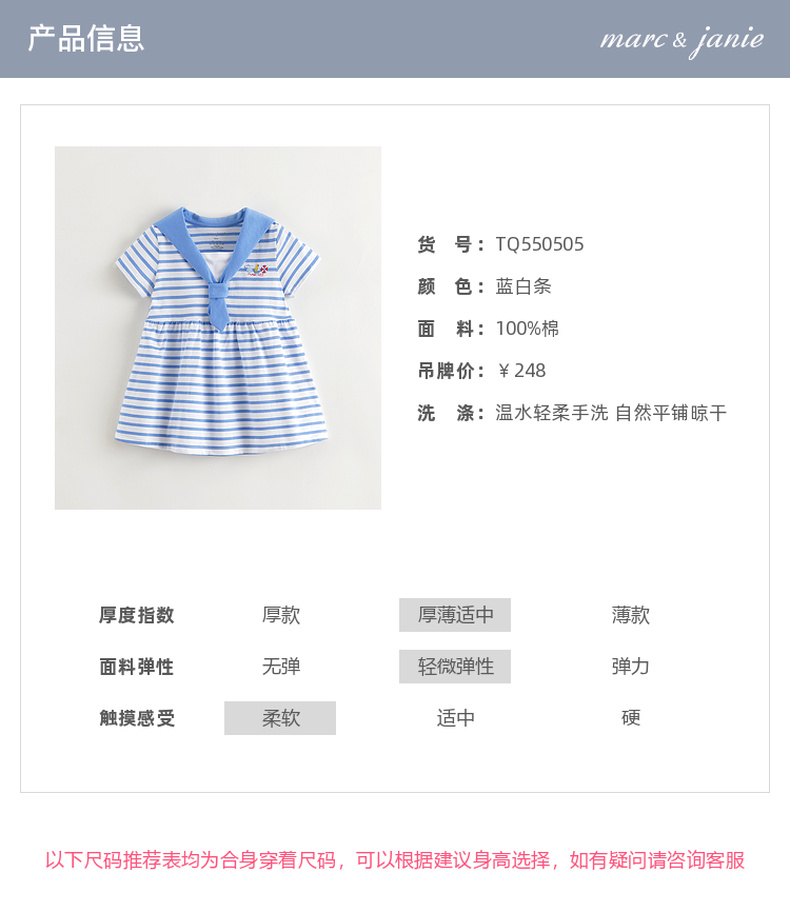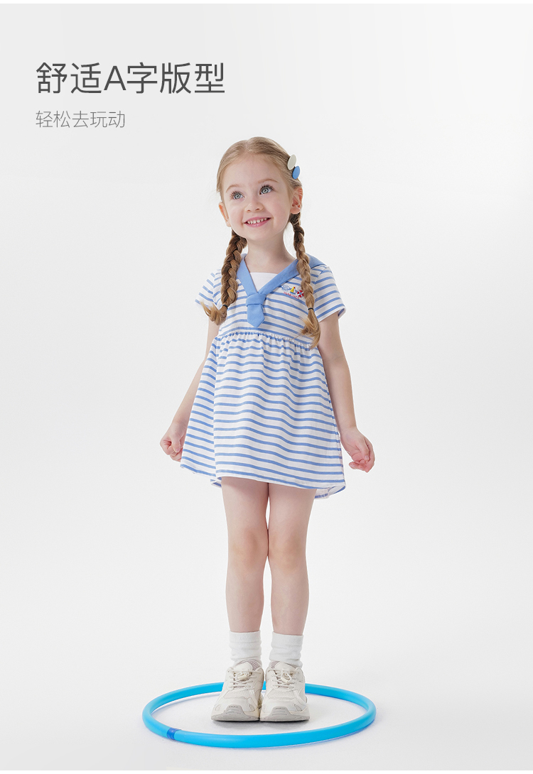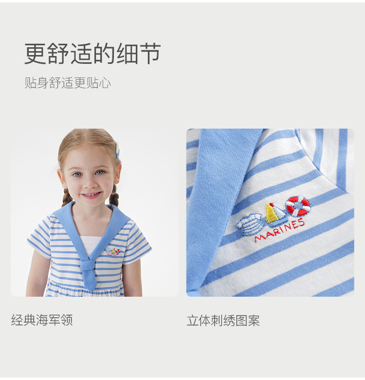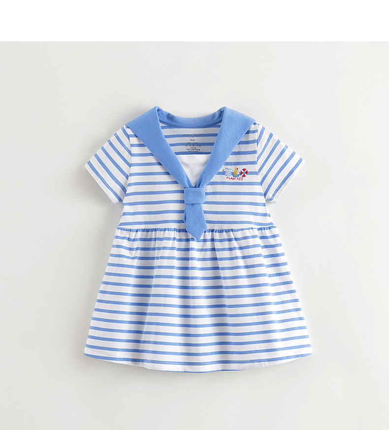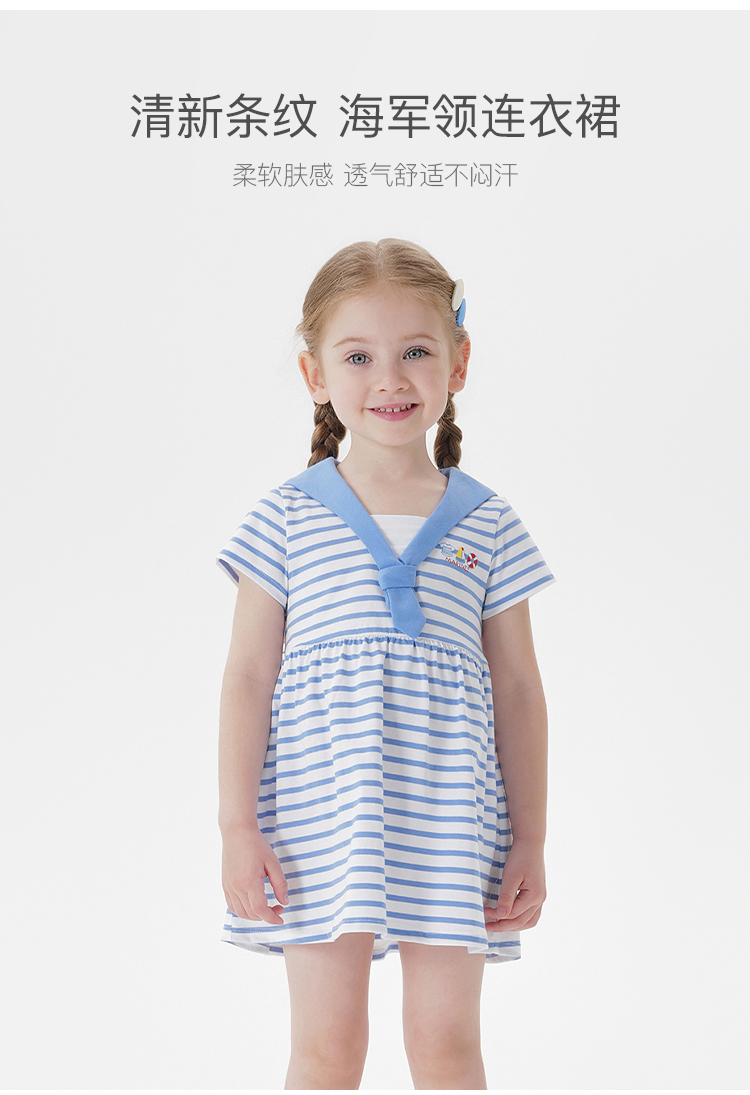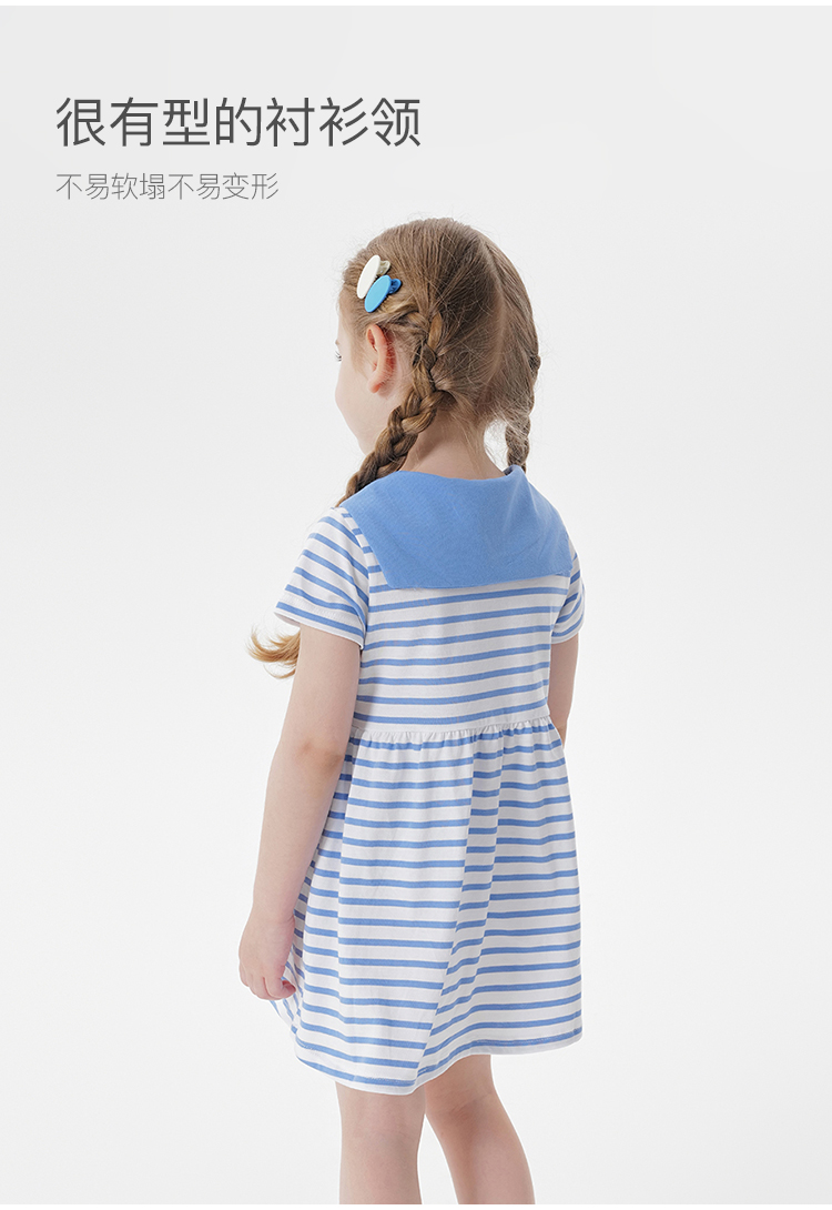 马克珍妮女童海军领条纹短袖连衣裙 儿童裙子宝宝夏装新款550505