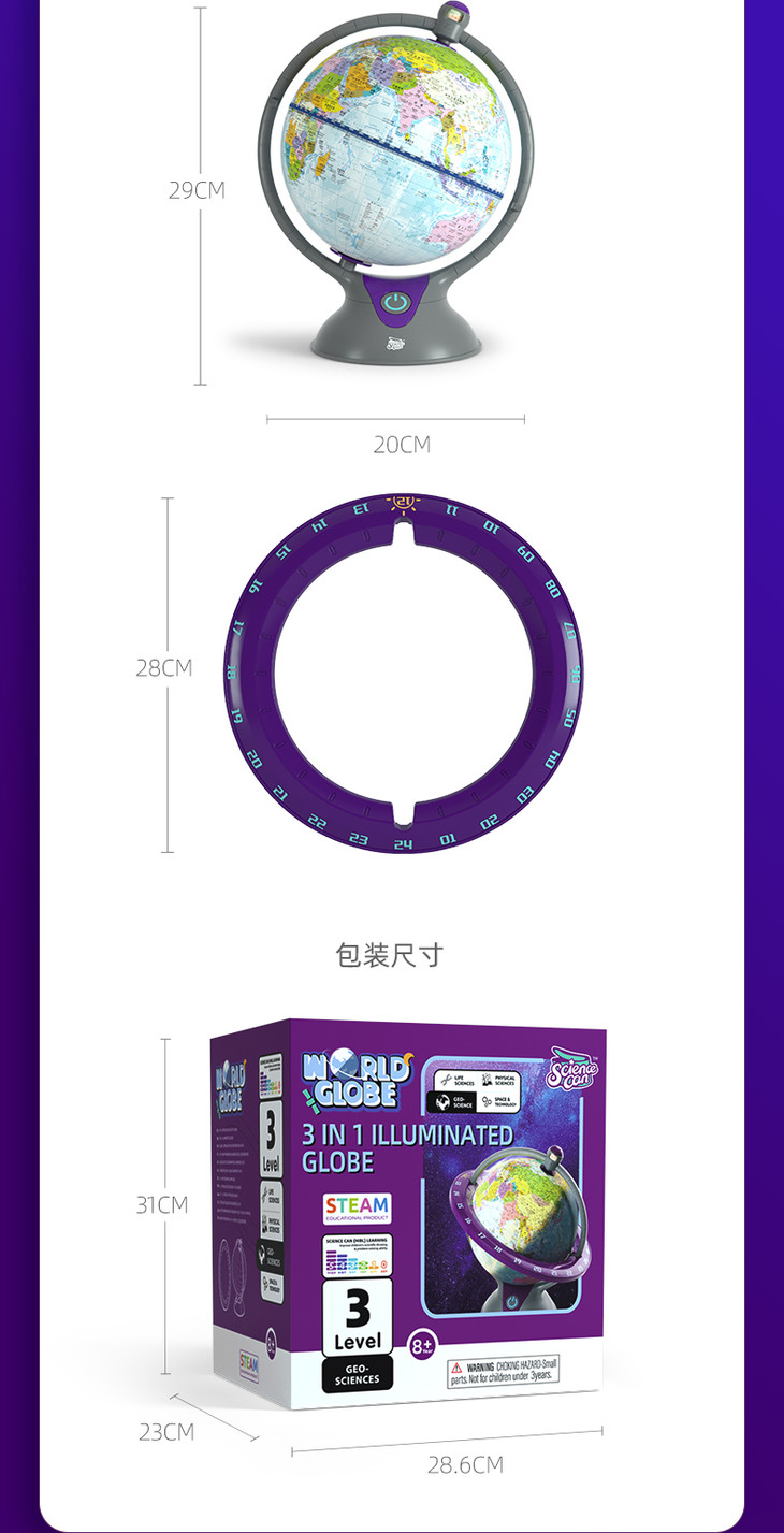 【发光地球仪,满足孩子的探索欲】Science can科学罐头地球仪3合1高清发光世界AR地球仪儿童中小学生用地理摆件灯20cm大号悬浮3D立体幼儿园宝宝益智启蒙早教男女孩玩具初高中教学教具新年礼物