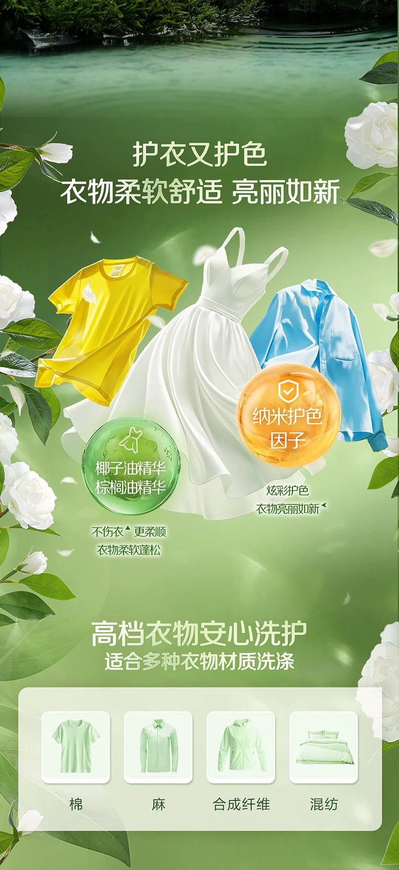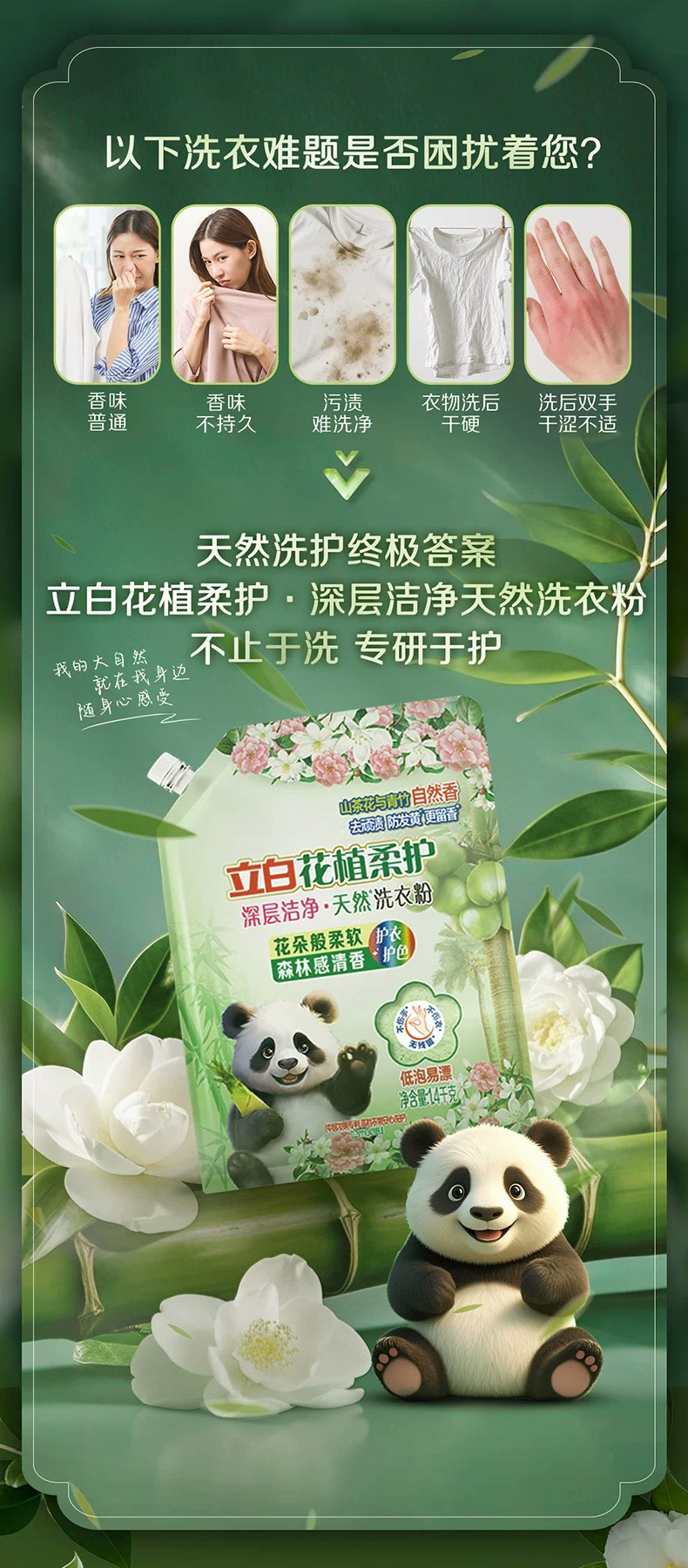 立白花植柔护洗衣液450g*1袋 深层洁净