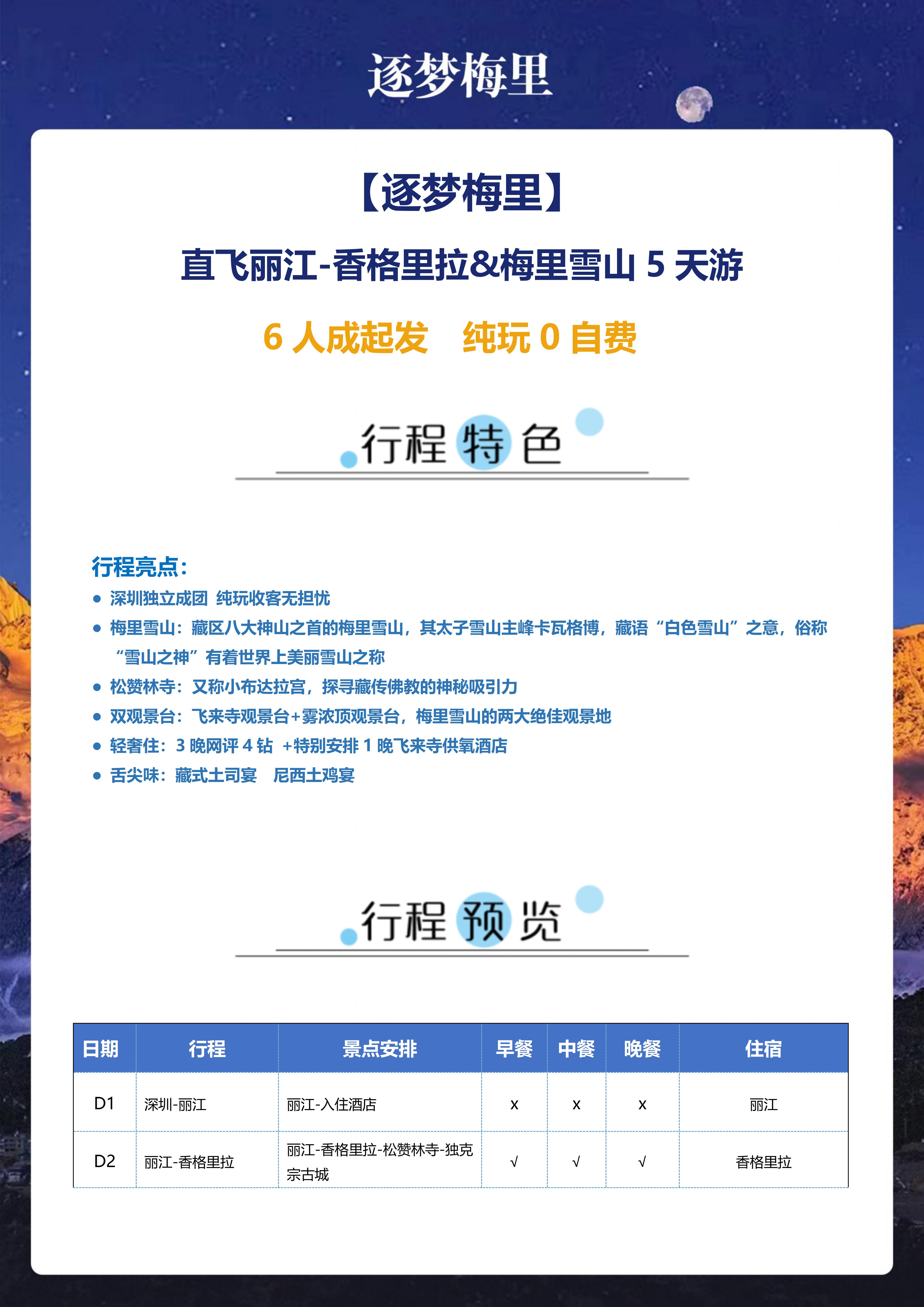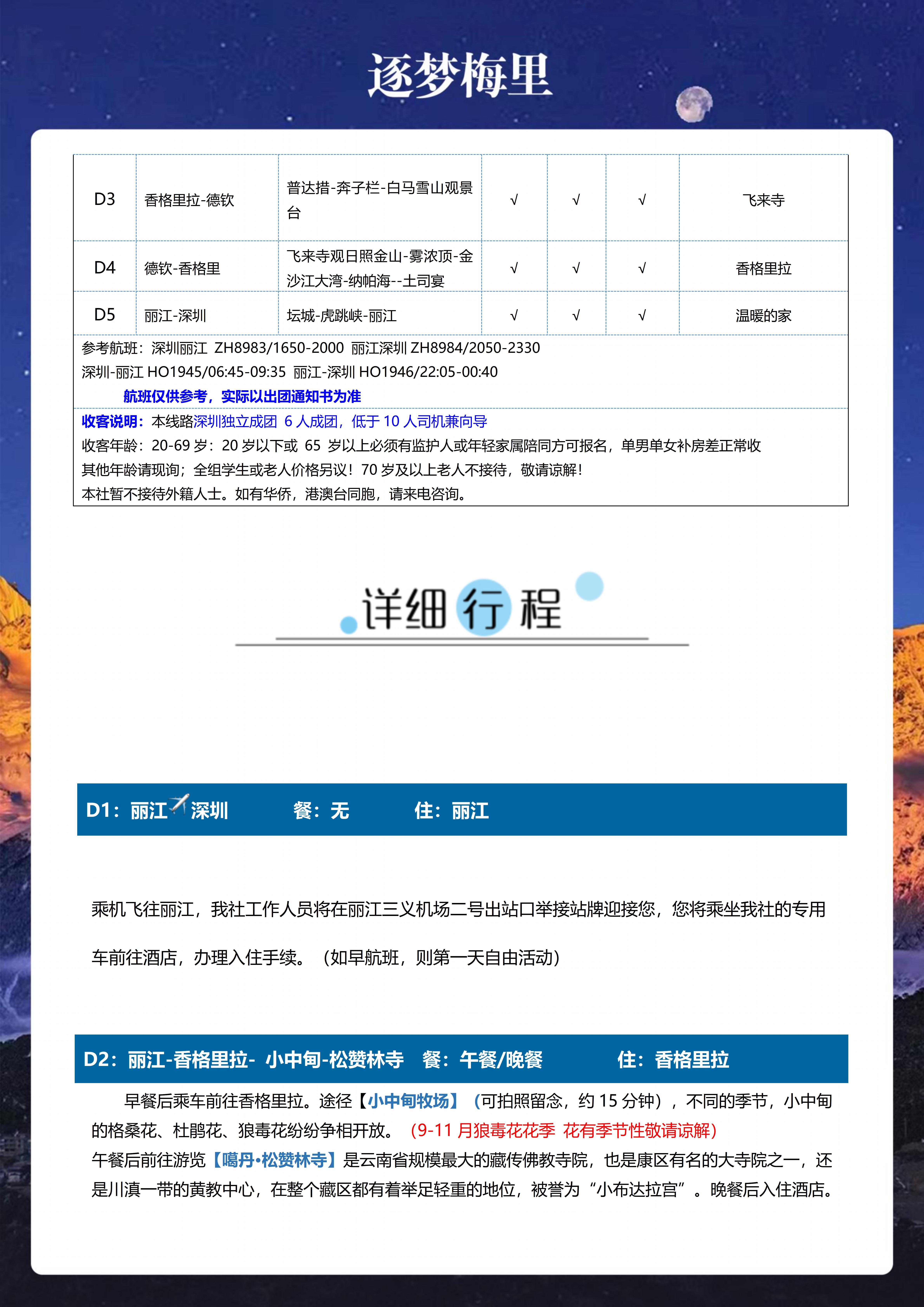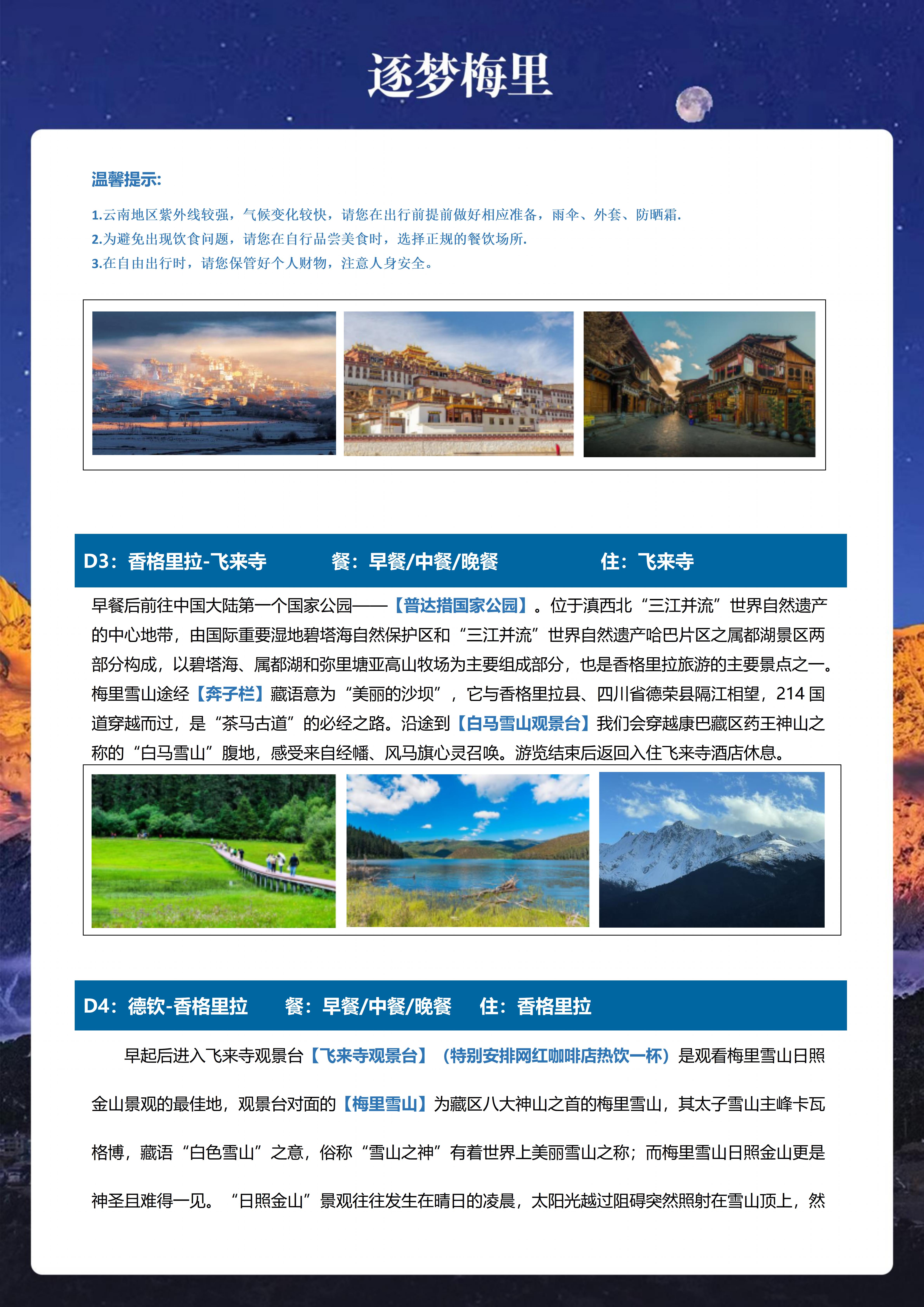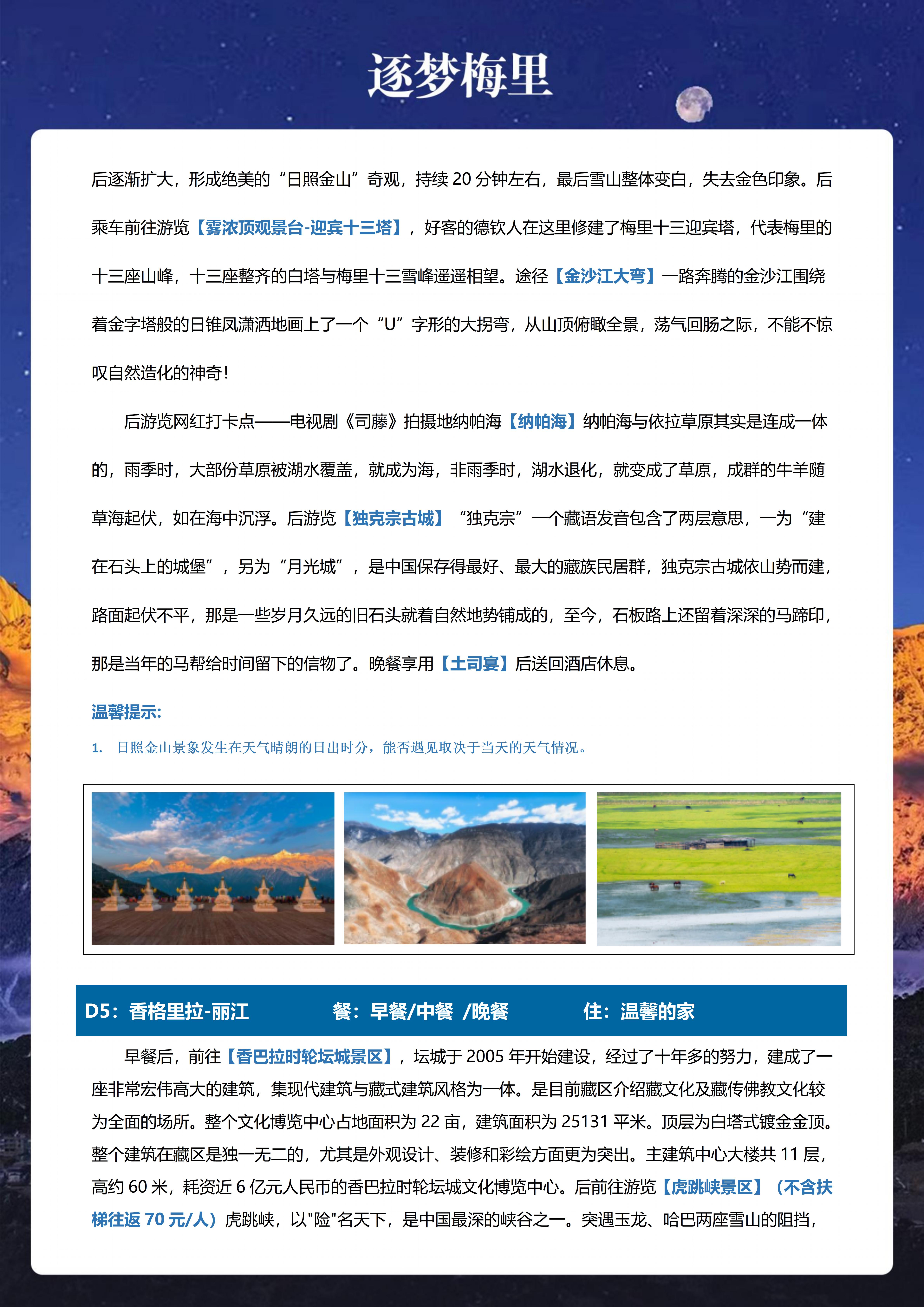 <云南丽江+香格里拉+梅里雪山5天游>松赞林寺、独克宗古城、普达措、奔子栏、白马雪山观景台、飞来寺观日照金山、雾浓顶、金沙江大湾、纳帕海、土司宴、坛城、虎跳峡