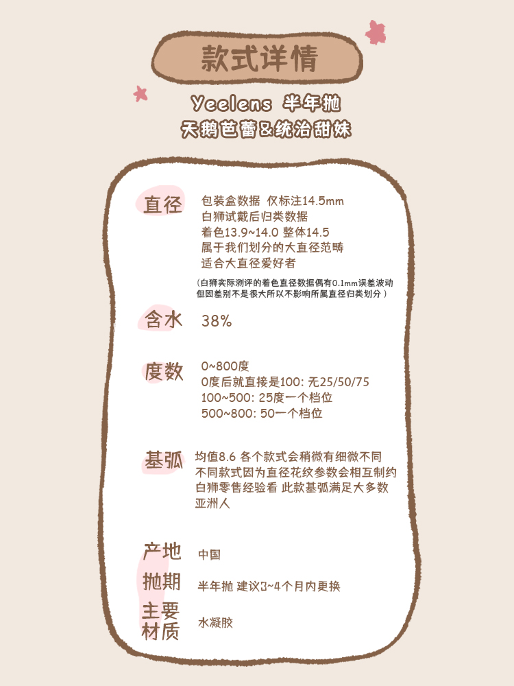 Yeelens旗下 半年抛· H05天鹅芭蕾&H06统治甜妹 14.5mm白狮参考着色大直径 2片