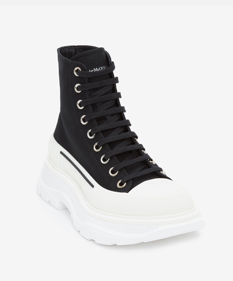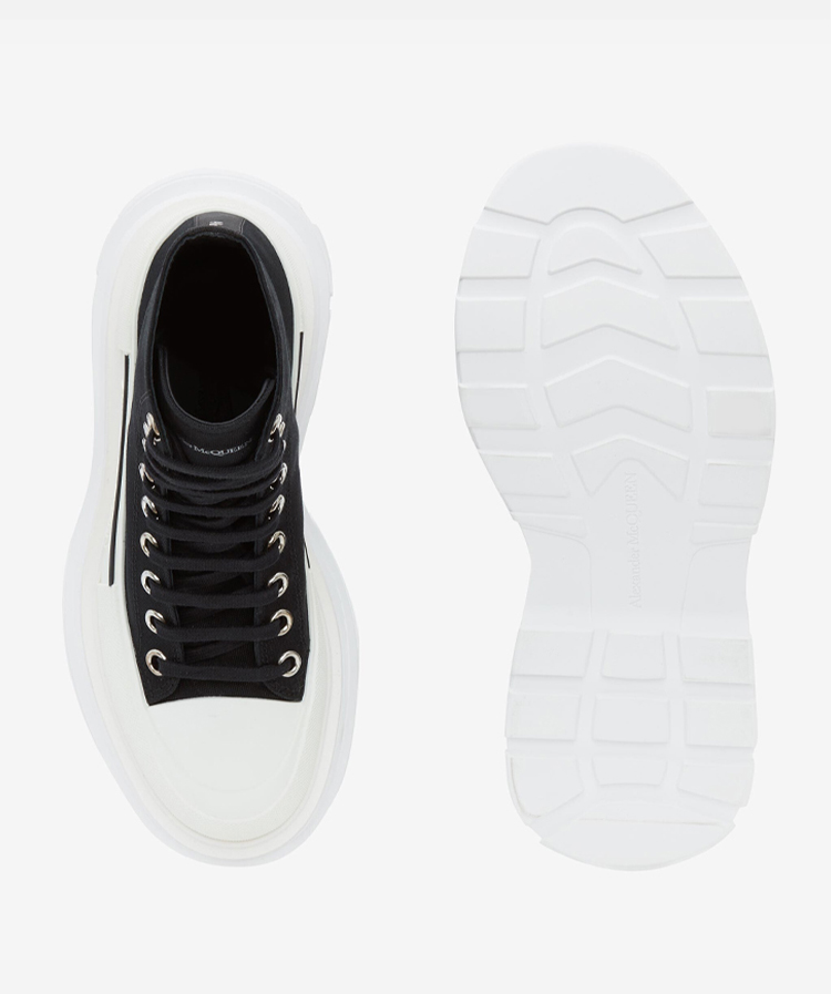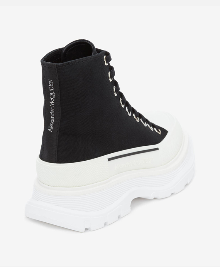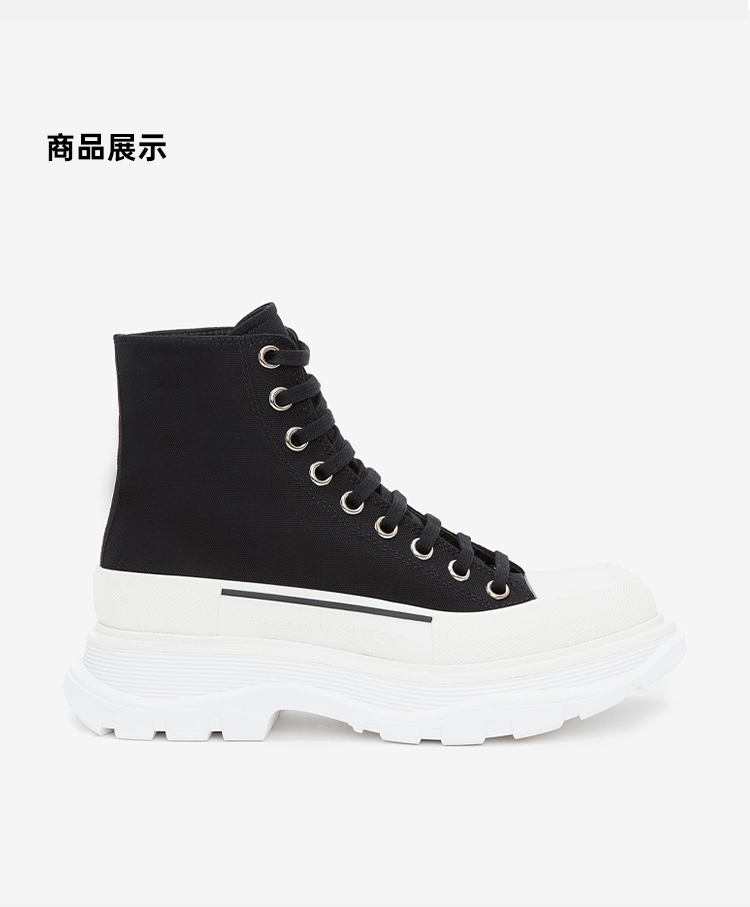 ALEXANDER MCQUEEN 亚历山大.麦昆 女士棉质字母徽标 Tread Slick 系带高帮休闲运动鞋 黑色 697080 W4MV2 1070