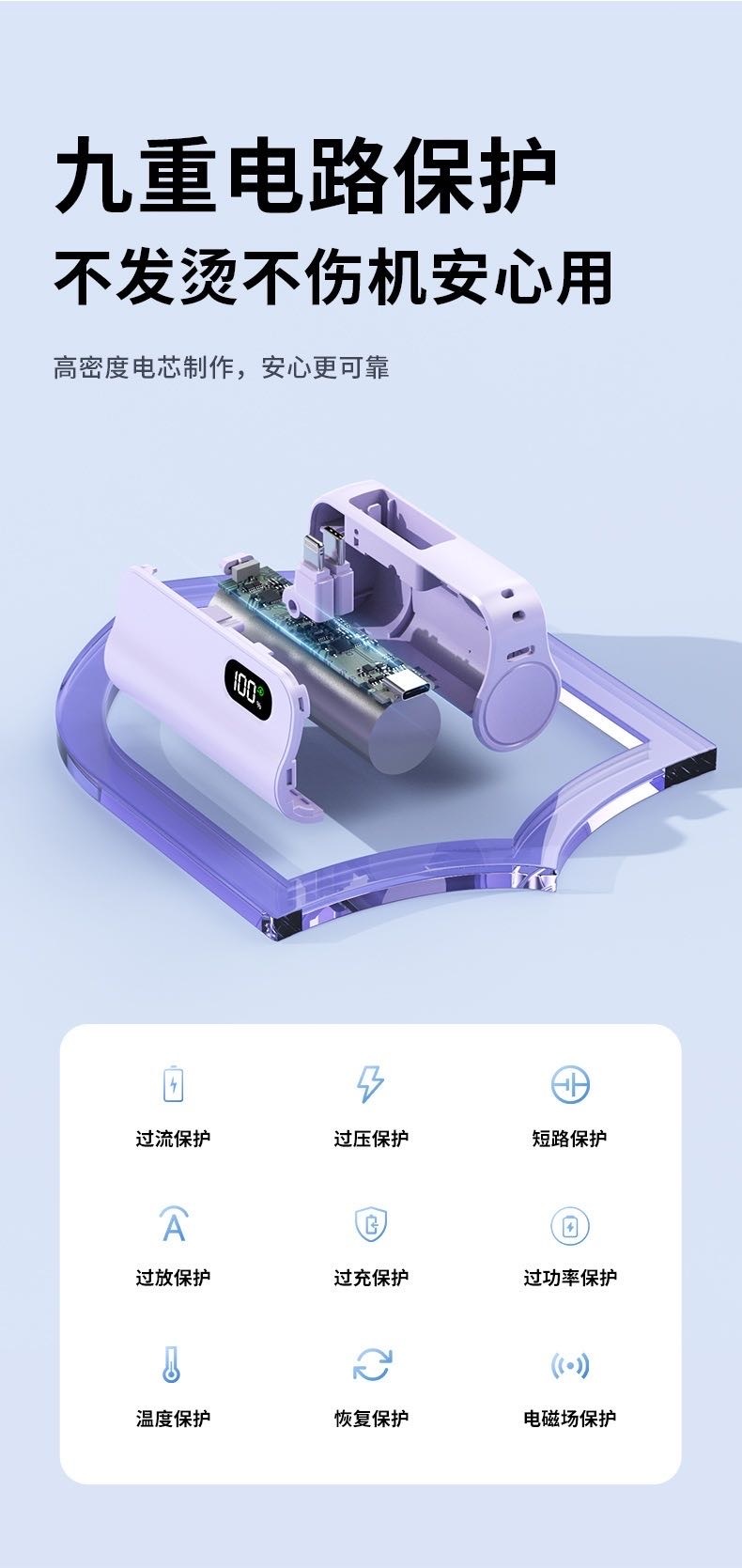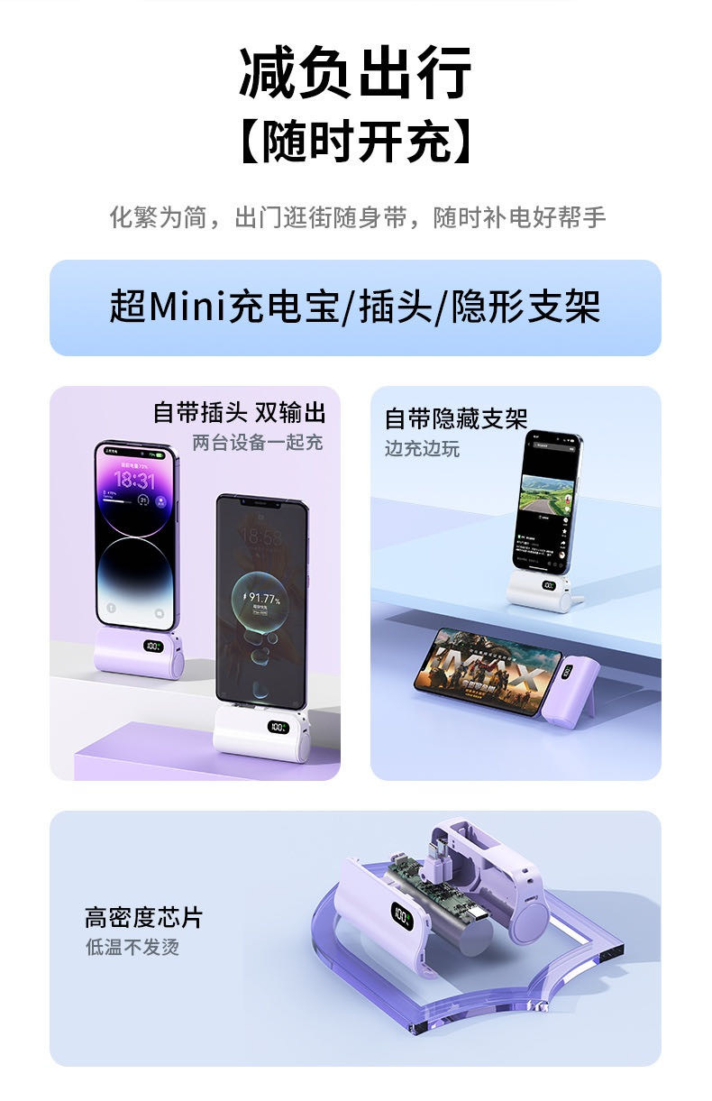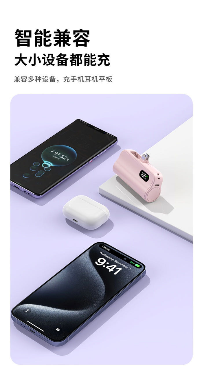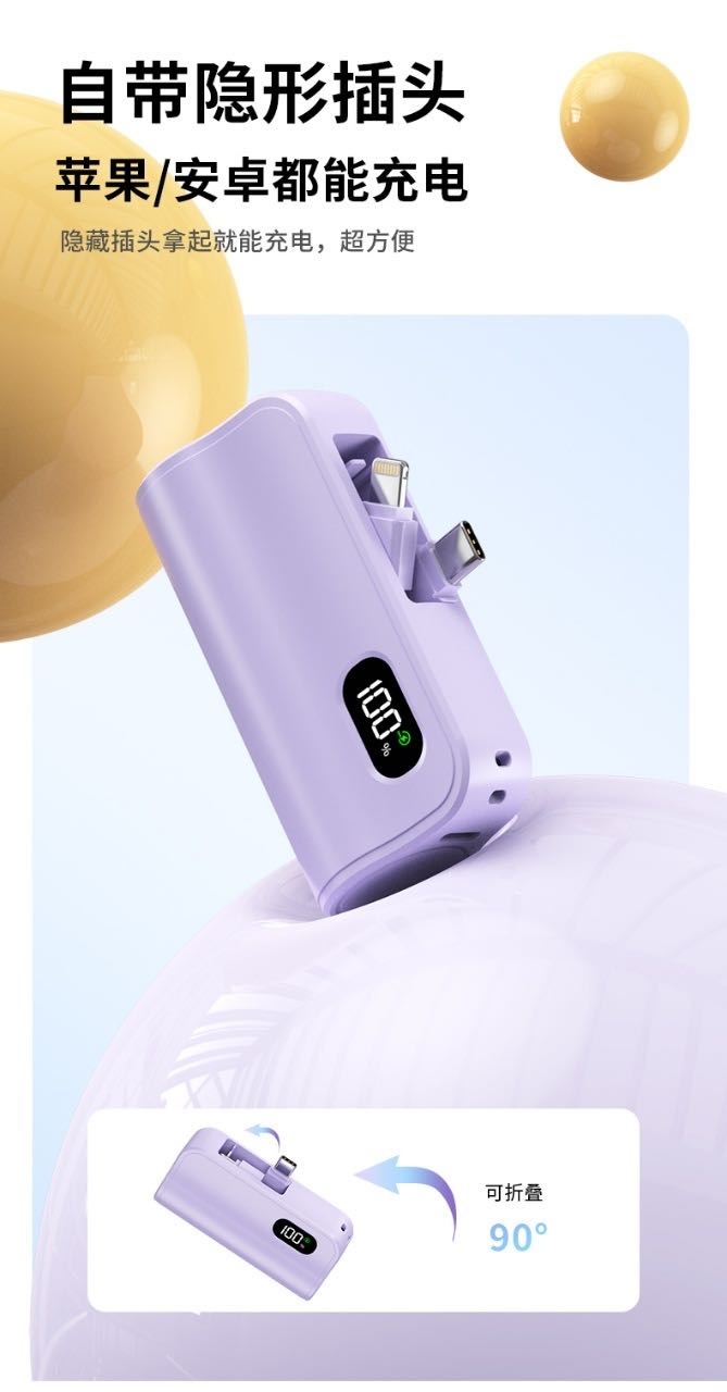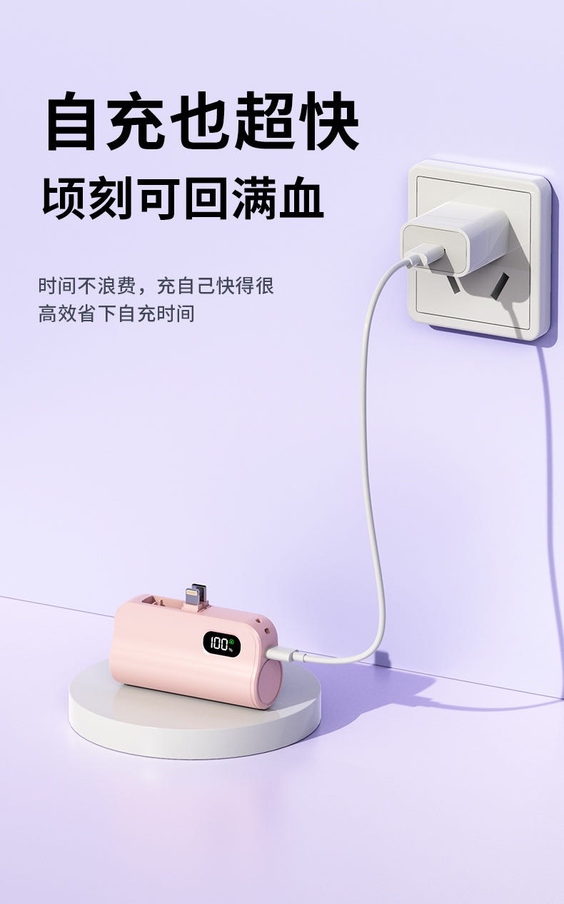 【小来】粉丝专享特价🧧新国标3C认证【k13迷你便携!自带线胶囊充电宝】迷你胶囊充电宝5000毫安自带线便携移动电源礼品