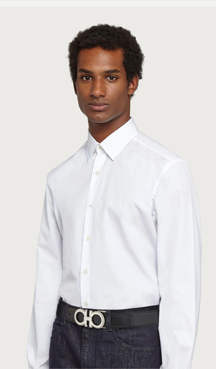 FERRAGAMO 菲拉格慕 男士皮革双面可调式 GANCINI扣饰 腰带 黑色 67 0141 754465