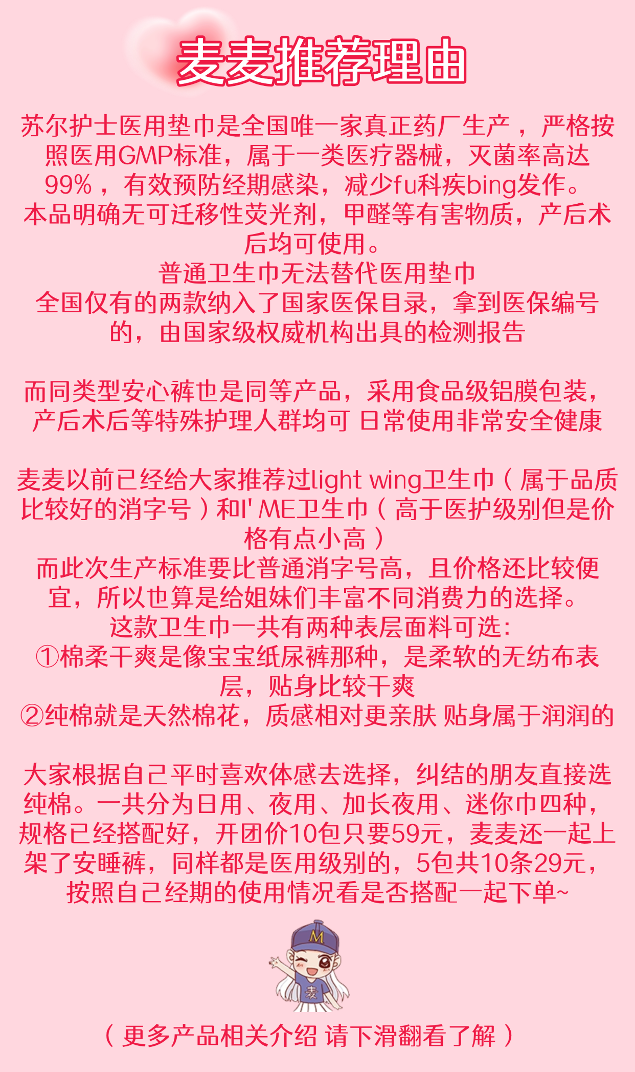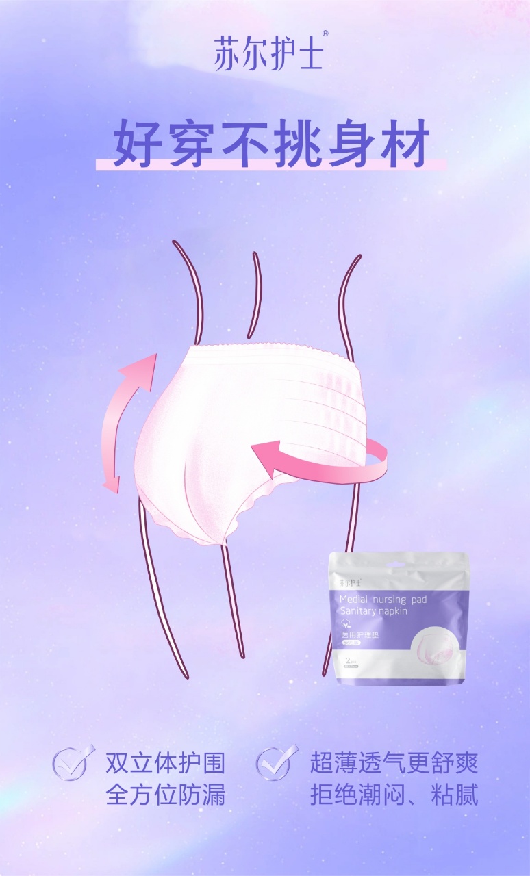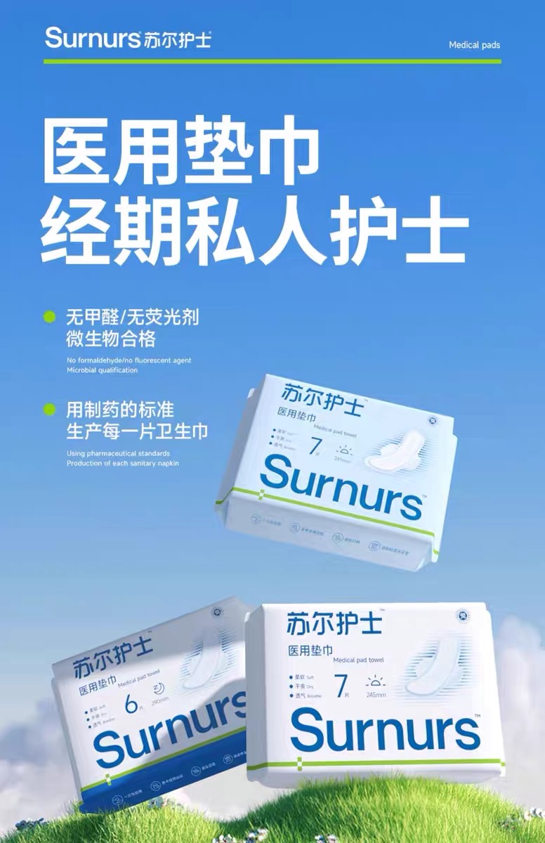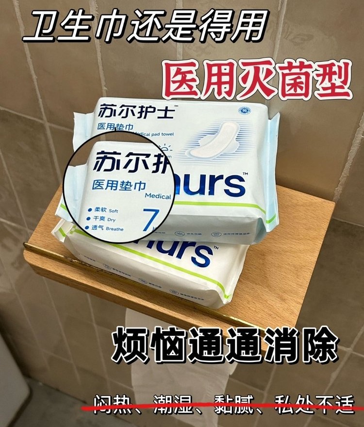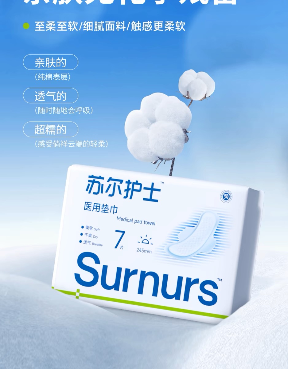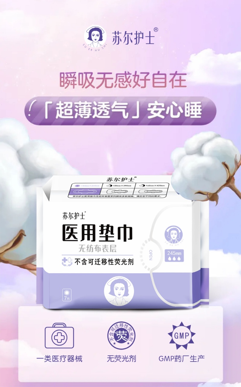 【苏尔护士医用卫生巾】医用级,不含可迁移性荧光剂!柔软亲肤,无刺激!透气率高达53%,拒绝闷热,降低细jun滋生!给你更健康的生活!