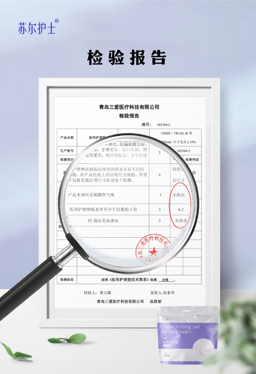 苏尔护士医用垫巾明确标明不含可迁移性荧光剂