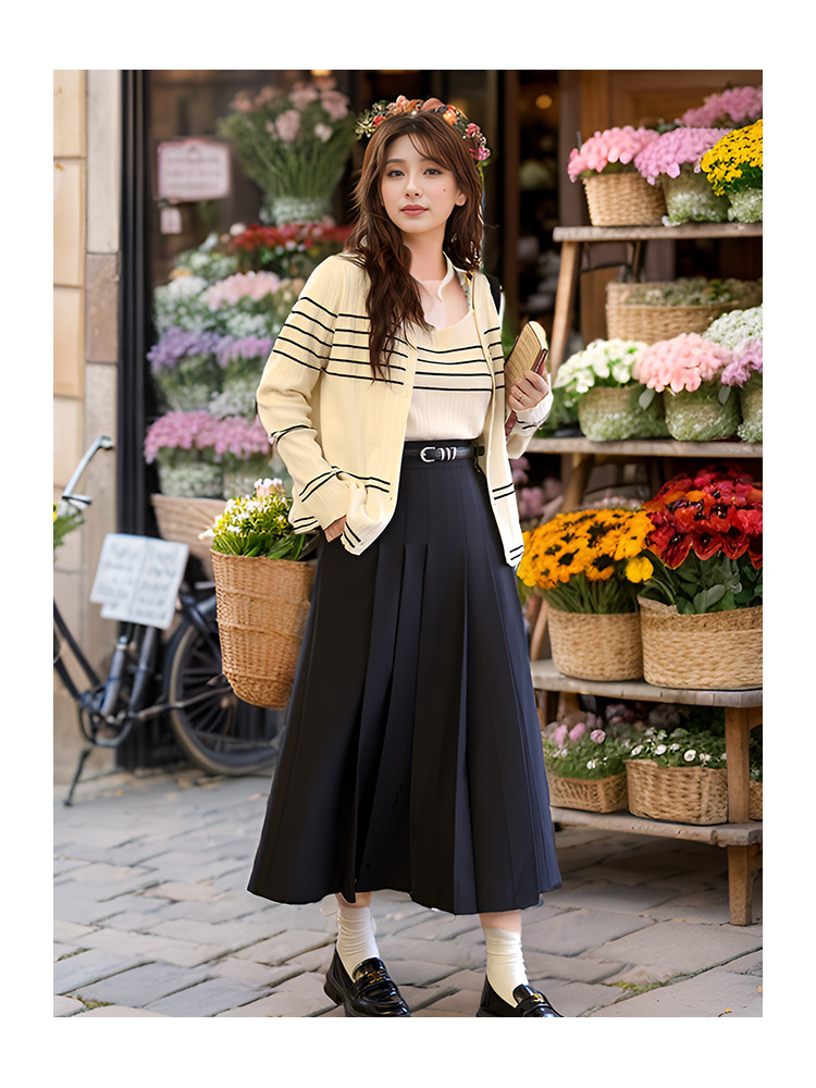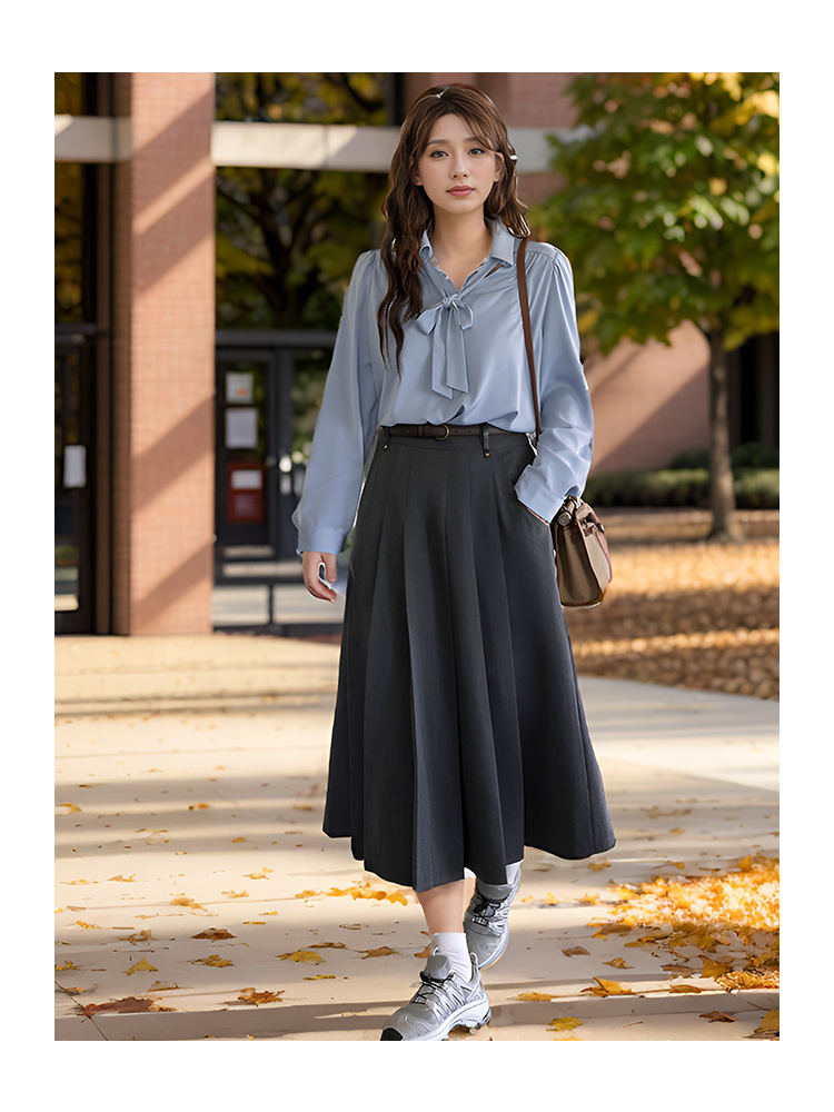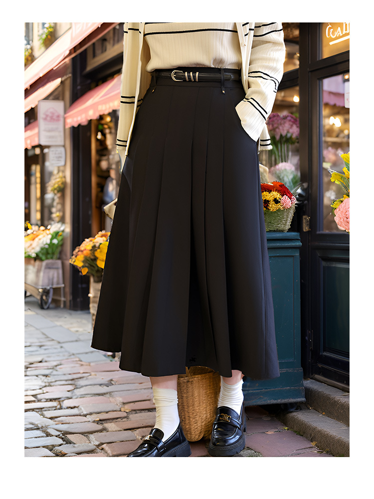 9/9奢姿大码女装2024秋季减龄百褶半松紧裙子胖妹妹时尚百搭半身裙9943491329